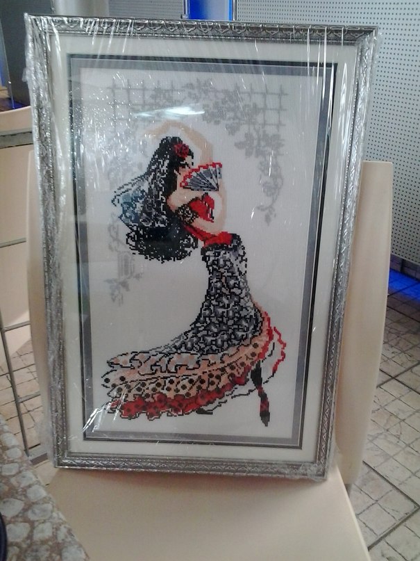 23 июля 2013 а я сейчас дошиваю еще один долгострой, "Ракушки" от ЗР. Полгода назад была вышита нижняя полоска, затем набор закинут в дальний ящик. На днях достала, за день вышила одну ракушку, сижу и недоумеваю почему она у меня попала в долгострои ниточки приятные, схема несложная, единственное - черно-белая, поэтому мне чтобы ориентироваться приходится закрашивать вышитые участки. А еще я переоформила свою давнюю вышивку "Кармен". Теперь моя красотка не в самопальном багете, раскрашенном под "красное дерево" , а в серебре и с тройным паспарту! Дома ремонт, повесят на стену ее нескоро, поэтому вышивка в пленке. Багет пластиковый. Оформление обошлось в 811 рублей Мартиша, Ofelia и Юнона1960 сказали спасибо Поделиться сообщением Ссылка на сообщение