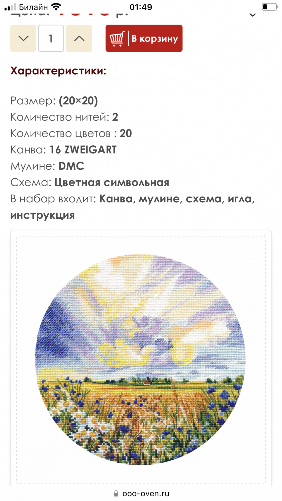 5 февраля 2023 12 минут назад, Океан сказал(а): Так этот набор изначально был с ПНК и канвой непонятного происхождения. На сайте так: Размер: (20×20) Количество нитей: 2 Количество цветов : 20 Канва: 16 ZWEIGART Мулине: DMC Схема: Цветная символьная В набор входит: Канва, мулине, схема, игла, инструкция Аленка-2 сказал(а) спасибо Поделиться сообщением Ссылка на сообщение