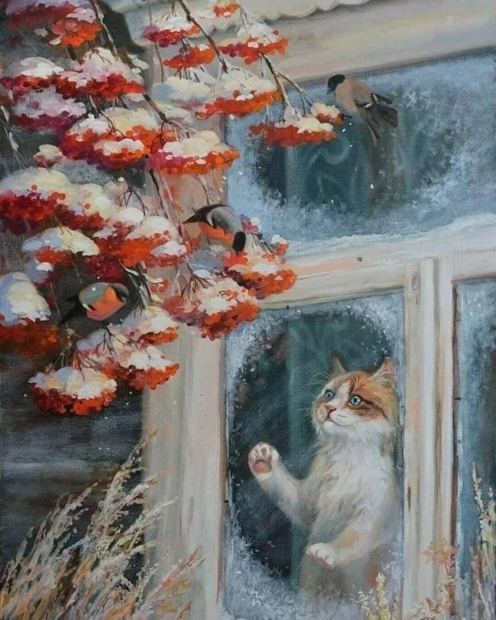 18 апреля 2023 Картинки отличаются, конечно. Рисовали разные художники потому что.)) А так, по-моему, один в один по сюжету. Зима, окно, кошка сквозь стекло, покрытое морозными узорами, пытается дотянуться за птичкой. И даже дерево такое же.)) Ну разве что у "Овна" три птички, а не одна. Есть ещё отличия? И, главное, у "Риолиса" этот сюжет тоже в числе новинок, вышел относительно недавно. Мне овновский вариант больше нравится. Риолисовский дизайн хорош, но у меня ничего не ёкает. А у "Овна" потрясающие снегири и рябина. Я даже задумалась, а не вышить ли эту часть картины, с рябиной и снегирями, хотя зимние сюжеты обычно обхожу стороной. Кошки в моем случае обе мимо, хотя они милые. lamina-65, Аленка-2 и Tatiana Ch. сказали спасибо Поделиться сообщением Ссылка на сообщение