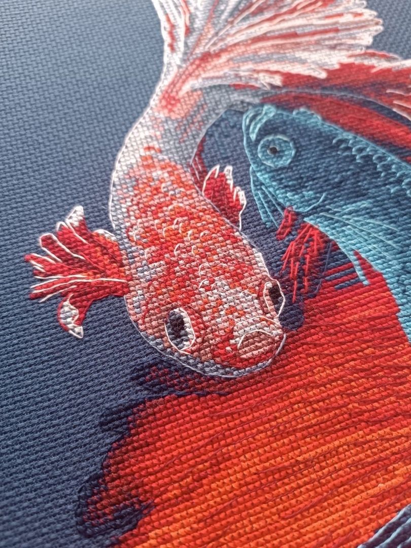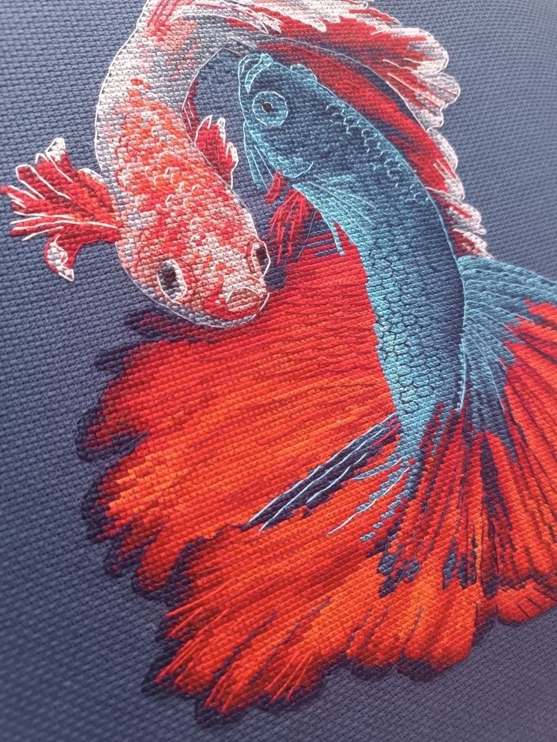 12 марта 2024 Анонс! Скоро в продаже ! №1607 «Бойцовые рыбки » (19х27) Вышивается в 2 нити, 18 цветов Luca-S Канва 16, темно-синяя . Дизайнер Анастасия Князева По мотивам картины Юлии Дубининой Также набор будет укомплектован файлом для программы SAGA OlkaY, Majena, Helen_z и 25 других сказали спасибо Поделиться сообщением Ссылка на сообщение
