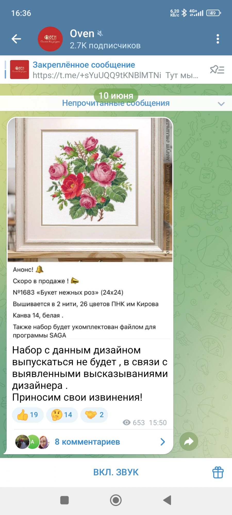 10 июня 2 часа назад, OlyaKslv сказал(а): Анонс! Скоро в продаже ! №1683 «Букет нежных роз» (24х24) Вышивается в 2 нити, 26 цветов ПНК им Кирова Канва 14, белая . Дизайнер Жанна Стрибук Также набор будет укомплектован файлом для программы SAGA Пыс.пыс. На тёмной основе будет смотреться интереснее как мне кажется Вот этого набора не будет Tatiana Ch., Пумочка-13, Краснодарка и 7 других сказали спасибо Поделиться сообщением Ссылка на сообщение