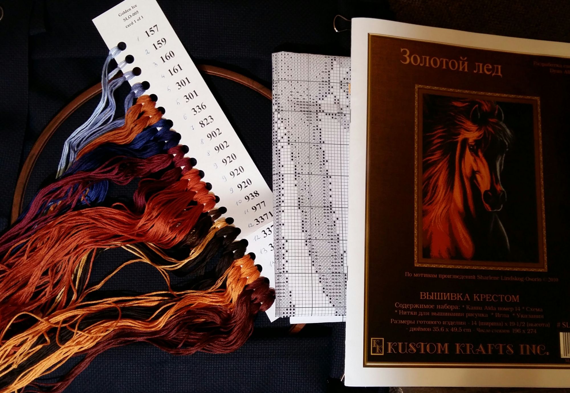 13 сентября 2017 Девочки, я снова к вам. С очередным конем. После того, как вышила в подарок черного коня Риолис, и он некоторое время повисел у меня дома, я поняла, что мне тоже нужен конь! Поскольку всегда интересно вышивать что-то новенькое, решила взяться за коня, на которого еще в прошлый раз упал взгляд. Это Золотой лед от Kustom Krafts. В наборе канва Аида 14 черного цвета, 14 цветов ниток, схема черно-белая, в буклете, на 9 страницах. Поскольку схема напечатана с обоих сторон каждого листа, что не совсем удобно в процессе вышивания, то я ее отксерокопировала, после чего склеила в одну схему, получилась приличная такая "простыня", но с ней удобно работать. Цвета яркие, впечатления от набора пока положительные. АлёNка, Пушистая, Killwale и 20 других сказали спасибо Поделиться сообщением Ссылка на сообщение
