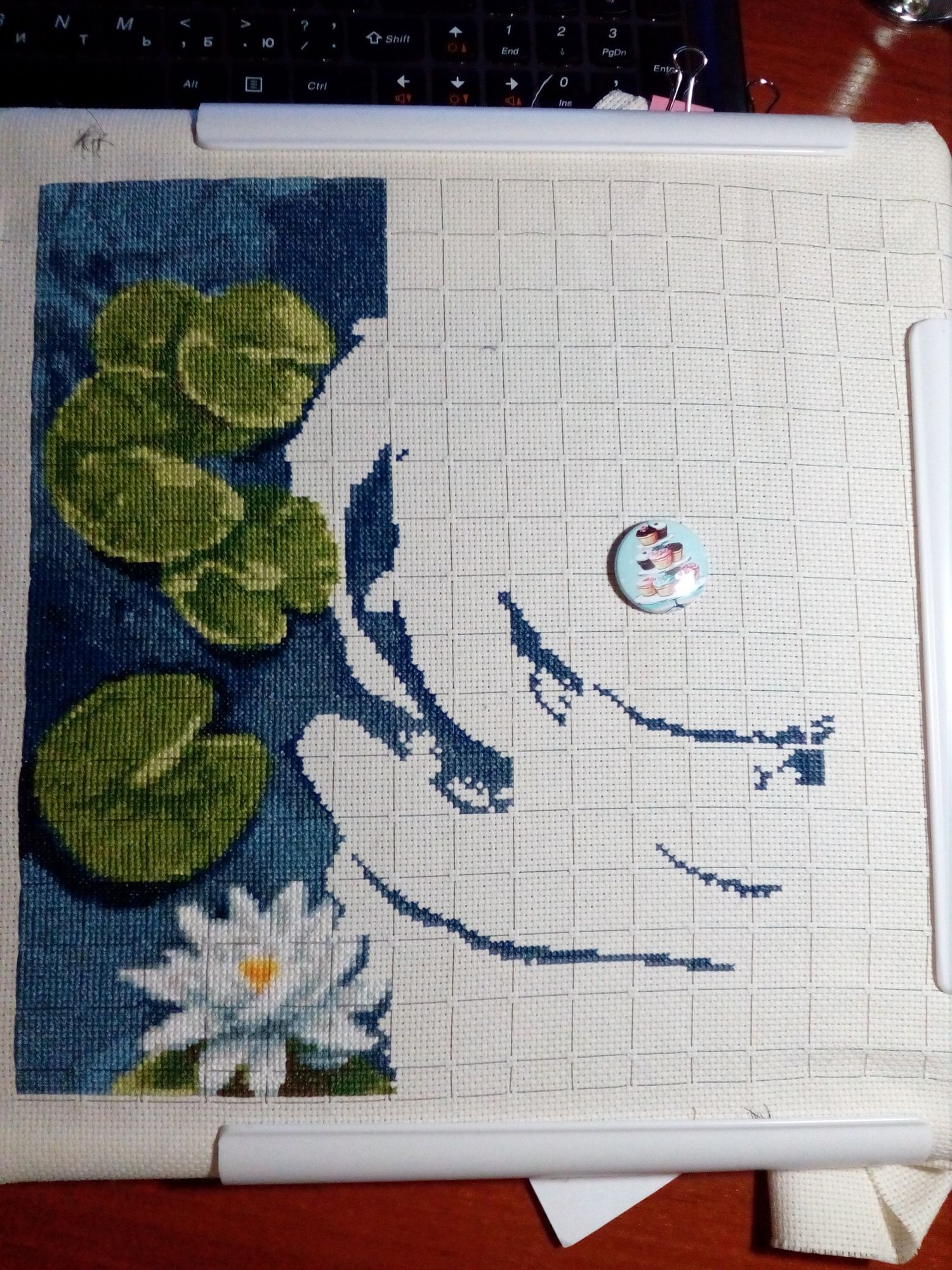 4 декабря 2017 17 часов назад, Miroshka сказал: А у меня растёт вода вокруг рыбок. Решила, что самих рыбок буду в самом конце вышивать, но уже ооочень хочется насладиться ими. Пока держусь))) вот это выдержка! Я бы так не смогла. Карпы такие яркие , я бы точно их уже надкусила. А листья такие сочные получились. Шикарно А вот моё продвижение. Одна мордаха готова, теперь листья шью. Разнообразие цвета после черно-серой гаммы. Теперь по плану верх закончить, потом низ начну. Вышивка идёт хорошо. Я сначала когда схему увидела чего- то подумала зависну с ней, но так хорошо проработаны участки цвета такие идеальные, шьется на мой взгляд легко и довольно быстро для меня. mashat, kreolka, Людмила Мизина и 17 других сказали спасибо Поделиться сообщением Ссылка на сообщение
