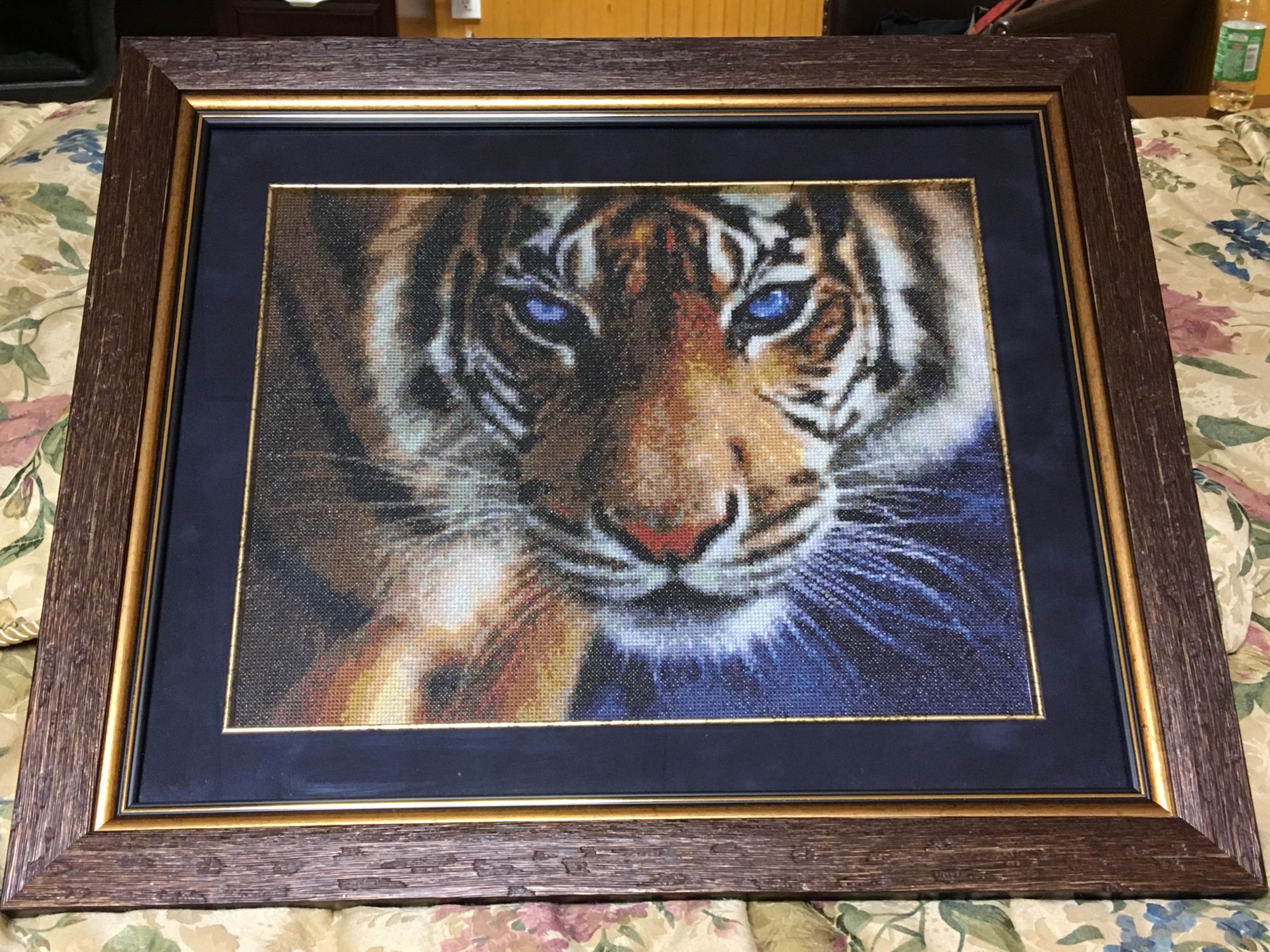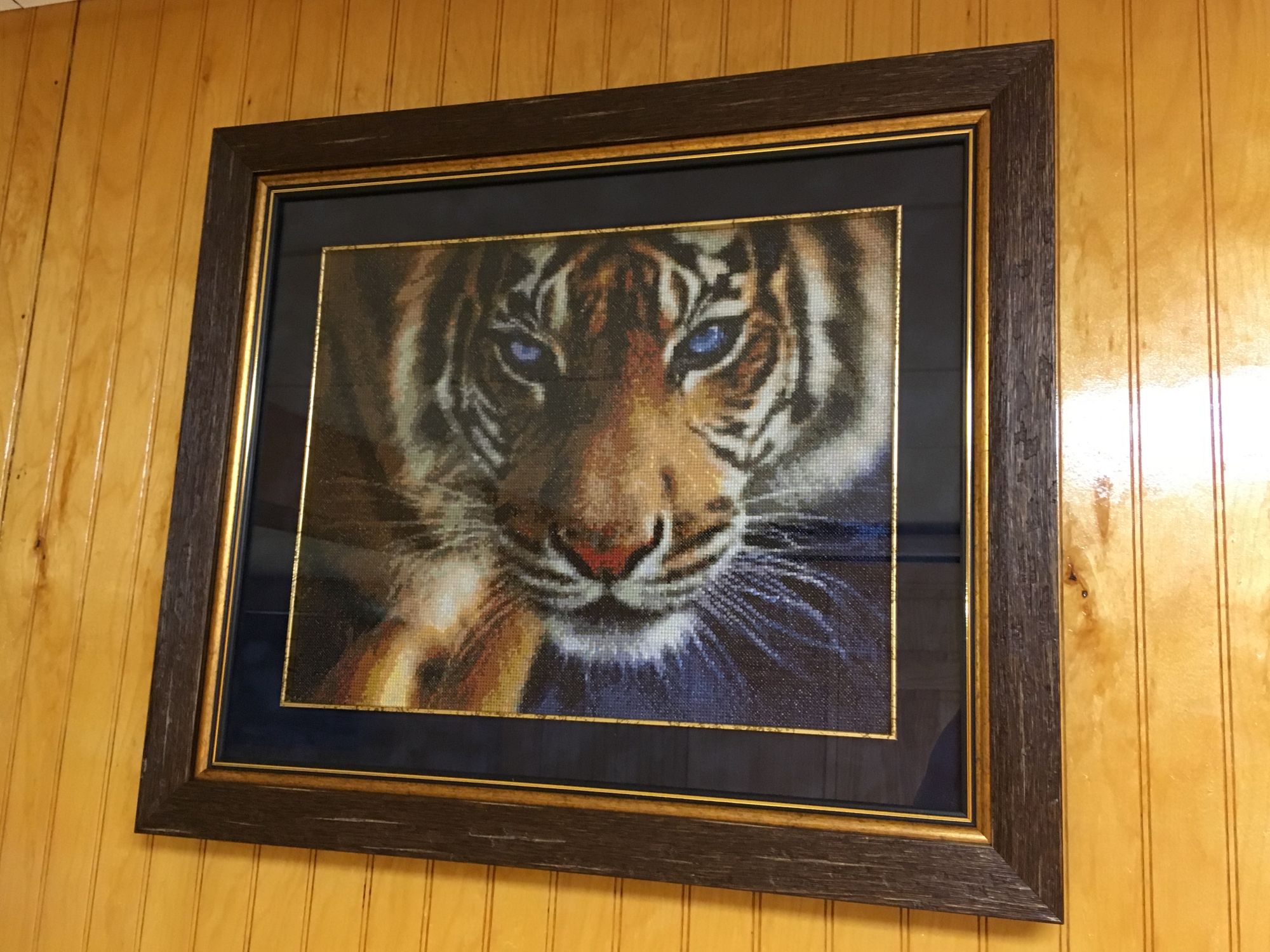 31 декабря 2017 9 часов назад, Лаки сказал: Таня! Ура! Очень рада что щенок нашелся!!! А я принесла показать оформленного тигра. Подарок сыну уже вручен! Сын в восторге, ну и я тоже! Оформила в двойной багет, синее бархатное паспарту и золотой слип. Никак не получается сделать фото чтобы показать реальные цвета. Ну уж как получилось. Всех с наступающим Новым годом! Всем желаю крепкого здоровья, успехов во всем и хорошего настроения! Ну и конечно шустрой иголочки, замечательных и интересных процессов, приобретения всех самых заветных хочушек!!! Людмила, это просто чудо!!! Работа прекрасна!!! Поздравляю Лаки сказал(а) спасибо Поделиться сообщением Ссылка на сообщение