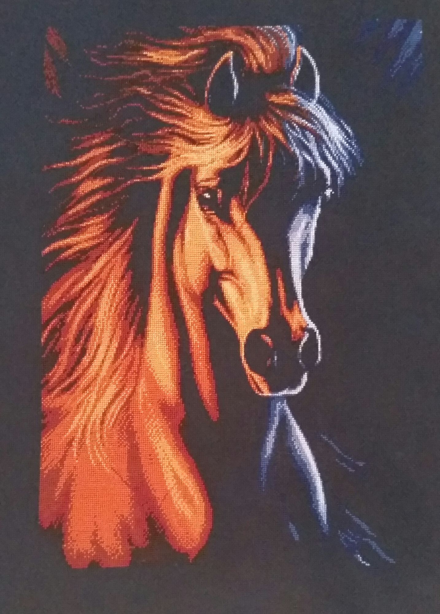 4 января 2018 19 часов назад, Бельчонок сказал: Девочки, всех с Новым 2018 годом!!! Всех благ и ровных крестиков! Буду в нашей темке первая в этом году. Закончила я свою огненную лошадку ещё в конце декабря, но не показывалась, так как испытала настоящий шок при стирке - канва полиняла жутко-бордовым цветом! В первый раз со мной такое, хотя уже много наборов вышила на чёрной канве, стирала в холодной воде, и никогда такого не было. У нас в галерее уже много таких лошадок, но никто не писал про такую беду... Уже после празднования Нового года нашла в себе силы ещё раз перестирать, так как мне казалось что светло-голубые нитки всё же приобрели розоватый оттенок (а перешить уже ниток не хватало)... Сегодня лошадка подсохла, кажется, ничего не видно (но канва при стирке снова начала линять). Представляю на ваш суд свою красавицу... Хотела сегодня отдать на оформление, но моя багетка ещё отдыхает... Валентина,изумительная работа! Конечно жаль что так получилось с канвой, сюрприз неприятный(. Но как же хорошо,что попыталась перестирать и теперь все позади. Ждем оформления и с наступившим уже Новым Годом! Поделиться сообщением Ссылка на сообщение