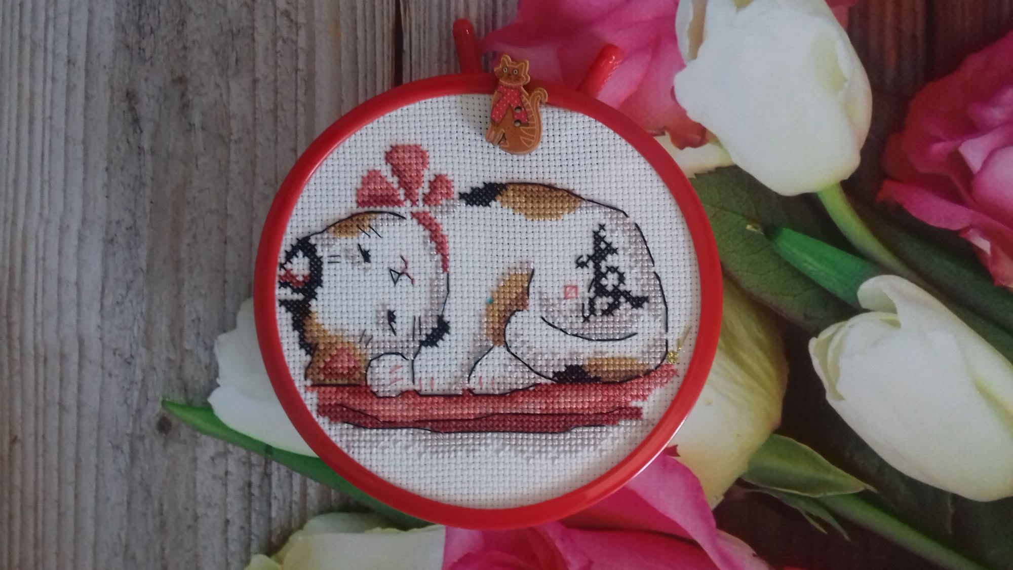 21 августа 2018 А вот и я со своей миниатюрной трехцветной кошечкой! Первое фото - в пяльцах Нурге - не дошита по краям, которые не охватились пяльцами. Второе фото - во время "купания" (наша трехцветная кошка Соня купаться не любит, но вышитой пришлось). Третье фото - готовая-выстиранная-поглаженная работа. Останется только оформить (есть некоторые идеи). Очень нравятся золотистые кисточки по краям подушки. Правда, металлик Гамма - это испытание... На золотой Крейник менять не стала, хоть он у меня и был. Решила вышить исключительно по набору. В общем процесс и результат мне в целом понравились. Тем более,что дизайн этот с прототипом. Сибирская Кошка, Lisa511, Лаки и 10 других сказали спасибо Поделиться сообщением Ссылка на сообщение