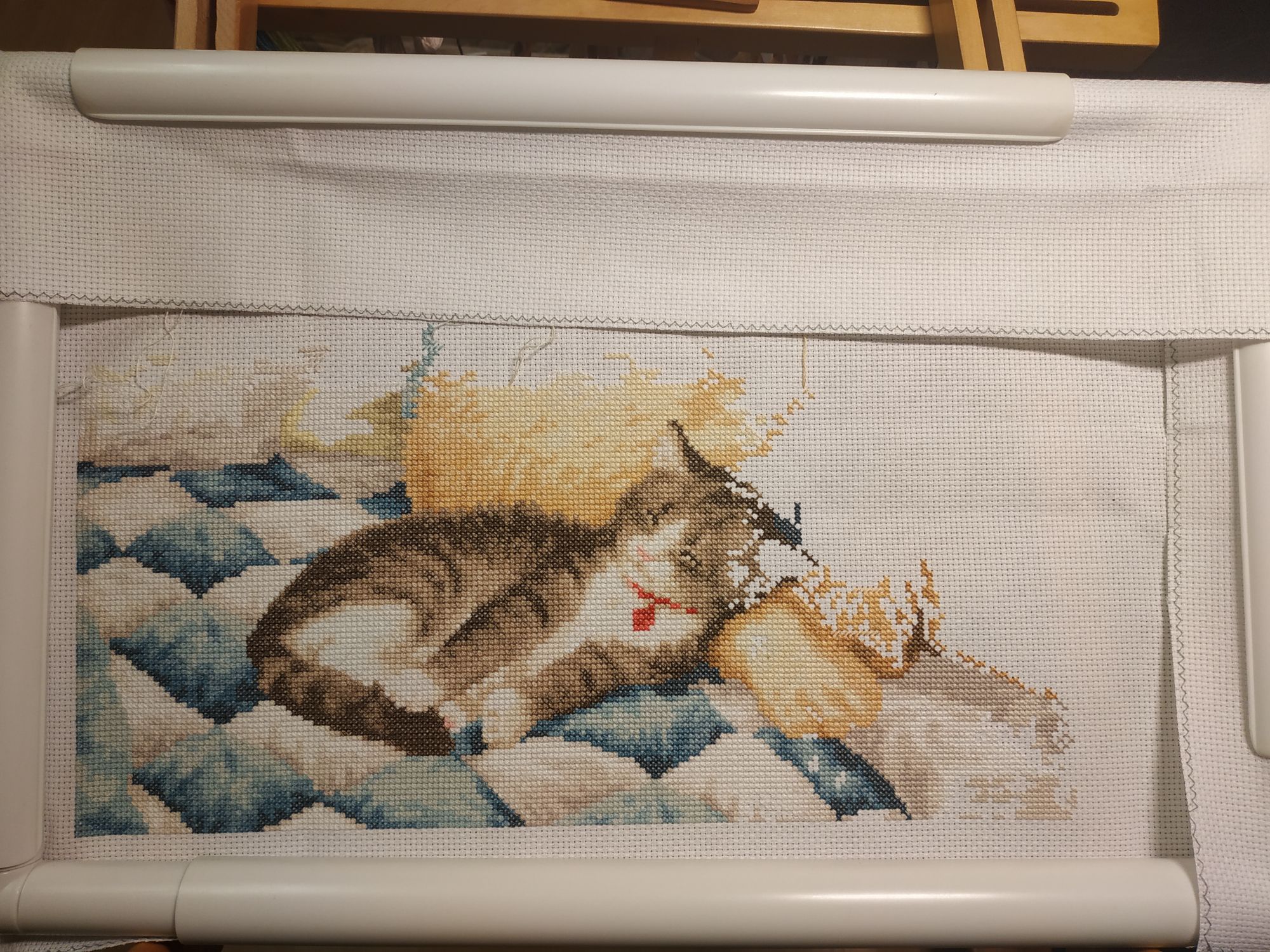 15 ноября 2019 Всем привет! Решила присоединиться к теплой компании со своим процессом. Вот что будет: Panna Ж-1683 Двое из ларца А это прогресс за полторы недели: Используется крест в 2 нити, полукрест в 3 и бэк. Канва моя любимая, дубовая, 16 каунта. Царапает руки, но скоро я ее укрощу, сшив чехол на снапы. Нитки обычной панновской длины, я точно знаю, что одной сложенной пополам ниткой сделаю 33 крестика. Шила еще не всеми цветами, пока что некоторые неудобства вызывает один. Он почему-то толще других и из-за этого не удается уложить крестик аккуратно. Схема цветная, на одном листе, успешно может использоваться вместо пледа. Удивил органайзер. Нитки просто продеты в отверстия и не закреплены, зато ниже перевязаны отрезком другой пасмы. Такое встретилось только в этом наборе Britny, Dasika, Пушистая и 12 других сказали спасибо Поделиться сообщением Ссылка на сообщение