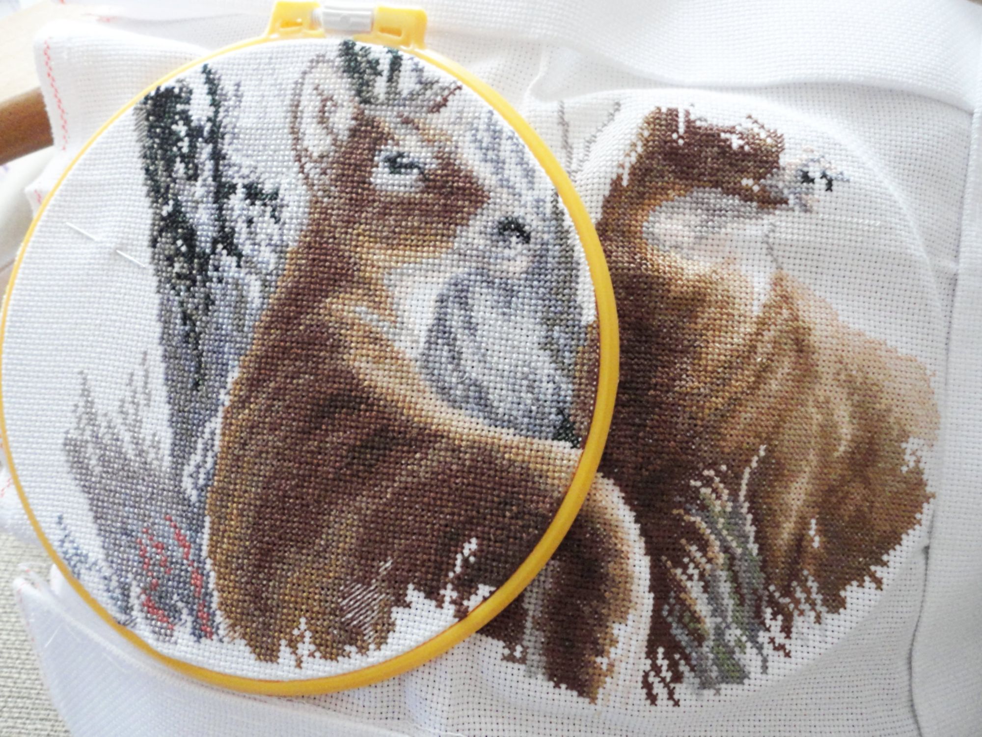 17 мая 2016 Продолжаю вышивать своего любимого "Волка в ожидании" от КК. Процесс был прерван на месяц, занималась другой вышивкой. Теперь появились и ушки, и глазки. Процесс мог бы идти быстрее, но фон и шубка волка состоят просто из каши одиночных крестиков! Vkiseleva21, kreolka, Текил@ и 16 других сказали спасибо Поделиться сообщением Ссылка на сообщение