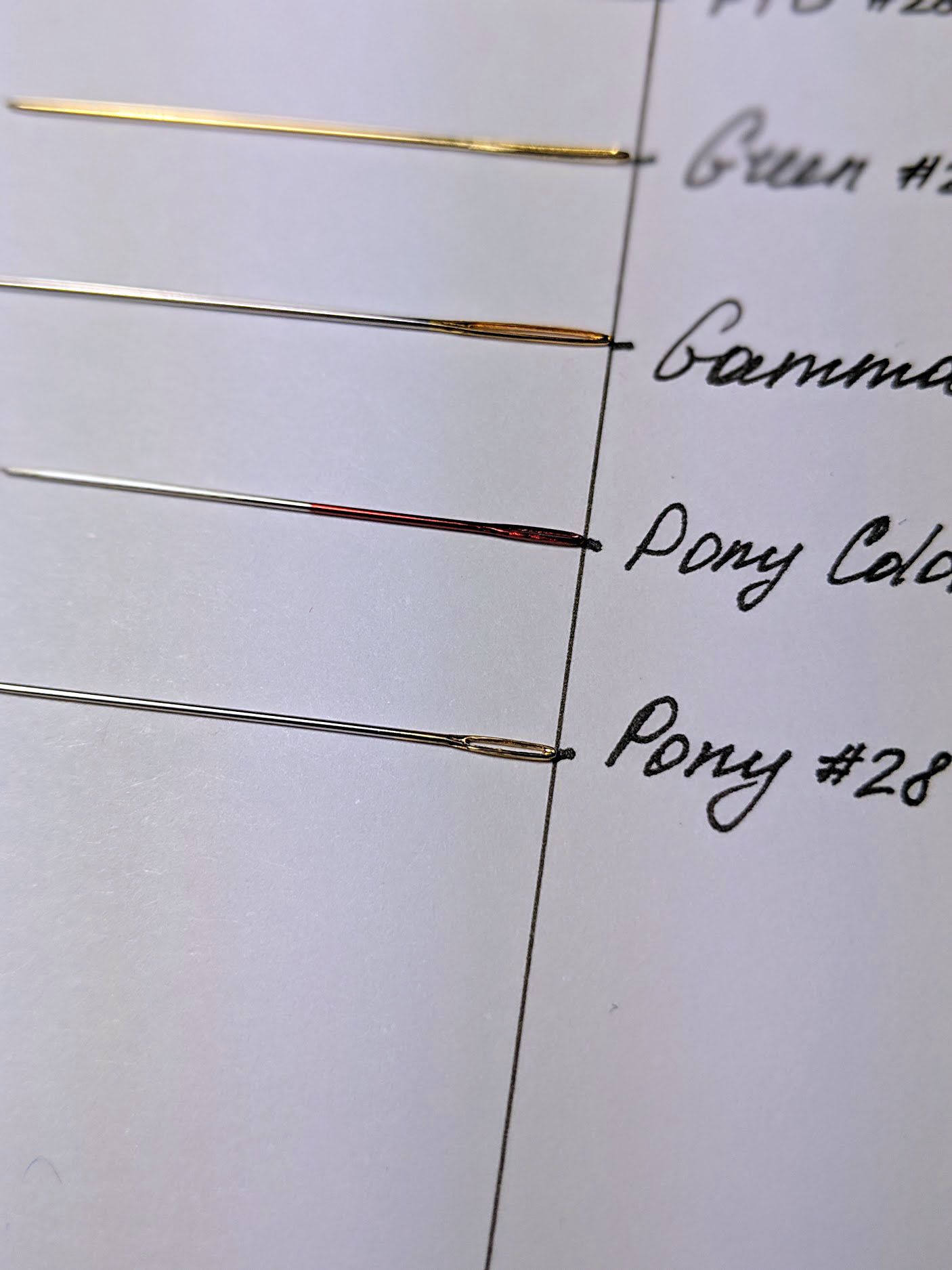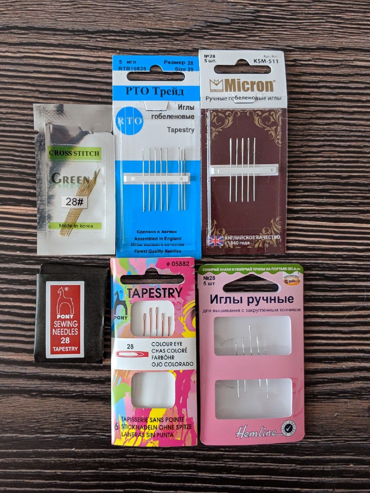 2 февраля 2019 Всем привет. Я вышиваю больше 10 лет, перепробовала всякое, но недавно задумалась: а хорошими ли я иголками я вышиваю? Годами беру одни и те же, может что изменилось на рынке. И вот, я накупила 17 упаковок иголок, несколько недель тестировала иглы разных производителей в поисках тех самых "идеальных иголочек", и решила что пусть мои труды и потраченные нервы-деньги не пройдут бесследно. Так что я решала написать обзор. Вдруг кому-то информация окажется полезной. Обзор игр для вышивки. Часть третья. Иглы, которые я точно никогда не куплю. Решила свой отзыв начать с конца. Мест никаких в этой категории давать не буду, ибо все без исключения иголочки отправятся в мусорное ведро, увы, а в сортах г.. я не большой специалист. Знаю что моё мнение может не совпадать, а скорее всего не будет, совпадать с вашим, и я не хочу кого-то обидеть, особенно тех, кто такими иголками пользуется и доволен. Это всего лишь мой личный рейтинг, плюс иглы могут отличаться от партии/производителя/брака/субъективного отношения и прочих факторов.⠀ Цена указана за одну иголку и за упаковку, она актуальна на момент покупки, брала в самых обычных рукодельных магазинах по средней цене, без распродаж.⠀ ⠀ • Pony Tapestry Color eye №28 05882 (6 шт) - 16,5р/шт (99р/уп.) - Индия.⠀ Иглы удобны тем, что у них отличается цвет ушка в зависимости от размера. Ура, почему до этого никто не додумался! Почему попали сюда: очень маленькое короткое ушко, трудно вдеть нитку. Сами ушки ужасные, с зазубринами, кривые, еще и игла в месте ушка утолщается, неприятно ее продевать в канву. Помнится к швейным иглам Пони не было никогда претензий, но эти... Кхм. Нитка не скользит, длинная нить так и перетираться может быстро. Браком не считаю, т.к. все 6 игл в упаковке одинакового качества.⠀ ⠀ • Pony Sewing Needles Gold Eye №28 (25 шт) - 2,76р/шт (69р/уп.) - Индия. Упаковка из 25 игл, удобно что можно взять сразу много, плюс они намного дешевле предыдущих. Ушко позоломенное, но точно такая же беда, как с предыдущими: щербатое, кривое. Но и цена нормальная. Также отмечу, что это самые маленькие и короткие иглы из всех! Если у остальных длина примерно одинаковые, то эти заметно короче остальных! Я специально не брала укороченные иглы, т.к. не люблю их, а тут такое. Они микроскопические. И ушко маленькое, три нитки туда даже с нитевдевателем крайне тяжело продеть. Все 25 игл примерно одинакового качества в упаковке. К слову, бумажная упаковка-конверт очень неудобна сама по себе.⠀ ⠀ • Green №28 (10 шт) - 21,7р/шт (217р/уп.) - Корея. Иголки полностью позолочены, упаковка - плотный целлофан без застежки. Очень толстые для 28 номера и ужасно скрипят. Это единственные иглы, которые скрипели на тонком льне. В руках держать неприятно, не скользкие, ушко так же не самое лучшее, нитка в нем почти не скользит. За такую цену качество у иголок просто отвратное, я не знаю за что они деньги берут, ни упаковки, ни бренда, ни качества. Все иглы в упаковке одинакового качества.⠀ ⠀ • Micron KSM-511 (5 шт) - 16,2р/шт (81р) - Англия. Иглы не понравились тем, что они довольно толстые, как бревнышки по сравнению с другими, и скрипят. не так сильно как Green, но меня раздражало. Микрон и РТО самыми нормальными из этой категории игл, цена на них одинаковая, но я бы лучше брала РТО, они тоньше. Темнеют ли эти иглы - не знаю, я не смогла ими вышивать дольше одного вечера, простите. Иглы в упаковке одинакового качества, вс