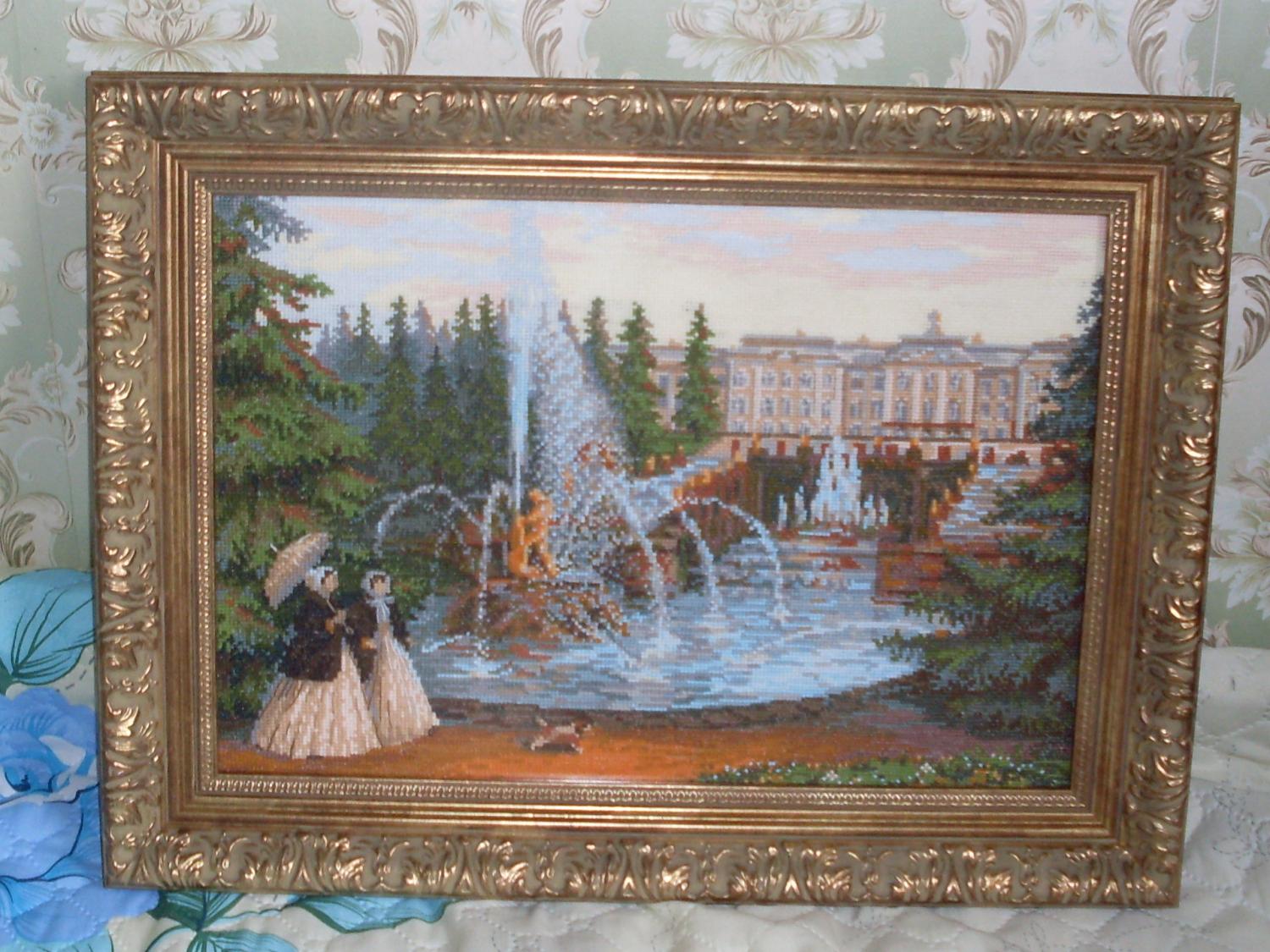 21 апреля 2013 Петергоф (по картине Солодовникова)№1133 Вышивалось по набору Риолис (Сотвори Сама). Канва 5,5 хлопок Размер 40*30 см, 220*162 крестика Никти шерсть\акрил Цветов 28 Крест и бэк Вышвалось летом-осенью 2011. Сейчас только оформлена, будет подарена маминой подруге на ДР. Да, очень красиво! psych сказал(а) спасибо Поделиться сообщением Ссылка на сообщение