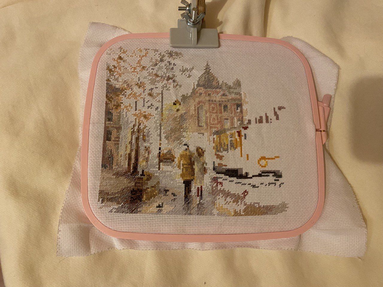 26 апреля 2022 Вот мои достижения за два вечера: Стали видны лужицы и потихоньку проявляется силуэт мужчины. Даже видно, где будут ходить по сюжету голуби. Результата могло быть чуточку больше, если бы вчера я не допустила ошибку и не вышила часть спины одним цветом чуть выше чем надо. Поэтому пришлось немного распороть и перешить заново. Конечно, это очень маленькое количество, но сама по себе такая ошибка немного меня расстроила. Больше потому, что я боюсь за запасы ниток. Вроде бы если чего-то не хватит, то сейчас легко узнать данные о цвете и купить, но все равно, я бываю паникершей в таких вещах. Хозяйка смешных зверей, Yulik, Aleksacha и 14 других сказали спасибо Поделиться сообщением Ссылка на сообщение