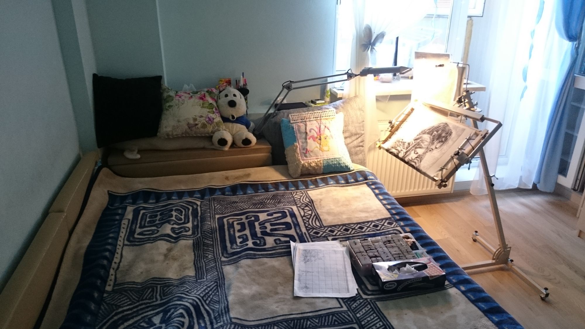 21 июня 2016 4 минуты назад, monstrochka сказал: Потому что мой диван - он же кровать, пребывает 99 процентов времени в разложенном состоянии, так как собирать его некогда, а после покупки на него матраса и незачем ... так что опираюсь я на диванные подушки только если вышиваю на снапах или на раме, положенной на колени. Станки в этом случае не вариант... я может что-то не понимаю - у меня проблемы с пространственным воображением... я представляла так - сидишь на кровати - опираешься спиной на спинку кровати ну или дивана - неважно ..- слева - в моем случае - стоит станок - на нем закреплена рамка - рамка прямо перед тобой - вышиваешь двумя руками ... Поделиться сообщением Ссылка на сообщение