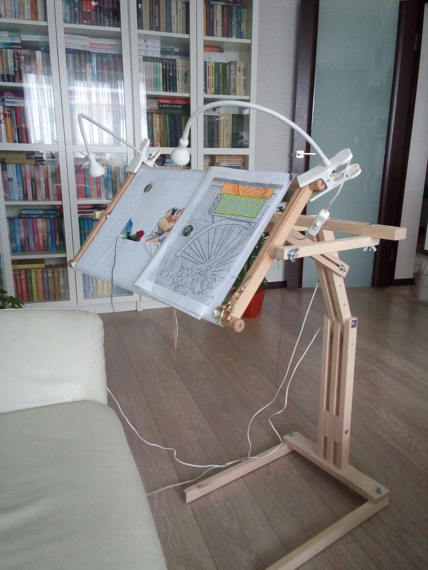 5 января 2017 У меня тоже станок СтичСмарт. Вспомогательная планка, на мой взгляд, очень нужна. Она позволяет свободно крутить раму на 360 градусов и в целом с ней удобнее. У меня есть вспомогательные планки всех размеров: 30 см, 45 см и 61 см. Самая длинная планка впритык при повороте рам, но это так же зависит от угла наклона зажима станка. Рамки все от Elbesee с клипсами. Не прижились у меня ни пяльцы, ни снапы. Первоначально я купила рамку 45*30 и вспомогательную планку к ней. Постепенно докупила еще несколько рамок разных размеров. Но самые часто используемые - 45*30 и 53*30. Рамка 61*30 для меня оказалась очень громоздкой. А лампа диодная из обычного магазина электроники P.S. Извините за качество фото Антонина di, Иржи, Сибирская Кошка и 7 других сказали спасибо Поделиться сообщением Ссылка на сообщение