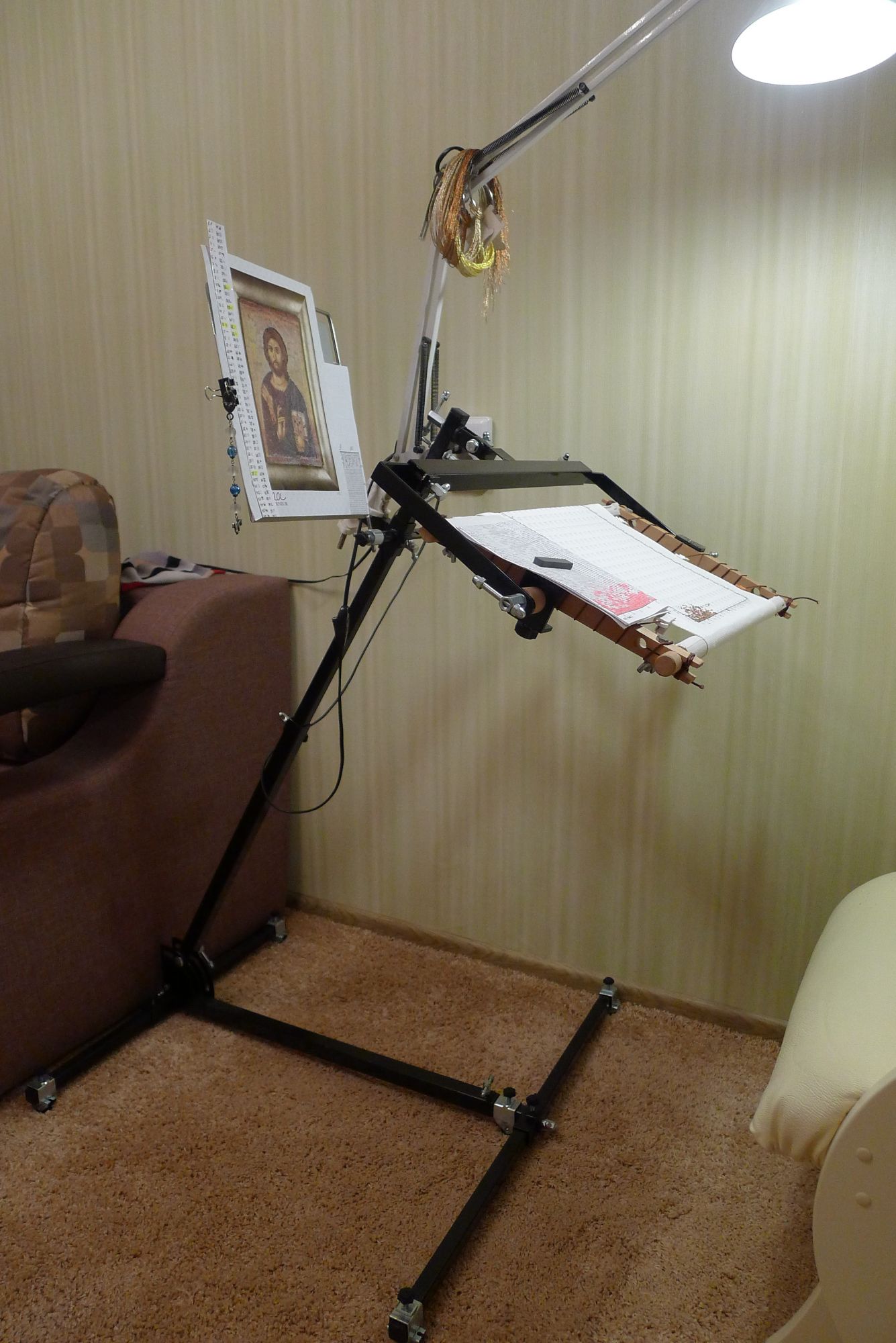 23 февраля 2018 Тоже решила высказаться о станке от Оманик-Фэктори, о котором говорили на предыдущей страничке. Я стала счастливым обладателем этого станка в 2018 году =), т.е. вышиваю я на нём где-то всего месяц. Но мнение о нём уже, естественно, сложилось. Общий вид: Прежде чем решиться на такую внушительную покупку я, конечно же, поискала информацию об том станочке. Была парочка негативных отзывов, но я рискнула =) Итак, даже не знаю, с чего бы начать... Во-первых, теперь у них есть доставка из Санкт-Петербурга. Станок довольно тяжёлый - у меня получилось почти 9 кг, но доставка обошлась всего в 1000 рублей. Если совсем честно, то я не знаю, дорого это или нет, но я рассчитывала на бОльшую сумму, поэтому для меня это был плюсик =) Во-вторых, раньше были жалобы на то, что его сложно собирать. Теперь прилагается инструкция, я бы не сказала, что она суперпонятная =), но я смогла разобраться + Ютуб вам в помощь. Ничего особо сложно там нет. В-третьих, вот теперь я буду говорить о тех, плюсах, которые смогла обнаружить. Признаюсь сразу - это станок моей мечты! Я не могу представить себе, что может быть что-то лучше. Допускаю, что столь большое чувство у меня к нему возникло в том числе и из-за того, что мой предыдущий станок ничего кроме содрагания при воспоминании о нём у меня не вызывает. МОНСТРИК целиком железный. Всё сварено на совесть, по-моему. Хорошо отшлифовано и прокрашено. Основная нога легко регулируется по наклону и очень хорошо фиксируется: Я подозревала, что она может опускаться (болтик-то один), но пока она не шелохнулась. Передняя планка крепится вот таким хитрым способом: И там есть колёсики Опять-таки всё надёжно затягивается. Я даже не пользовалась ни ключами, ни плоскогубцами, ни мужем. А вот и фронтальный модуль: , Благодаря ему, раму можно двигать и вверх-вниз, и поворачивать вокруг собственной оси. Говорили, что этот модуль со временем под тяжестью рамы опускается. У меня ничего не опустилось пока, хотя я постоянно ползаю на изнанку. Ещё в комплекте шёл боковой модуль: Им я ещё не пользовалась, поэтому ничего сказать не могу. Так же в комплект теперь входит и модуль №3 (как я поняла, раньше он шёл за отдельную плату). Это длинная перекладина, которая на фото с колёсиками. То, что я покупала дополнительно: модуль для аксессуаров: у меня к нему крепится лампа и держатель для схем, который тоже приобретался за отдельную плату: Многие говорят, что он неудобен. Я соглашусь, что именно для схемы он не очень подходит, т.к. расположен довольно далеко, НО! мне очень по сердцу возможность закрепить на нём обложку от набора, иногда это прям вот очень в тему. И я доплатила за стубцинки, которые держат саму раму: Струбцины, которые идут изначально в комплекте со станком подходят только для тех рам, в которых есть специальные отверстия под них: . А те, которые я купила дополнительно, раму просто зажимают, поэтому подходят практически для всех видов рам, как мне кажется. Рама вращается на 360 градусов, поэтому изнанка всегда в прямом доступе: Итого: станок очень прочный; железный, что позволяет примагнитить к нему практически любые аксессуары; НЕ ВИБРИРУЕТ! вот честно! (это просто наивысшее наслаждение, когда у тебя рама не трясётся как эпилептик при каждом неверном движении рукой); в нём регулируется всё, что только может регулироваться; подходит для любых рам (хотя, судя по все