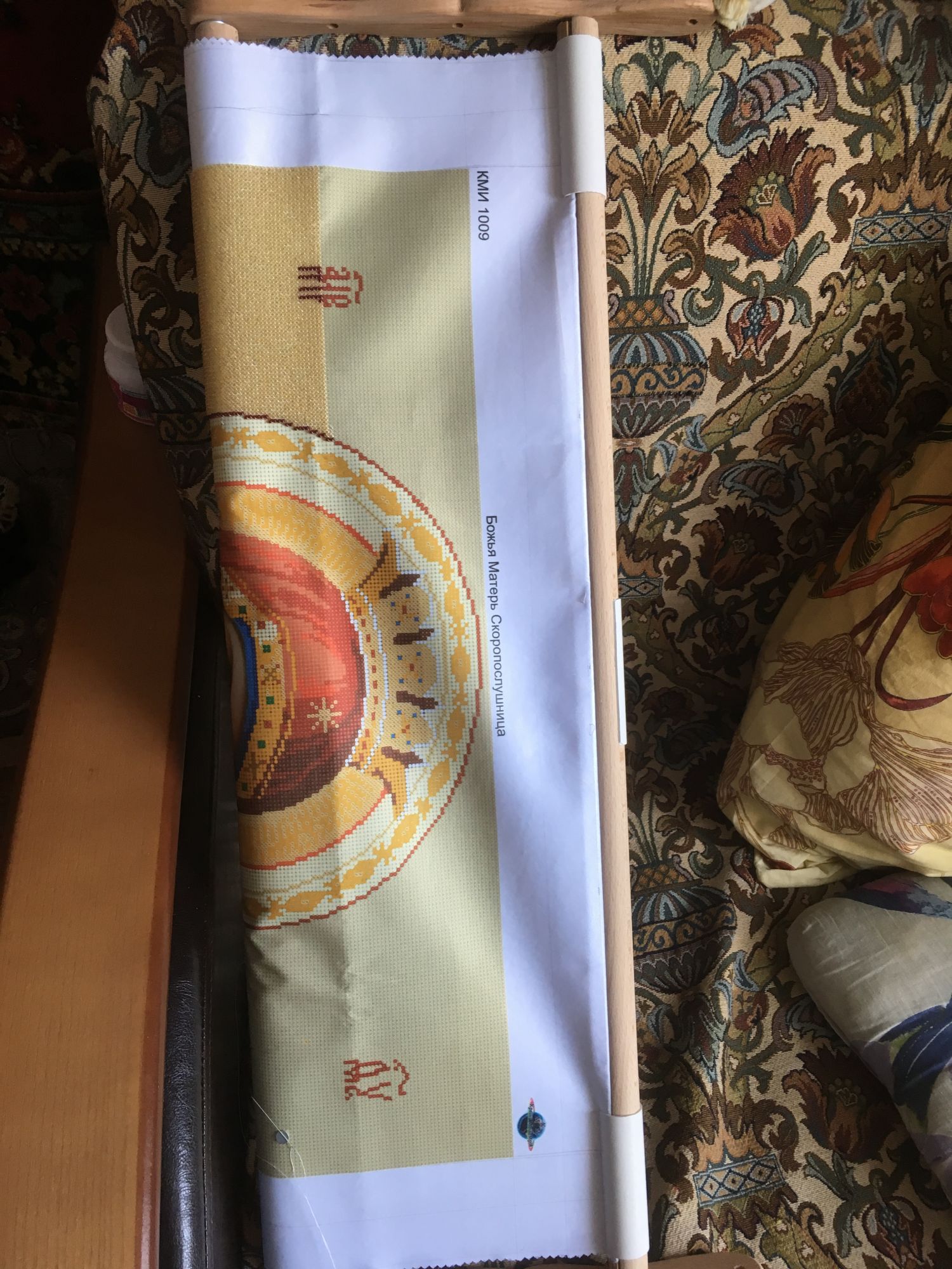 18 июля 2019 3 часа назад, Компания Дубко сказал(а): Наоборот - я пытаюсь понять, почему клипсами получается крепить хорошо, а палочками нет. Не более! Может, исходя из полученной информации, придумаем что-то еще! Может, когда используется большой кусок канвы или равномерки, то щепочка в такой раме держит хорошо. Но как быть тем, кто вышивает бисером, да еще на скользкой ткани, типа атлас или капроновый габардин? У меня сейчас в работе большая икона на атласе, принт нанесен так, что технический край составляет всего 7,5 см. Направляющая, в какую вставляется палочка-щепочка в диаметре 22мм, не менее 5 мм попадает в паз, делаем оборот ...и первые ряды вышивки оказываются на палке. Как вышивать? И еще, бисер тяжелый, он атлас под своей тяжестью норовит вытянуть из под щепочки, о тугой натяжке остается только мечтать. На фото видно как я вышла из положения. Вот цитата моего сообщения от 5 февраля этого года: Пока вышивала середину, была довольна. Теперь добралась до края и у меня начались очень сильные проблемы. Вышиваю я бисером на атласе проклеенном дублерином. Размер работы достаточно большой 60*80, т.е. бисера много и он тяжелый. Так получилось, что производитель принта оставил по краям всего по 7,5 см ткани, палки в которые вставляются крепки в диаметре 22мм, что на 4 мм больше, чем стандартные палки под клипсы, т.е. имеющиеся клипсы на них не натянешь. Закрепляла резинками, хомутами, все равно ткань под тяжестью бисера выползает. В магазине нашла раму с клипсами от производителя "Мое хобби", но нужного мне размера у них не бывает, самая большая рама 60*40, а мне нужно не менее 75см. Зато клипсы подходят, т.к. в этих рамах тоже круглые палки толстые, 22мм. Пришлось заказать такую раму через интернет магазин, благо цена на них невысока, чтобы снять с нее клипсы. Короче, гадость гадостная эти рамки Дубко с крепками. Советую производителю все-таки прислушаться к людям, которые на них вышивают и сделать на рамы с крепками хотя бы по паре клипс, для фиксации этих крепок. P.S. Надставить принт, ну совсем не вариант. Пришивала куски сатина, он оказался тоньше по структуре, вышивку начинало вести и морщить, а бегать, искать где-то ткань, равную по плотности, у меня нет не времени, ни желания, да и деньги жалко. Killwale сказал(а) спасибо Поделиться сообщением Ссылка на сообщение