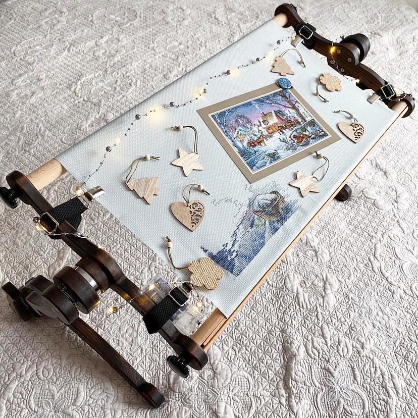 4 октября 2020 58 минут назад, Karolyne сказал(а): Здравствуйте! Сейчас на вашей раме у меня стоит процесс от Алисы и, честно говоря. не хочется снимать его, чтобы замерить сколько см края мне оставил производитель (но по ощущениям всё-таки больше 3х), но попробую показать ситуацию. Вот в таком положении закручена верхняя планка рамы, при чем под крепкой находится прям самый кончик канвы: А на этом фото видно, в каком положении при этом находится небо, оно же верхний край дизайна: То есть чтобы продолжить мне его сейчас вышивать влево и вправо, придется спускать его еще ниже. Но в таком случае натяжение слабое, уже пробовала и боюсь, что край канвы вообще рискует вылететь из-под крепки. Верхнюю круглую планку можно повернуть почти на 90 градусов, как раз должно хватить. Это добавит где-то 20 мм примерно. Muskat, mag, PolliPo и 2 других сказали спасибо Поделиться сообщением Ссылка на сообщение