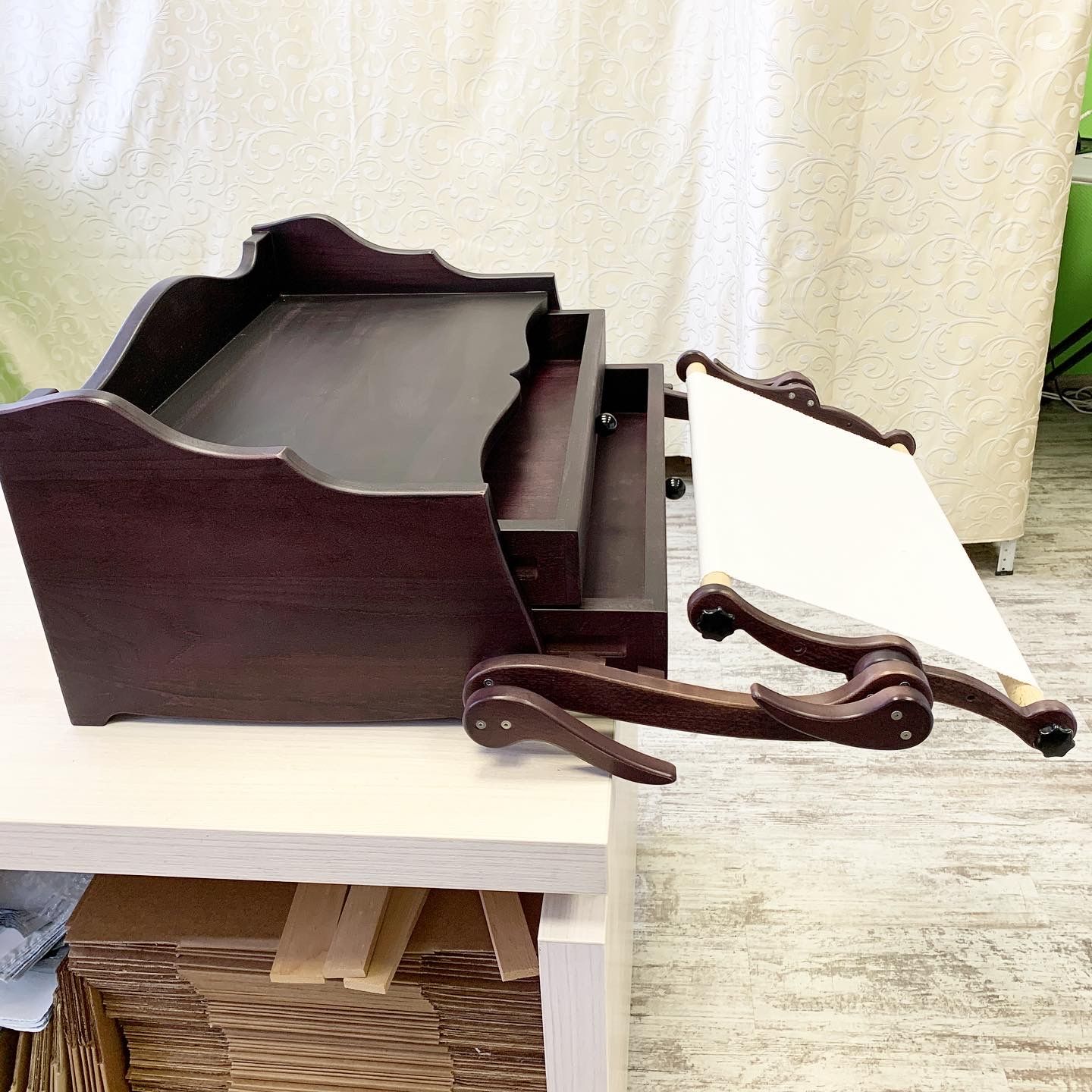 14 октября 2021 Хочу показать свой скромный помощник. Недавно водрузила на Серегу-мастера коробуху из под обуви, прям не нарадуюсь, как удобненько стало. Все под рукой умещается, и довольно небольшой общий вес всей этой дуры, около 3-3,5 кг. Коробка жесткая, дно усилено дополнительно плотным картоном, изнутри под гайками и деревянными шайбами дополнительно подложила СД-диски, крышка-откидушка для удобства. Коробка не качается, сидит на перекладине крепко. У ей внутре можно спрятать процесс. Может кому пригодится такая небольшая идейка. Еще хочу сказать, что этот диванный станок для узкого дивана не совсем подходит, он определенно лучше будет для кровати. Там нога 46 см, да, и если лампа перекувырнется, тоже здорово не будет. Я одну так раскокала Irina 1, Lucia-del-Umago, Elena-Lena и 4 других сказали спасибо Поделиться сообщением Ссылка на сообщение