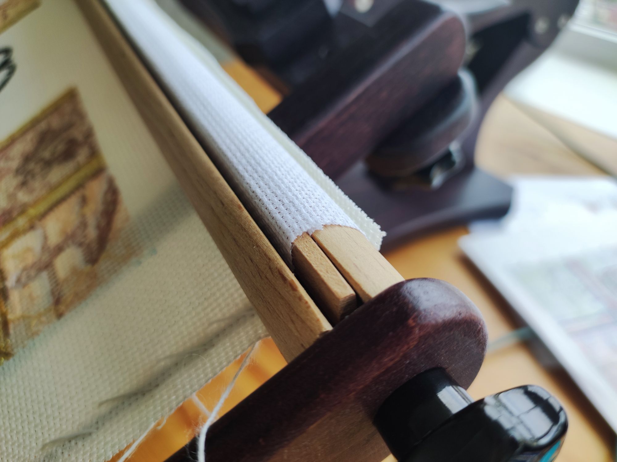 6 июня 2022 17 минут назад, WhiteMoth сказал(а): Я в своих экспериментах по креплению пробовала на самой канве (там запас был хороший) делать вот такой прошитый кармашек для палочки. Так еще легче крепить, конечно. Ткани вообще сместиться некуда) Вот, внизу фотографии видно розовую строчку пунктиром Ну а для маленьких припусков такая штука, как на фото точно пригодится Многие так делают! Это упрощает процесс запяливания. Лана05 и Толика сказали спасибо Поделиться сообщением Ссылка на сообщение
