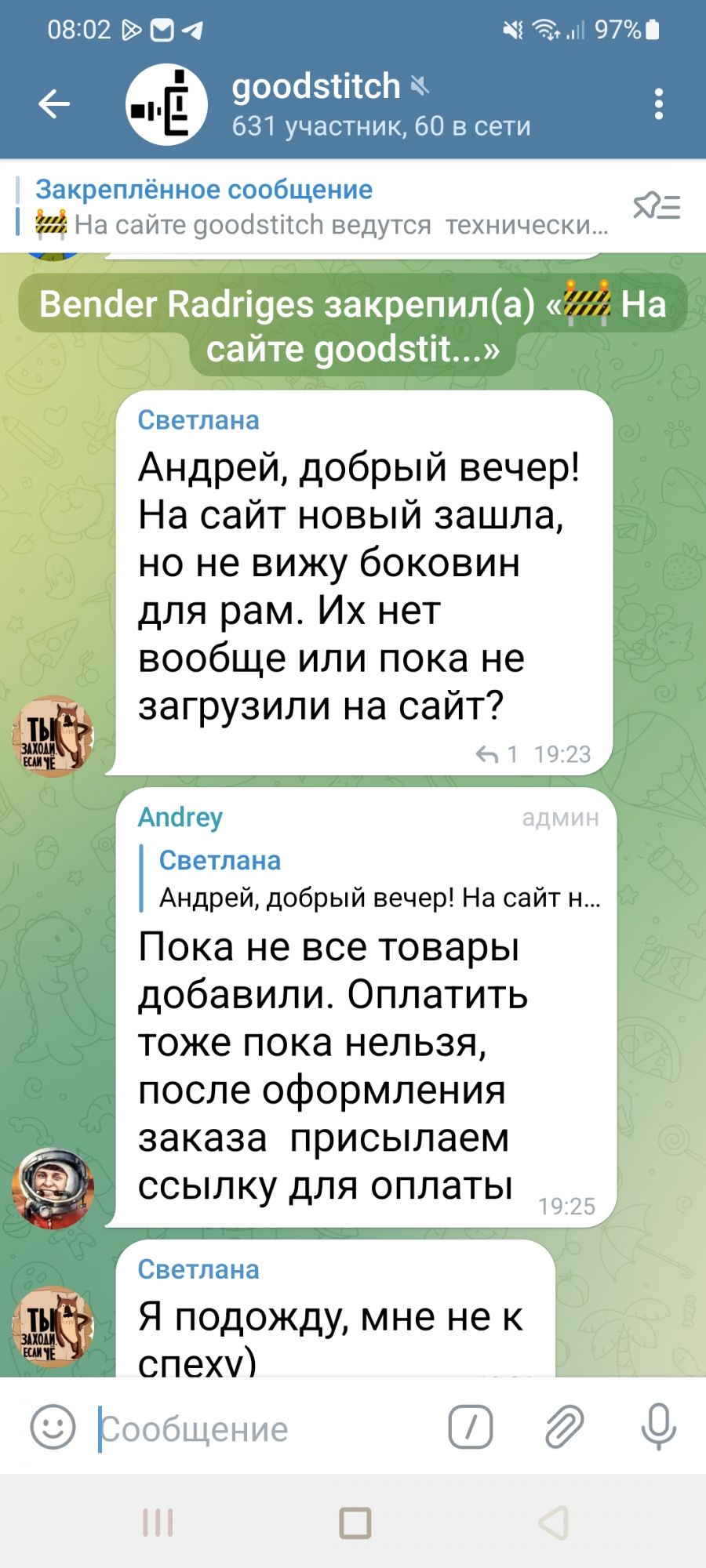 29 октября 2022 3 часа назад, Евгения 62 сказал(а): Зашла нынче в Goodstitch вКонтакте и... нету у них в каталоге ни Зеи, ни Амура... Может, временно отсутствуют? или распродали все? У них на сайте ведутся работы, они об этом в ТГ-канале писали на днях. Natik_V и Толика сказали спасибо Поделиться сообщением Ссылка на сообщение