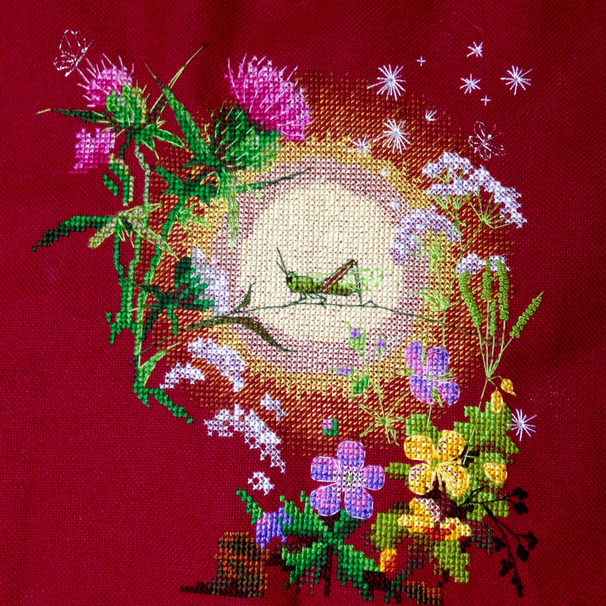 26 февраля 2018 В 16.01.2018 в 15:18, Avril сказал: Часть вышивки под эгидой "ура недокрестикам!"... Не понравилось мне, что у горца (на котором сидит кузнечик) листья были просто контурами... И Остапа понесло. Вообщем форма мне нравится, возможно цвет посветлее нужен был, но перешивать не хочу. Как вам? Ну и цветы герани и чистотела тоже докручены. Не понимаю я как можно на одном цветке в местах, где бэк идёт в виде полукрестика, крестик под ним шить то зелёным, то в цвет цветка, то пропускать. Какая-то неопрятность выходит. Зато сейчас получилось так, что уже можно не бэкать. Я тут между дошивами двух больших димов понемногу шила Закат. Тормознул весь процесс бэк, которого на "чертополохах" море. Но героически победив выкладную в таком же огромном количестве на димовской ёлке, сегодня я решительно добила почти весь бэк на этих милых растениях. Не утерпела, сфоткала при вечернем освещении. махно, linden, BlueeYeS и 18 других сказали спасибо Поделиться сообщением Ссылка на сообщение