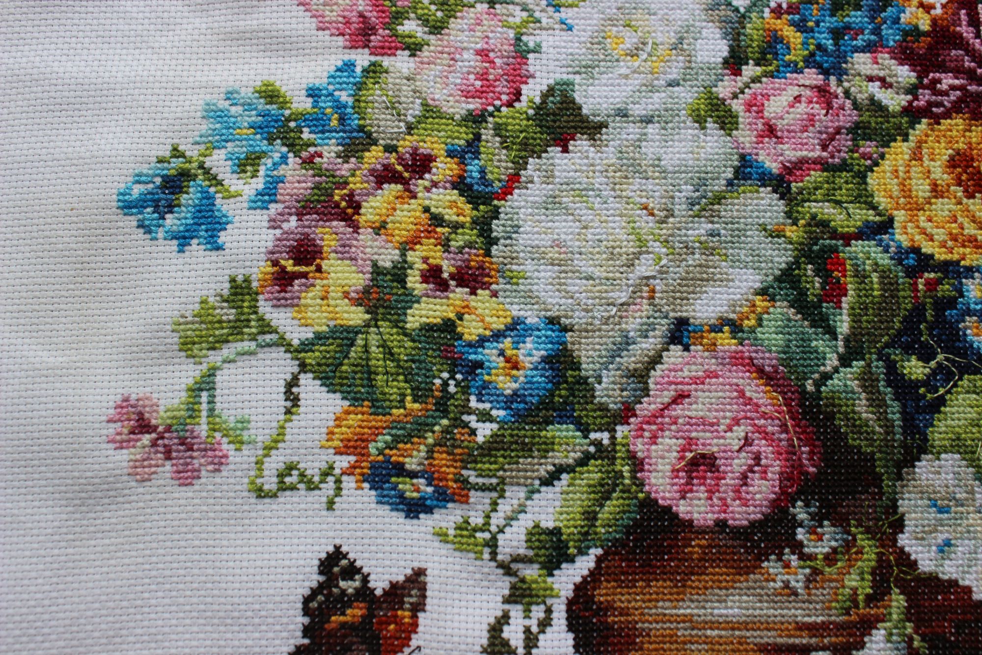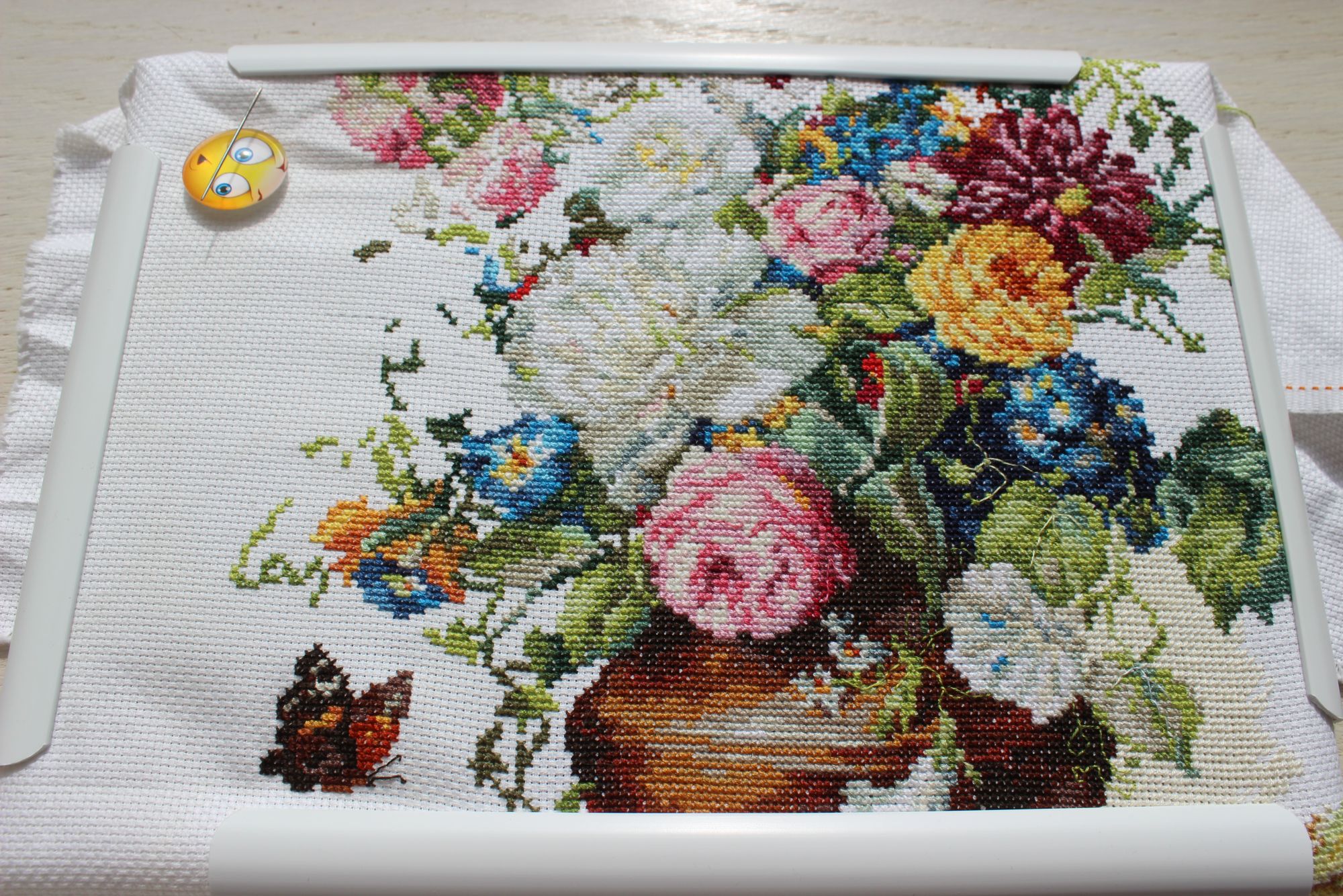 19 июля 2019 У меня продвижения в букете, на этой стороне было вот так пустовато: стало: И полностью сняла букет, кто-то просил. Еще вышивать справа достаточно много, верхняя часть слегка , по центру есть пробелы. Бэк тоже, хотя я его стараюсь сейчас делать сразу по завершении вышиваемого участка. Уже кончились два цвета, но я не уверена что это вина производителя, уж очень долго у меня этот процесс влачится. Кое-что могло и затеряться, вторые органайзеры уже рвутся. Подобрала похожие в ДМС и гамме. Валия, letka, Yulik и 26 других сказали спасибо Поделиться сообщением Ссылка на сообщение