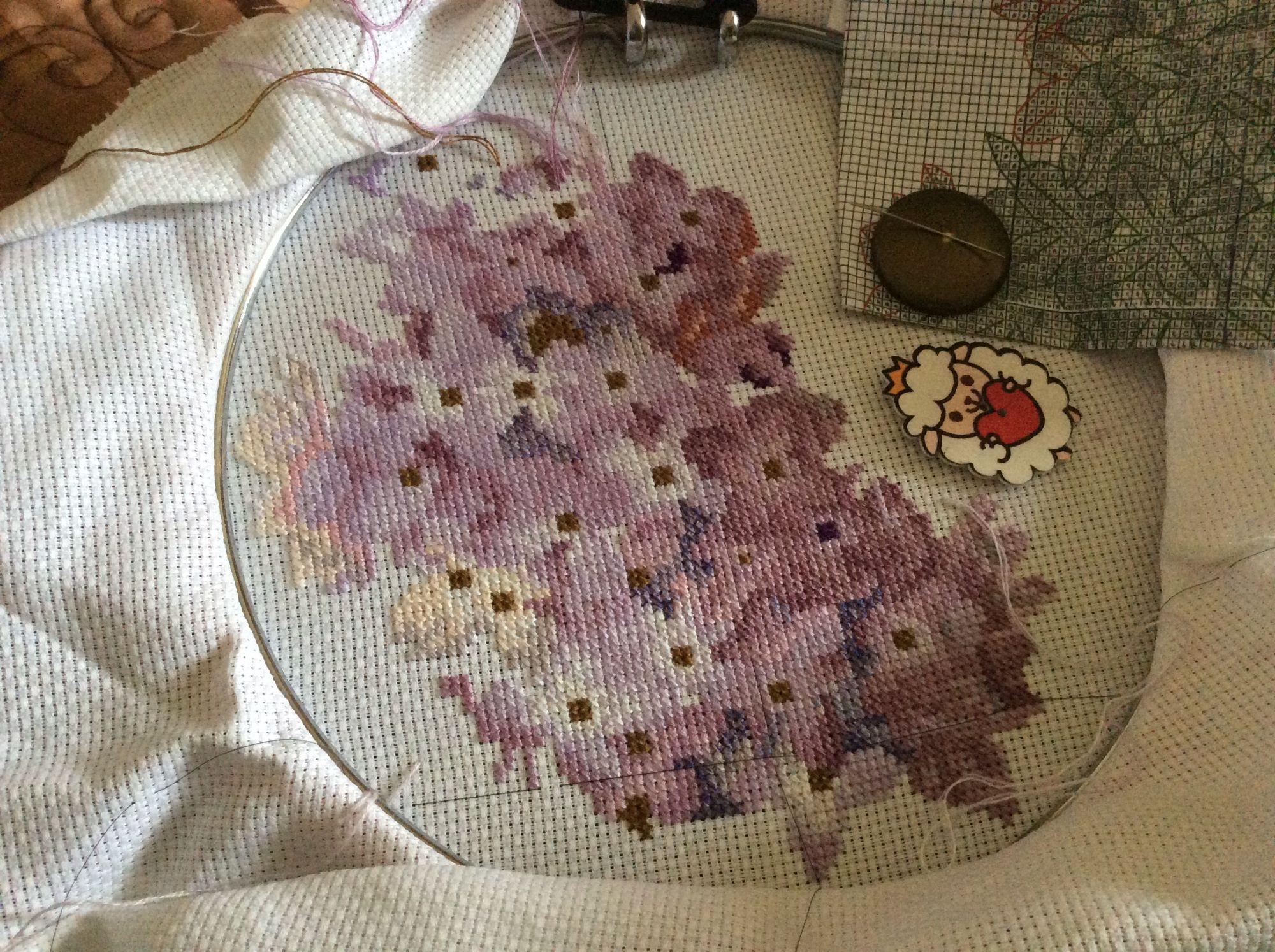 1 сентября 2019 Добрый день! Вернулась после большого перерыва к своим пионам. Вышилась чуть больше половины, надо поторопиться. От равномерки быстро устаю. А еще теперь мучает дилема. Вверху сделала все фрузелки и теперь не могу вниз передвинуть пяльца. А на большего размера пяльца не хватит канвы. Теперь хоть на руках вышивай вторую половину((((( может кто посоветует что делать?.. Selinta, kreolka, Пушистая и 12 других сказали спасибо Поделиться сообщением Ссылка на сообщение