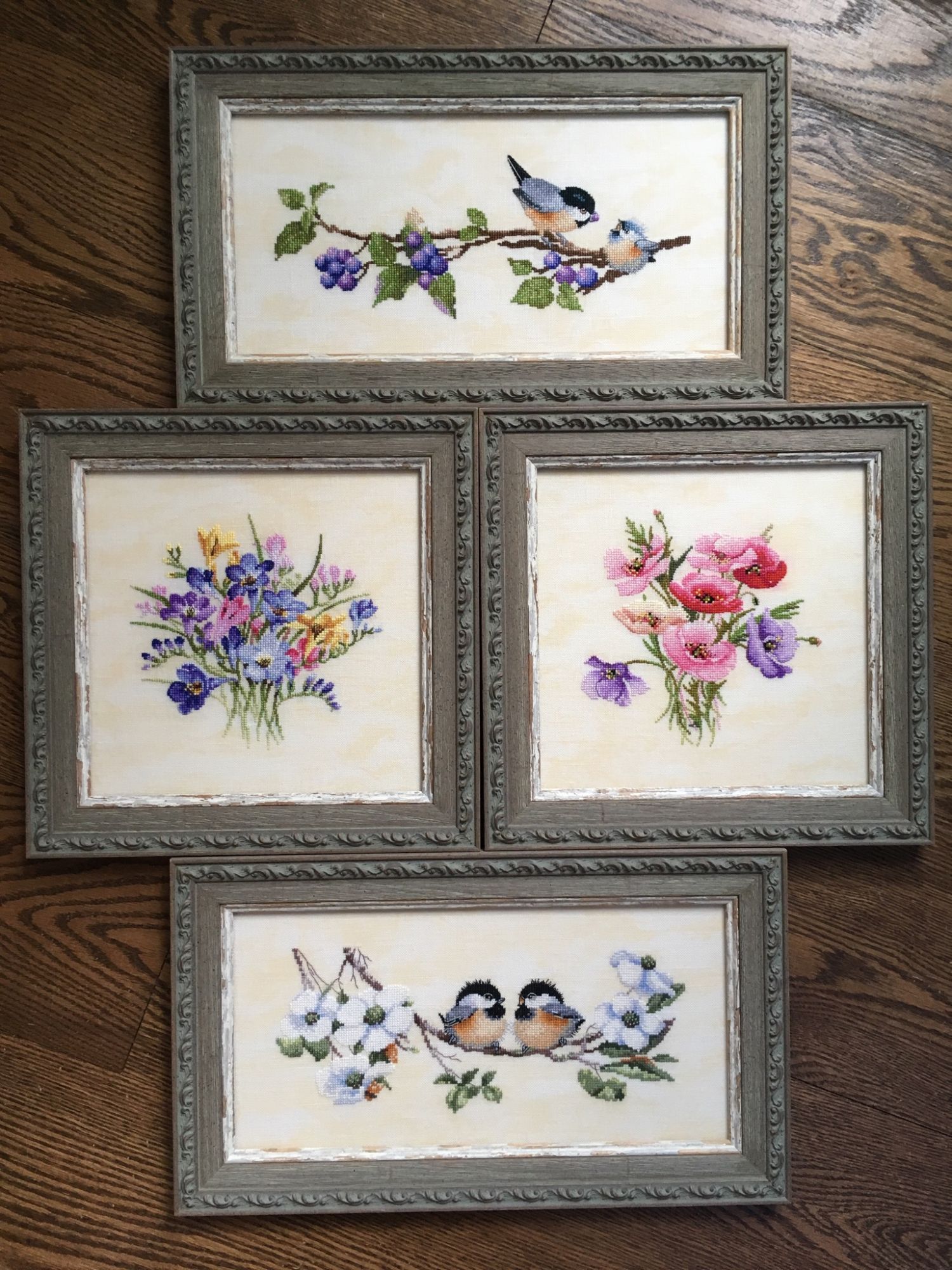 1 марта 2020 18 часов назад, Avril сказал(а): Так и предыдущие в самом простом оформлении. Да-да! Я помню, в стиле прованс! 18 часов назад, Avril сказал(а): Я никак не решу как мне этих трёх птиц разместить. Как три отдельных дизайна или три сразу на одном куске льна в одной раме. Я бы всех в одной раме посоветовала. Так реже шьют, но вот маленькие алисины времена года видела так оформлены - просто блеск! Avril сказал(а) спасибо Поделиться сообщением Ссылка на сообщение