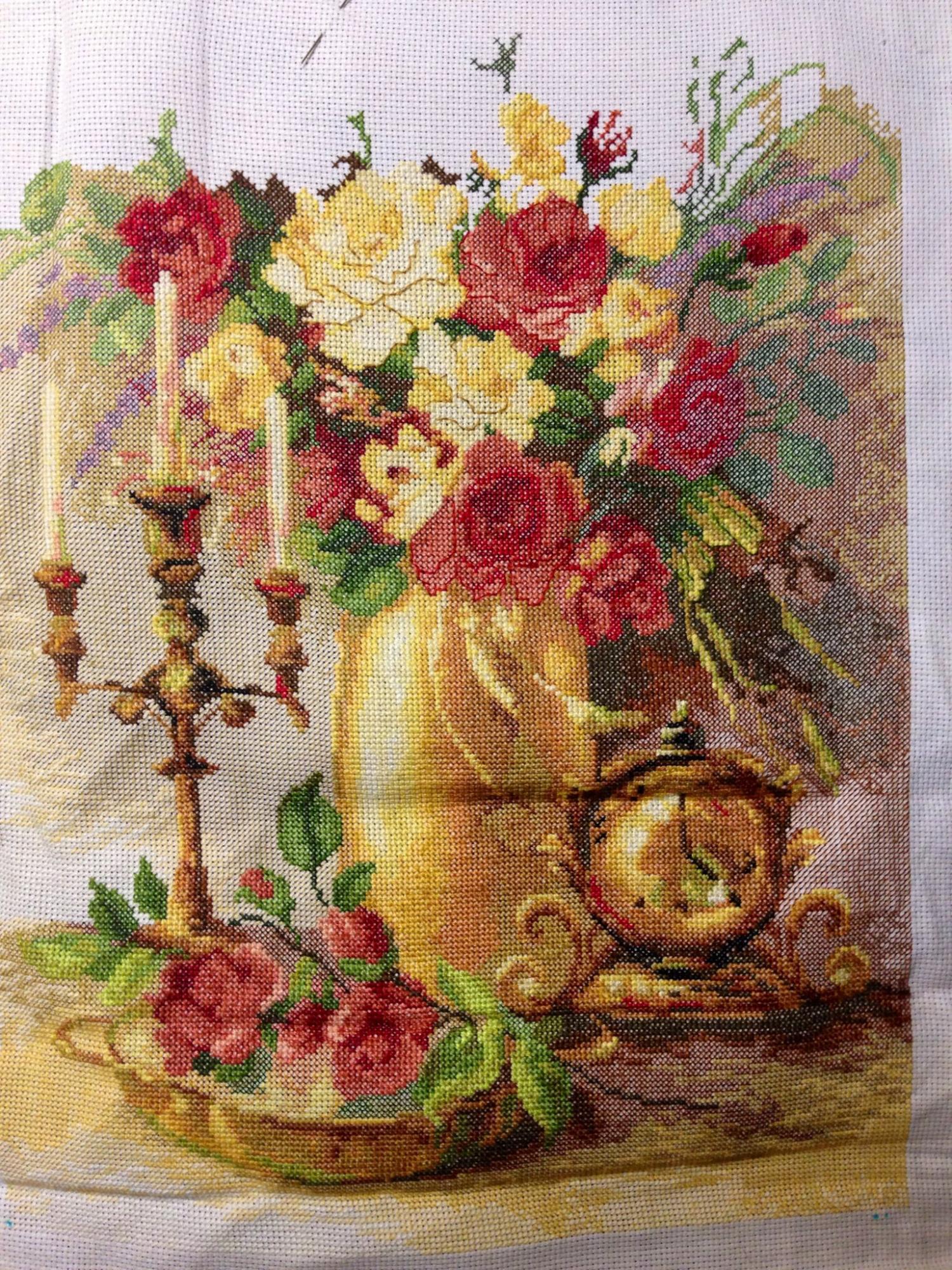 12 июля 2014 Всем привет! хочу присоединиться к вам с "Акварельными флоксами" от Риолиса. Канва 5,5 - это 14 или 16, никак не пойму. 23 цвета, есть бленды. Вышиваю в подарок, до этого почти целый год за иглу не бралась, так что не смотрите на мою подпись... там почти никакого продвижения! После гобелена крестики кажутся гигантскими, чудно проглядывает канва между крестиками шьется легко, после гобелена можно сказать, отдыхалочка. Надеюсь, к сроку успею. Хотя скоро уеду в путешествие, так что полторы недели будут малорезультативными (надеюсь пошить в поезде). А пока вот что получилось за неделю: Ой, один из моих самых-самых любимых букетов!!! Когда-нибудь куплю и вышью. Поздравляю с таким дивным процессом и легких крестиков! Поделиться сообщением Ссылка на сообщение