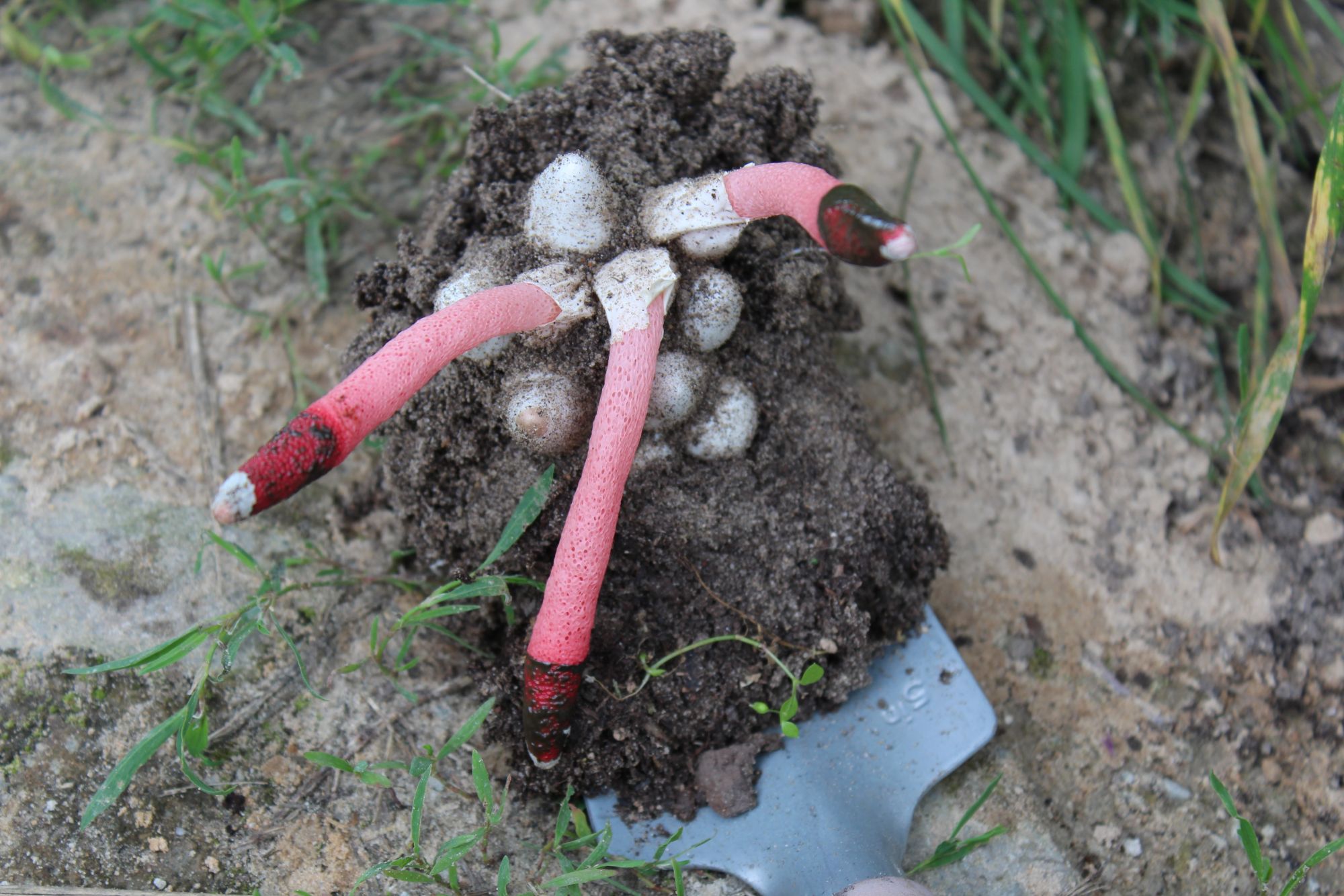 18 июня 2018 Прошлым летом вырос в теплице мутинус равенеля. Ужасный гриб! Сначала из земли показалась кучка белых шляпок, похожих на перепелиные яйца по форме и размеру. Решила подождать,что же будет...На другой день эти шляпки поднялись на красных губчатых ножках. А еще через день по участку разлилось жуткое зловоние, в теплицу вообще невозможно было зайти, как будто там навозная куча или выгребная яма. Шляпки гриба покрылись зловонной слизью и по ним летали навозные мухи.Фу! Почитала я на форумах, узнала, что это сморчок вонючий или мутинус, что если попал этот гриб на участок с землёй или навозом, то вывести его непросто, дачники годами потом находят его то там, то сям. Ну и поскорее выкопала и вынула даже грунт на метр! Вроде бы, больше не появлялся этот экзотический гриб. Такая история. nogres, svenlanos, Svetl@n@ и 21 других сказали спасибо Поделиться сообщением Ссылка на сообщение