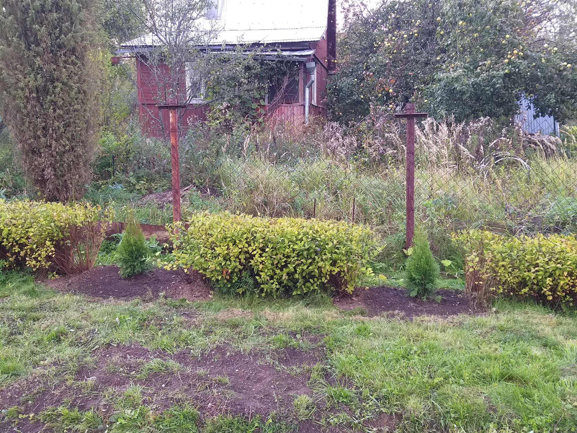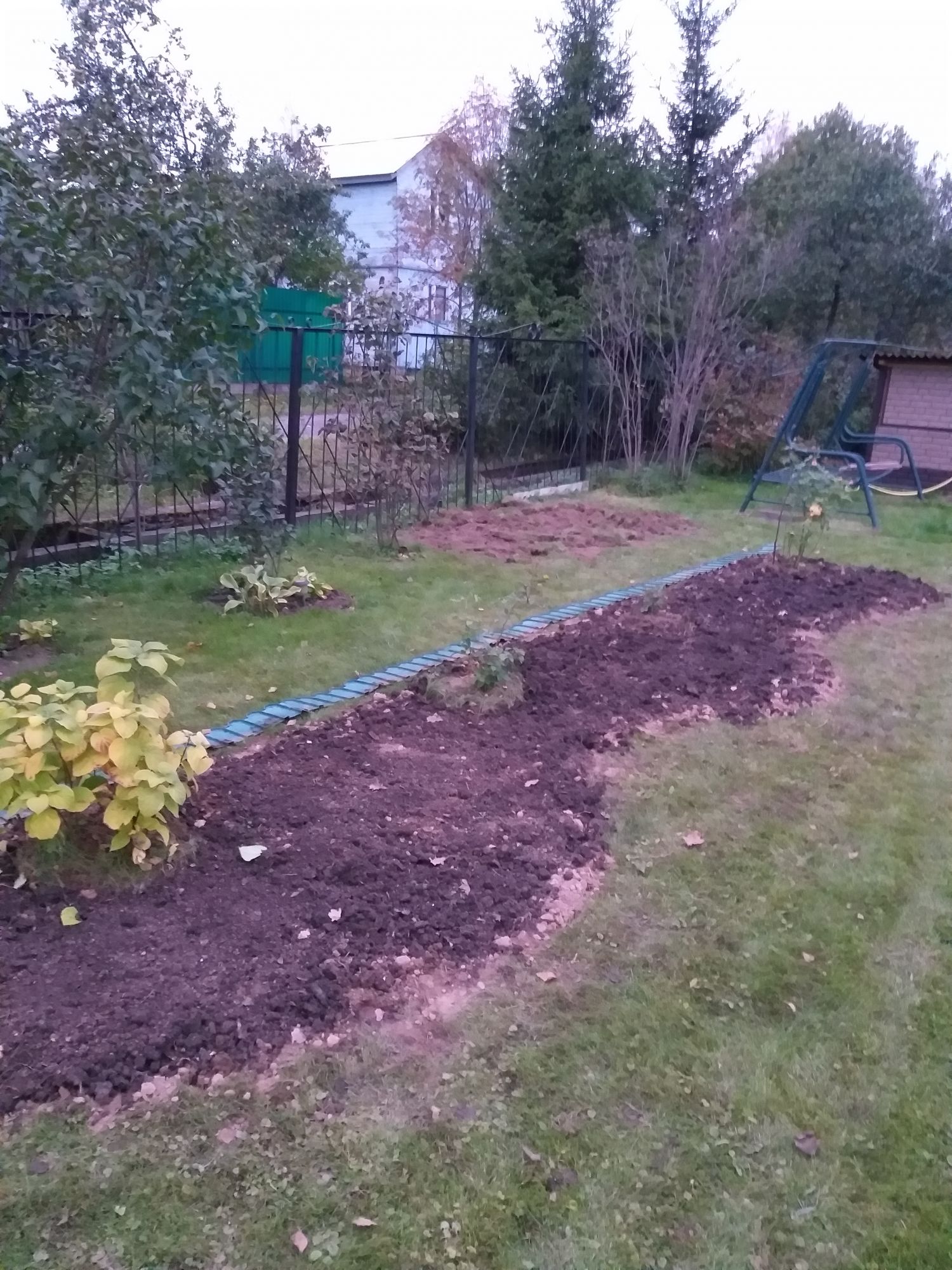 9 октября 2019 Вот так выглядит участок на сегодняшний день. Площадь большая, сразу посадить не получается, т.к. у нас есть еще планы по благоустройсту участка (беседка, отмостка, дорожки, гараж). Вот и осваиваю понемногу... Есть огород: Мои клумбы эту сделала в 2015 А вот раньше перед домом были посажены 2 куста: венгерская сирень и спирея серая. Скучно смотреть на них было и я решила добавить зелени. Освоила еще небольшой участок глины (1.5х5.0 м) и посалила хосты, астильбы, лилейники, гортензию древовидную, туи, можжевельники горизонтальные... За сезон все растения прижились и выросли. В июле добавила вдоль будущей дорожки клумбу прямоугольную(трапецию). Розы даже повторно цвели.. А осенью ещё добавила клумбу. Но пока остались старые розы и посадила тюльпаны. Надеюсь в эти выходные посажу ещё что нибудь. И давно мечтала о туях. Вот с мужем посадили 5 шт. Туи Смарагд. Пришлось выкопать кусты спиреи японской, которые просид ели лет 15. Выбрасывать жалко, ведь сама когдато выростила из черенков, часть посадили за забором в доль дороги у соседки, часть привезла в Москву. Посажу возле дома. Palex, Путешественница, Fascinata и 15 других сказали спасибо Поделиться сообщением Ссылка на сообщение