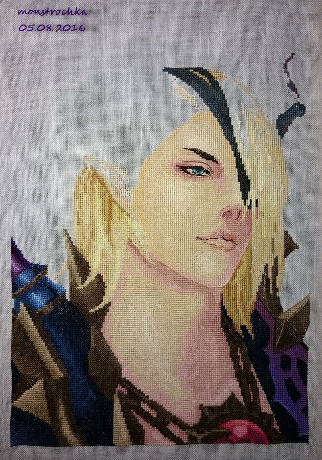 27 августа 2016 Приветствую, уважаемые! Добро пожаловать в мою слегка запыленную, но по прежнему гостеприимную пещерку/подвальчик на небольшой вечерний раут, посвященный незначительным достижениям вашей покорной слуги на поприще вышивки ... Приглашена также гадалка, она непременно расскажет, желающим услышать, о том, что стало, что будет и чем сердце успокоилось... Ну да ладно, довольно словоблудия, приступим к развлекательной части... 1. Стало Подрос рабочий процесс с синичками было: стало: Мы с нитками примирились друг с другом... они не вяжутся в узлы и не слишком сильно козлят, укладываясь в стежки, а я не жду от них (и от себя) чудес... мир, дружба, жвачка! 2. Будет. Положено начало новому процессу па схеме Танюшки mamatata. Итак, представляю вам демона - Себастьяна Микаэлиса (манга/аниме "Kuroshitsuji" (Темный дворецкий)... я, кстати, большой его поклонник, у меня даже фигурка есть! Размер схемы 111х150 крестиков, 17 цветов + 3 бленда из них Вышиваю на 36 Edinburg то ли светло-серого, то ли молочного цвета (освещение дома хромает в вопросах цветопередачи, надо будет на солнце взглянуть на цвет ткани)... шьется как песня - не оторваться! Это я кусочек за вечер вчера наваяла... никаких трудностей, не взирая на обилие ньюансов вроде петитов и узкокрестиков - все как по маслу. Таня! шшупер! Ну и 3. Чем сердце успокоится... Кастаник... завершен! было: немножко остатков процесса: стало! ну малька подобия макриков... крестики не блещут идеалом, но я традиционно не парюсь по этому поводу Прошлые выходные и почти вся рабочая неделя (вечера) были посвящены бэку... Тихо поминая сквозь зубы Сашку (дизайнера) и такуютомать, я шила этот долбаный непоймикактебямлинкрепить бэк! Особенно доставили волосы ... по ощущениям абсолютно бесконечные... на середине шевелюры сдалась и пошла шить выкладной вместо бэка... не сказать, что процесс стал сильно проще, но все же... По итогам имею сказать следующее по схеме - результату... Автора: - за крестиковую проработку обнять и расцеловать многократно, ибо она великолепна! - за бэк, линчевать! - за итог - поднять, оживить и снова расцеловать! Александре, будучи на постоянной связи в процессе отшива, я его уже слила в ВК - она пребывает в состоянии легкой эйфории, судя по комментариям, так что мавр сделал свое дело...! Теперь надо только натянуть товарища на подрамник и торжественно вручить создавшему его дизайнеру на долгую память Вот такие наши дела вышивательные... держите пару фоточек небесных напоследок, и до следующего эфира! chana75, Кисуля, Whiskers и 40 других сказали спасибо Поделиться сообщением Ссылка на сообщение