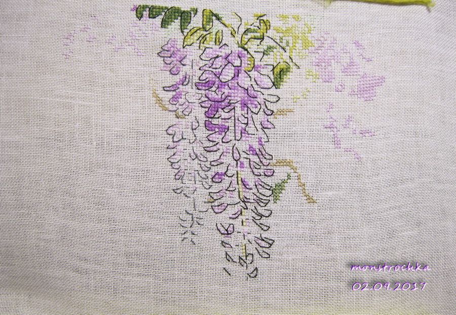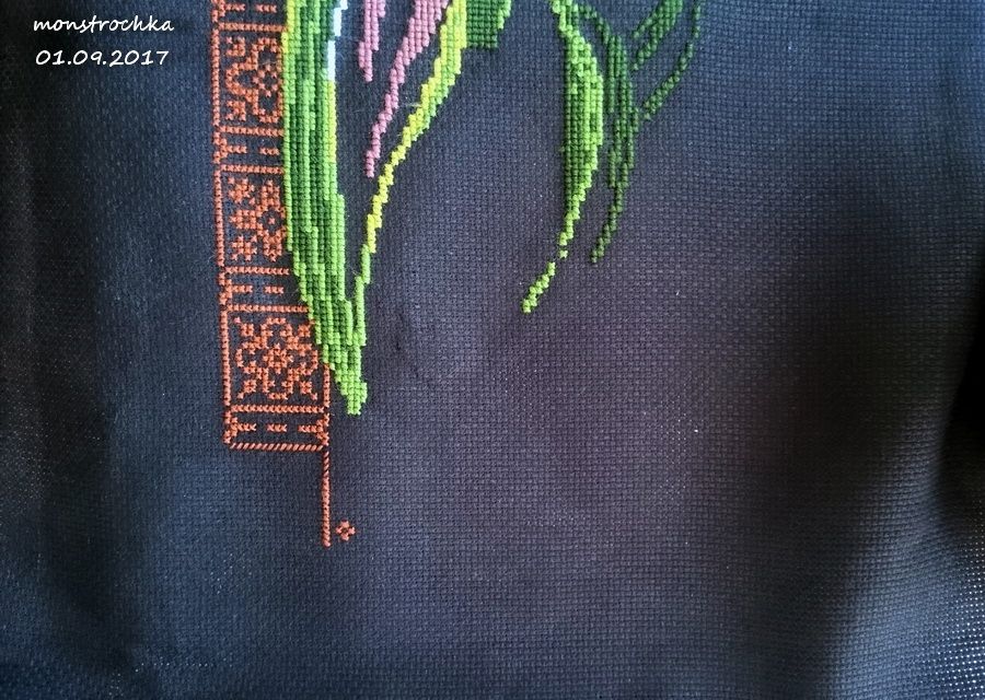 3 сентября 2017 дьец! Куча текста коту под фаберже! Ладно, выдохнула, пошла на второй заход... *себе под нос* гляди ко, почти день в день в этот раз отчитываемси... *до противного жизнерадостным и бодрым голосом ведущего передачи "С добрым рабочим утром"* Приветствую, драгоценные! Вашему вниманию представляется условно ежемесячный выпуск журнала "обычаи и привычки monstrochkus vulgarius" или же "куда нас занесло на этот раз" Начну пожалуй с самой предсказуемой части... 1. Ирисы (Риолис). За месяц перешила (и продлила) в положенное количество нитей узор и вообще вырастила вышивку на полтора снапа Было: стало: и полностью отшитое (Валь, Татусь, последнее фото в гайку, на ваше усмотрение). Дальше пошли внезапности и непредсказуемости... Помните, я тут в прошлом выпуске рассказывала душещипательную историю про коня, многоработы и необходимость заполнить стены в кабинете? Ну там еще мопс-капитан в итоге вдруг нарисовался. Так воот... В общем я решила, что обновление в наш рабочий птичник будет очень кстати, в результате вышилось вот это... 2. схема "Шо? Опять утро?!" Водениковой Любы (slovew) процесс: (каюсь, между первым и вторым фото забыла промежуточное сделать - увлеклась) итог: Немного слов по процессу. Размер схемы 95х95 крестиков, 16 цветов, вышито на 36 Edinburg, нитки - традиционная смесь ДМС и СХС (сверенных по карте ДМС, разумеется). Схема очень адекватная и логичная, ну а несчетный бэк это уже как то не проблема, а просто еще одна из технических характеристик . Результат - сами видите... ржач и мимими в одном флаконе... Ну и... 3. "Акварельная глициния" по схеме Алисы Окнеас Исходником для всей серии акварельных схем Алисы, послужили кадры из анимационной ленты небезызвестной студии Гибли (Ghibli) - «Сказание о принцессе Кагуя» (Kaguya Hime no Monogatari (яп. かぐや姫の物語). Очень милый и приятный мультфильм, основанный на народной японской сказке Х века о резчике бамбука, также известной как "принцесса Кагуя". Рисовка отличается от привычной нам и обычной для этой студии и больше напоминает стиль традиционных японских акварелей и графики. Узнала о происхождении приобретенной мной пачки схем я случайно и уже после их покупки, посмотрев собственно мульт, и как человек, давно и прочно увлеченный всем восточным, только порадовалась. Вот и руки наконец дошли до отшива первого из приобретений (обожаю глицинию, к тому же! ). процесс: (Татусь, фото много, но схема небольшая, и мне кажется интерес могут представлять даже такие небольшие продвижения, тем более с учетом того, как их преображает бэк... В итоге постараюсь уложиться в не более чем 12 фотографий, чесначесна! ) Вышиваю на жемчужно-сером 32 Belfast (цвет Silver moon продавец указал. Номер без понятия, не интересуюсь и не разбираюсь, ибо не интересно ) Ну, дифирамбы схемам Алисы я спела еще на этапе вышивки ее акварельного слоника, повторяться сильно не буду, ибо в общем то ничего не изменилось... Все прекрасно, шьется - не оторваться, бэк на 99% счетный, результат шшыкарен! Ну и по сложившейся традиции немного невышивательного. Жизнь в последнее время, не иначе как шуткуя, закидывает меня на многокилометров погулять по живописным питерским промзонам (по неживописным я тоже пару раз гуляла... брр, нафих-нафих) итогом стала серия фото, которые идут у меня под рабочим названием "Другой Питер"... (последние две не совсем промзона, просто не вполне обычный вид на Александро-Не