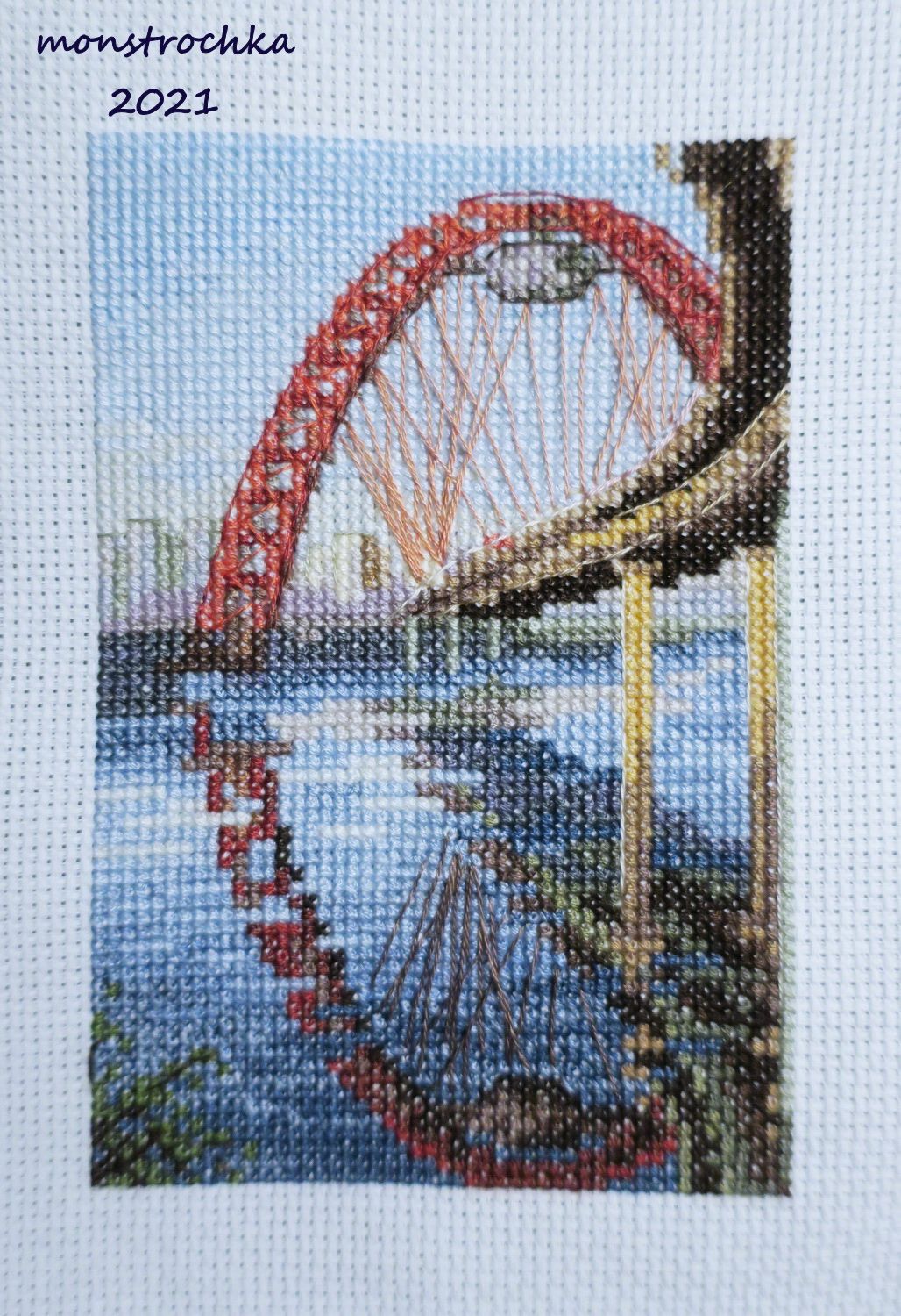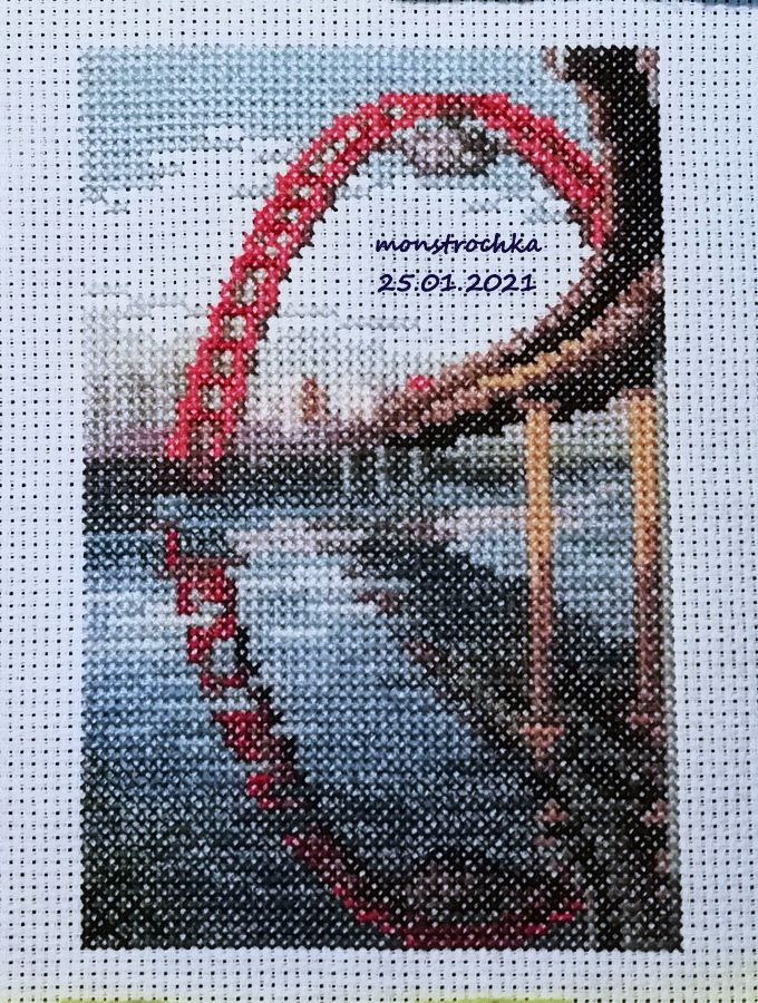 30 января 2021 *лениво потягиваясь и зевая, выползает из берлоги* А чего, январь уже всё почти, да?... Чуть не пропустила... Монстрожаворонки просто в зимний период впадают в спячку, по крайней мере по утрам в период с декабря по март слово "воскреснуть" подходит мне куда больше, чем "проснуться"... Просыпаюсь я с солнцем, а оно встает в 9 с хвостом... ну вот по приезду на работу к середине первой чашки кофе как раз и просыпаюсь, да Но это лирика, а принесла я громадье всякого вышивательного (внезапно), не то, чтобы словила особо вышиванца, но неожиданно (для меня самой) вышивка задалась... 1. Сова от Анкор - продолжена (внезапно ) было: стало: Бэк на ветках я всё таки не дошила... не очень красиво выходит, решила доколупать крест, а там посмотреть, стоит ли вообще докапываться до бэка. 2. Волна - Божена - продолжена было: стало: По факту - готов примерно 61% . Потрясающе шьются сине-зеленые оттенки. И быстро, так как идут кучно, что, конечно же не может не сказаться на скорости. 3. Мостик к маяку северного пирса Манисти (RTO C304) - завершен было: без бэка: Итог: Шикарный мостик. Очень простой и приятный в работе. Один из самых лёгких из уже вышитых, в том числе по бэку, что меня не могло не порадовать. Следующий набор был вышит экспрессом за январь 4. Живописный мост - (RTO C310) - начат и завершен немного информации о мосте под катом как обычно... Скрытый текст Живопи́сный мо́ст (также известен как мост в Серебряном Бору) — вантовый мост через Москву-реку. Расположен на северо-западе Москвы, входит в состав Краснопресненского проспекта и проспекта Маршала Жукова. Получил название по находящейся рядом Живописной улице. Открыт 27 декабря 2007 года. Авторы архитектурной и конструктивной идеи моста — группа инженеров НПО «Мостовик» (Омск) и ОАО «Метрогипротранс», главный инженер проекта моста — Валерий Курепин[1]. Автор проекта подвесной капсулы — архитектор Николай Шумаков[2]. (с) Википедия Ну и поехали по процессу (совсем совсем исходник мне искать было лень, слишком много фото, так что нашла самый приближенный по времени суток и ракурсу, пусть будет) процесс: Итог: Полагаю, что по времени работы над ним, понятно, что мост не доставил никаких хлопот))). Ванты не стала делать даже выкладными, все просто натянула едиными протяжками. После стирки совсем чутка подтянула пару ниточек сверху и вуаля! Как так и было))) Ну и сейчас взяла в работу десятый РТОшный мост 5. Пешеходный мост на озере Остин (RTO C313) - начат Чутка инфо под катом: Скрытый текст Пешеходный мост от Miró Rivera Architects. Остин, США - Новый пешеходный мост в американском городе Остин, столице штата Техас, соединил главный и гостевой дома, расположившиеся на берегу озера Остин в очень живописном месте среди густой зеленой растительности. На создание такого лёгкого и изящного моста архитекторов из местной студии Miró Rivera Architects вдохновил камыш и другие растения, которые покрывают берега озера. Мост маскируют деревья и травы, растущие по берегам озера, превращая его в практически незаметную, будто бы природную конструкцию. Одна из основных частей моста – это пролёт, который образуют пять труб диаметром почти 13 сантиметров. Настил и перила моста образованы металлическими прутьями разной длины. Эти прутья напоминают камыш. С внутренней стороны перил вдоль двух тонких труб, приваренных к вертикальным прутьям, прикреплены две верёвки. Длина из
