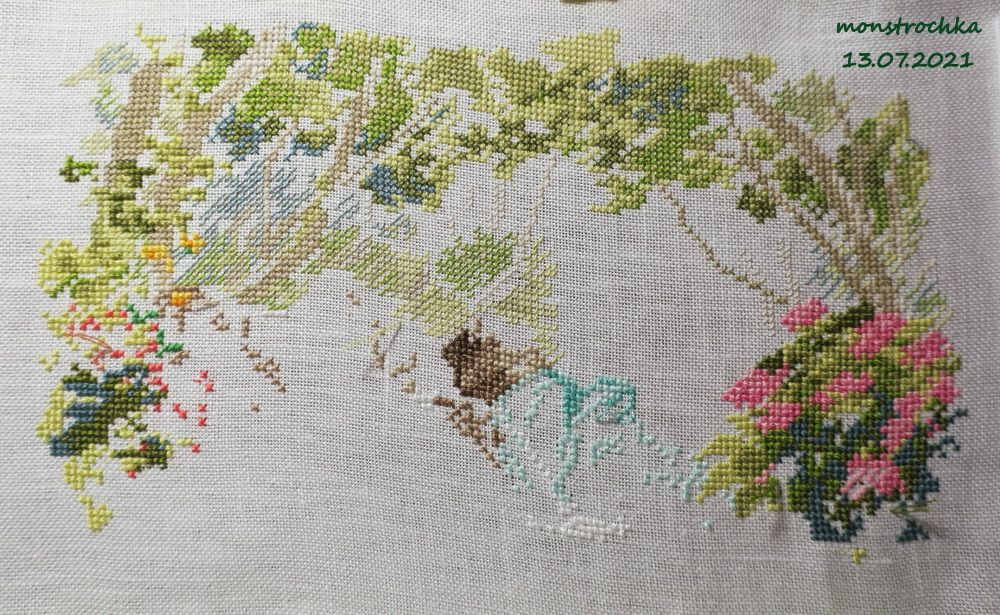 29 августа 2021 Приветствую, незабвенные! Я с отчетом на ночь глядючи... Август, ах где ты август... оппа и нет тебя... Да и славно, в общем то, ибо всё в жизни прекрасно своей конечностью... да, у монстры нынче малех философское настроение, сюжеты вышитые располагают видать . Ща докажу 1. Волна Божена мимо проходим, проходим не задерживаемся. Статистически + 4тысячи полукреста, визуально нифигашеньки с гулькой, так что гуляем дальше) 2. Ручей от Алисы Окнеас - завершен было: процесс: Итог: фрузелкииии Ну не так много, на самом деле, штук 130 где-то всего. Как и все схемы Алисы - вышивалось интересно, как и вся эта серия в силу "акварельности" - непросто, ибо равномерка и разброс креста-полукреста по полю, которые потом уже соединяются бэком воедино временами дается нелегко и такаятоматерь мне в помощь при очередной ошибке в полниточки при подсчете отступов между стежками. Итог однозначно лучше и интереснее схемы смотрится. В общем довольна. Напомню, это третья вышитая схема акварельной серии (первые были глициния и сакура) (по факту - всё это скриншоты из аниме студии Ghibli "Принцесса Кагуя"), которая по итогу будет оформлена едино и заселена на кухню... правда это неточно . 3. "У козодоя всё в порядке" от Анны Шишкиной - завершено. было: процесс: Итог: Ну, что я могу сказать... Ничего *ржот* Он прекрасен, гиперпозитивен и этим еще более прекрасен! Вышит просто на одном дыхании, схема простая, бэк весь счетный, не схема, а песня. Хочу до отпуска довезти его до Айвара и сдать в его чуткие руки с наилучшими пожеланиями по оформлению Два процесса закончены, так что и начато было соответственно... Вообще, закончив Козодоя, хотела взять из закромов Осень от ЧМ, но поняла, что нет перенабора в электронке (нигде вообще), а по бумаге вышивать ЧМ ... святсвятсвят, хватит с меня издевательства над нервами и глазами! А какой там бэк, мммм *жмурится* ... мечта эпилептика в недельном запое. Рисовали его явно в пэинте мышкой, мышкуимвглаз... В общем, пока перенабирала вечерами схему, взяла, что под руку подвернулось из ближайшего и для чего электронная схема была))) 4. Венок с Черемухой от Риолис - начат Процесс идет изумительно! Мой любимый тип схем на самом деле, когда относительно небольшими группками расположены цвета. в пределах средней длины протяжек между собой... И не скучно шить, и довольно для меня занятно строить оптимальные "маршруты", стараясь минимизировать "потери" нитки))) Ну и напоследок 5. "Ночной дожор" от Юлии Золотовой - начат Ну, то есть как "начат"... будет начат, как только я допишу сей опус на форуме А пока вот. Подготовочка типа Я ленивая жопа, мне неохота красиво раскладывать добро для фото подготовки, так что как есть). Зато у меня под эту задолбанную жизнью и (видимо) праздниками ёлку есть клевая белфастовская основа темно-графитового цвета в люрексовую снежинку... мыр В общем - это МОЯ ёлка. Я это поняла как только ее увидела в схемах. Так что надеюсь, что этот Новый год мы с ней встретим вместе И хаотичный флуд в конце отчета как обычно) Котики, много котиков, ну невозможно же они няшные потому что))) Свежая августовского розлива котобулочка подруги Британка старшего брата начала носить "добычу" с прогулок по заднему двору Главное, чтобы не Черных вдов таскала, а гусеничек семья переживет пожалуй Обеденные прогулки на работе) В такие моменты я понимаю, что удачно работаю террито