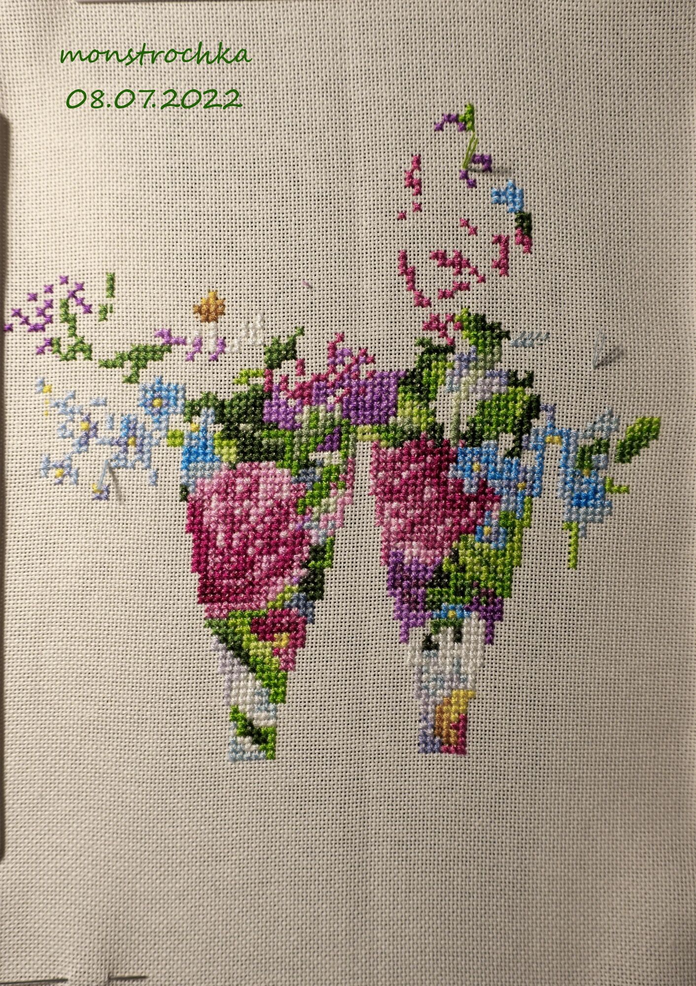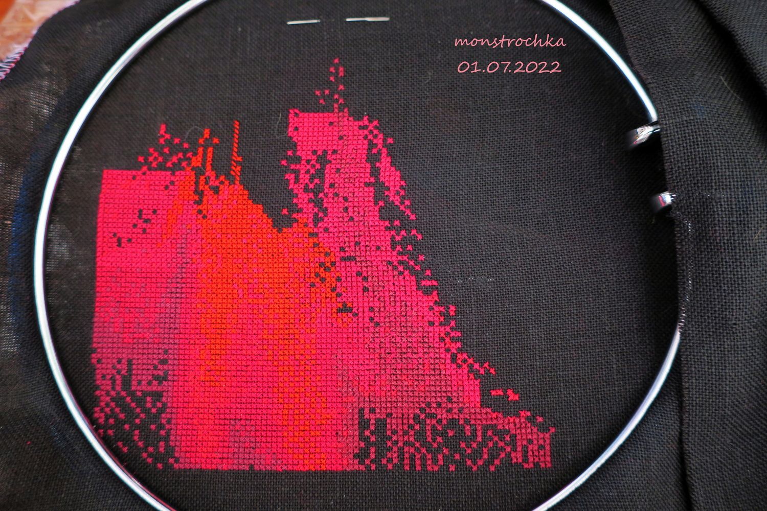 2 июля 2022 *из прохладной пещеры высовывается шшупальце и вяло машет в сторону заглянувших зрителей* Приветствую, драгоценные, простите, что с вами я не вся, но организм не выдерживает местных июньских +30 последние две недели и не готов высовываться целиком, так что вещать и показывать буду из пещеры, уж не обессудьте... Итак, сегодня отчет довольно насыщенный по всем параметрам, так что начнем) Вышивательное Размахнулась я в июне месяце. Всего поначинала, позаканчивала, попродолжала - никто не ушел обиженным))) 1. Осень от ЧМ - завершена было: процесс: Итог: Бисер, кстати, в наборе одного цвета, а разница оттенков создается за счет цвета нити ,которой он пришит) Прикольный эффект... В целом впечатления отличные, очень несложный процесс, в очередной раз осталась довольна разработкой этого производителя (не считая ужасающей меня схемы, но это я решила перенабором))) 2. Огонь и Лед от KastomKraft - начат/продолжен @Татуся, это тот самый перенос гайки, про который я спрашивала недавно. Перемести ее на меня с Тани, плиз С этим конем почти что целая история) Попробовать в работе данного производителя я хотела давно, но каких-то особо цепляющих сюжетов для себя не наблюдала (точнее наблюдала, но потратиться на них так и не сподобилась, не суть в общем)... Короче этого коня Таня @mamatata начала вышивать для себя, но, как я поняла, не смотря на то, что сюжет ей нравился, процесс особо не зашел (в отличии, понятное дело от результата). Звезды сошлись (поправь меня, Тань, если я ошибаюсь). Так что я вышиваю этого коня, с... да с начала практически с 5% (привет вам о, электронные схемы) в общем вот, с чего я начала работу и за 10 дней в июне это дело приумножила вдвое Очень несложно вышивается, несмотря на черную равномерку как основу, схема вполне простая. Единственная особенность, Таня крестики в отличную от меня сторону закрывает... но этот вопрос я быстро решила просто повернув вышивку (и схему) на 90 градусов... Короче теперь вот так вот... пусть мои крестики не так идеальны, как у будущей хозяйки этого товарища, зато каждый получит то, чего хочет. Я классный и интересный процесс, Таня - красивый (надеюсь) результат))) 3. Маяк Анива - продолжен было: стало: Перевалила за середину, шьется не быстро, но с удовольствием) 4. Новогодний сапог Дим - продолжен было: стало: Беру в руки нечасто, хотя он простой в общем то. Ну в охотку. Чередую с маяком время от времени) 3. Летучий мыш от МП - закончен. было: процесс: Итог: Шила метеором, больно уж хотелось с пластиком закончить наконец))) Заодно хищно смотрела на остатки пластиковой основы от Мыша, прикидывая, хватит ли мне их на новый проект... хватило Итак! 4. Цветочный воздушный шар по схеме Ксении Адоньевой - начат Чистая для меня авантюра. Ну то есть он мне страшно нравится, но все эти сшивания... стараюсь про них не думать лишний раз - там посмотрим Корзина вышилась на остатках пластика от Мыша, да) (еще не собирала). Сам шарик вчера начала... Основой взяла Линду27. Она молочная, буду смотреть по ситуации там есть небольшие незашиваемые участки, если будет сильно выбиваться - пройдусь по ним белым цветом в 1 нить. Вообще планирую вышить несколько шаров (как сувениры некоторым хорошим людям), так что возможно с каунтом и цветом основы еще поиграюсь. С вышивкой всё! Невышивательное! Лето оно такое лето, особенно, когда оно июнь в большую-часть-года-сером Питере))) Цвету