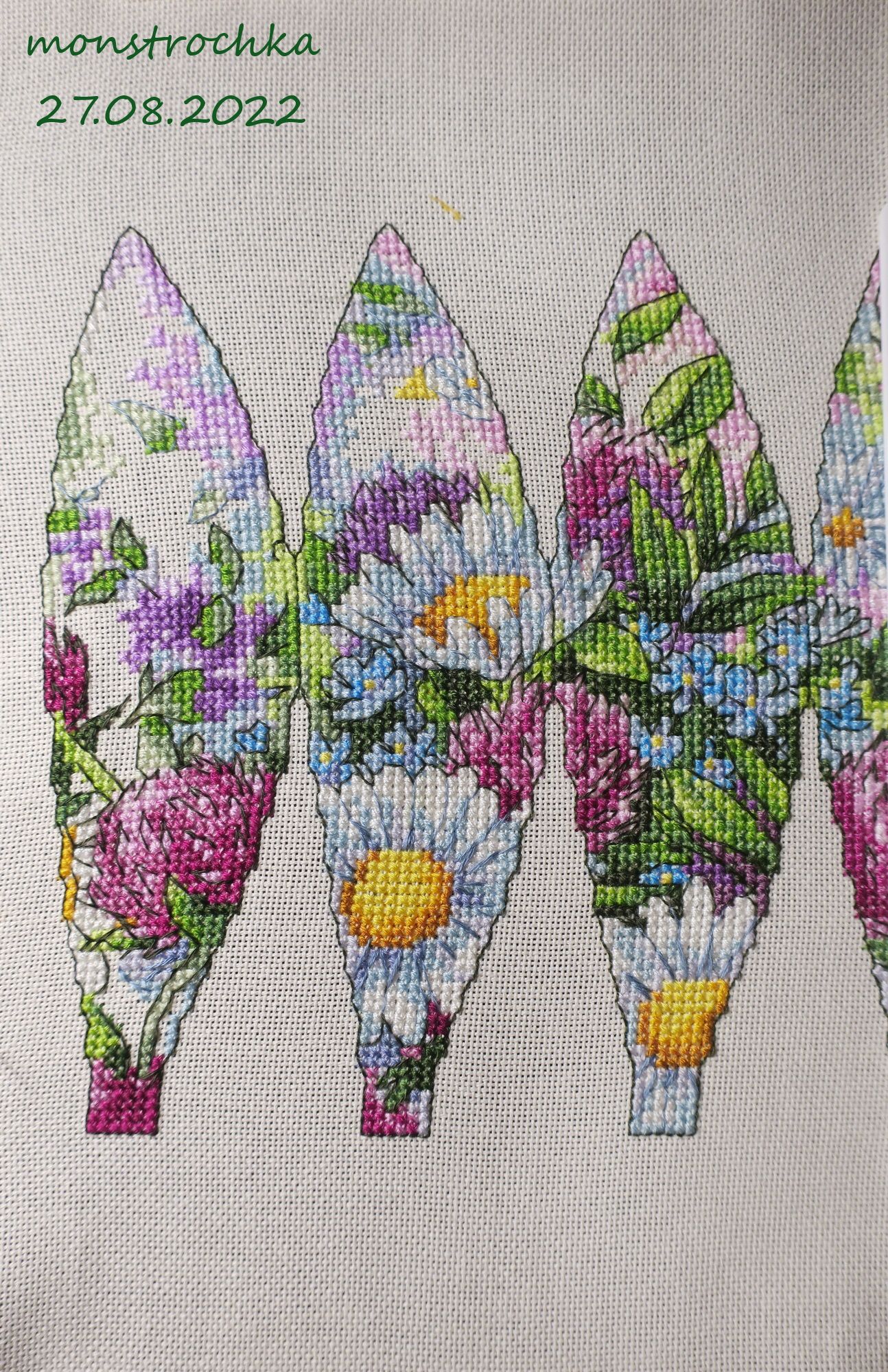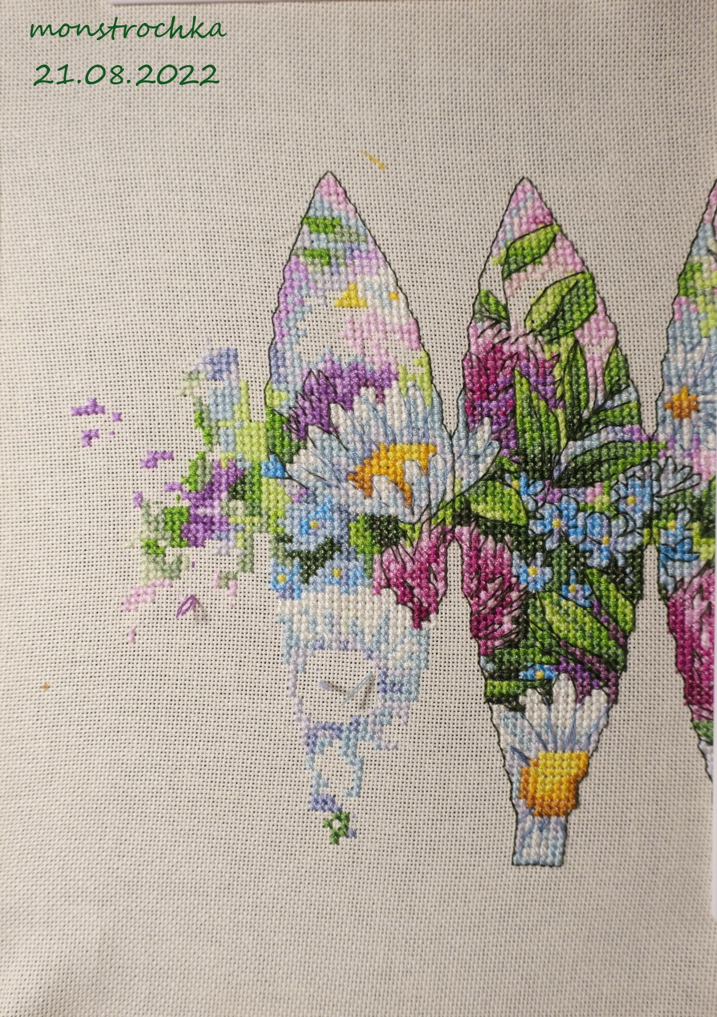 7 августа 2022 Aloha всем заглянувшим))) Было страшно лень, но я решила, что я как дисциплинированный (нет) и ответственный (ваще нет) монстр всё-таки должна-обязана взять себя в шшупальцы и показать-рассказать, чего мне удалось по прошедшему июлю увидеть да вышить... Так что кратко (кажется тоже нет ) я всякого натащу кучей сюда, а там посмотрим, что из этого вырисуется. В июле у меня были сплошные "продолжения"... Вышивательное 1. Конь-огонь от КК - продолжен было: стало: Очень неплохо движется, готов уже более чем на четверть, что для меня немного удивительно. Думала мне сплошь красным будет шить тяжко, но коняшка оказался на удивление приятным и комфортным процессом. Фото не очень хорошо, ибо на телефон (камера плохая в нем), а нести фотик я на работу категорически каждый раз забываю ... надо всё-таки себя взять в руки... 2. Маяк Анива Волковой - продолжен было: стало: Растет как на дрожжах (когда всё-таки берется в руки)... в целом, сейчас это основной процесс дома, хочу уже добить, там не так много осталось. Потрясающая разработка! Не скучно и вообще) 3. Цветочный шар Адоньевой - продолжен Хотя продолжен он не особо, так как я сильно увлеклась маяком , но что-то всё таки визуально прибавилось) было: стало: Кайфую... эта смена ярких летних цветов - сплошная цветотерапия! и сама схема идеально то, что я люблю, когда все цвета относительно небольшими группками расположены. Такое вышивать мне всегда интереснее всего) 4. Новогодний сапог от Дим - продолжен/закончен частично закончен в вышивательной части, осталось самое сложное и муторное... сшить ... жду вдохновения Татусик, гайку пока НЕ зеленим. Закроем ее готовым изделием уже) было: стало: готовая вышивка и немножко запчасти... заменила фр.узелки на елке на бисер, а бэк, который должен был обозначать "сияние" лампочек на елке и гирляндах на доме, на металлик и перламутровый крейник. Сразу стало куда как наряднее, а то совсем было буднично без блестяшек то! (на фото блестяшки традиционно уходят в несознанку и не особо отсвечивают, но они там есть и смотрятся прикольно). Фр.узелки, которые падающий снег, вышила в нужное количество нитей (4), но разное число оборотов вокруг иглы (рандомно 1 и 2 оборота). По схеме это не оговаривается, но мне нравится, что таким простым решением у меня получились почти настоящие разнокалиберные снежинки))) С вышивкой всё! Немножко моего июля гулятельного)... Наконец-то я не забыла фотик с собой в сторону Лахты... там вдоль трассы потрясающие поля всякого полевого цветущего разнотравья... И вообще буйство цветов) это вдоль заборчика за которым покоятся остатки Сугроба ) А это я набрела на совершенно какие то нереальные заросли мальвы на одной из клумб во дворах по пути! У меня ажно дыхание от красоты такой сперло! Еще ко мне в конце июля на пару недель приехала побыть моя выпускница-племянница (поступила на бюджет в Политех на наноэлектронику, пирожочек наш мозговитый , вот приезжала, чтобы оригиналы документов сдать)))). По такому поводу, выбрав кажется самый дождливый день в июле, мы поехали гулять в Павловск ... такскзать, повезла ребенка показывать как правильно квакать в нашем болоте... а то кажется у нее сложилось превратное впечатление о нашем климате в единственный приезд в августе 2020 Спасибо дождю, в субботу народу в парке Павловска было ровно никого, так что мы прекрасно побродили под зонтом по