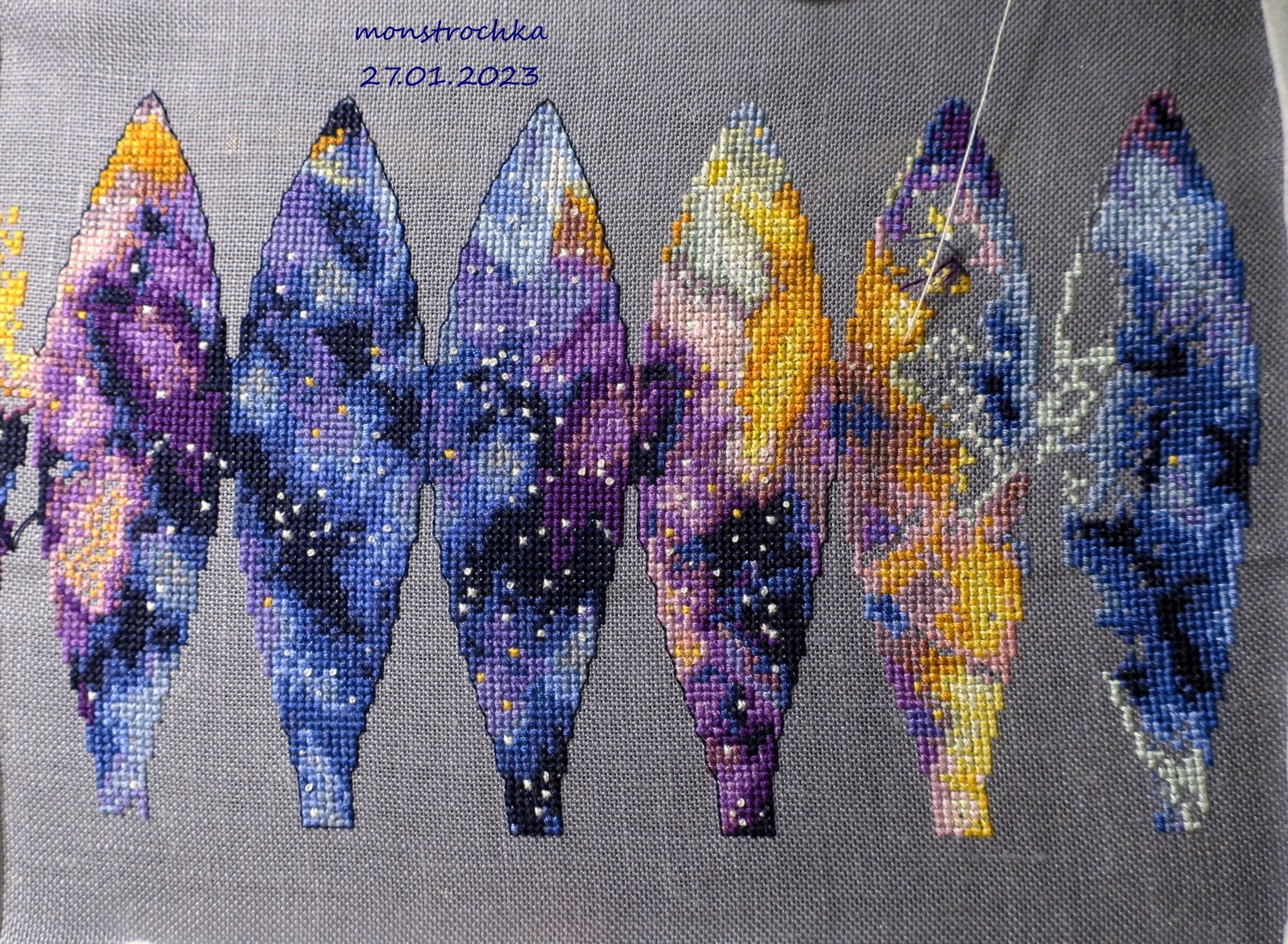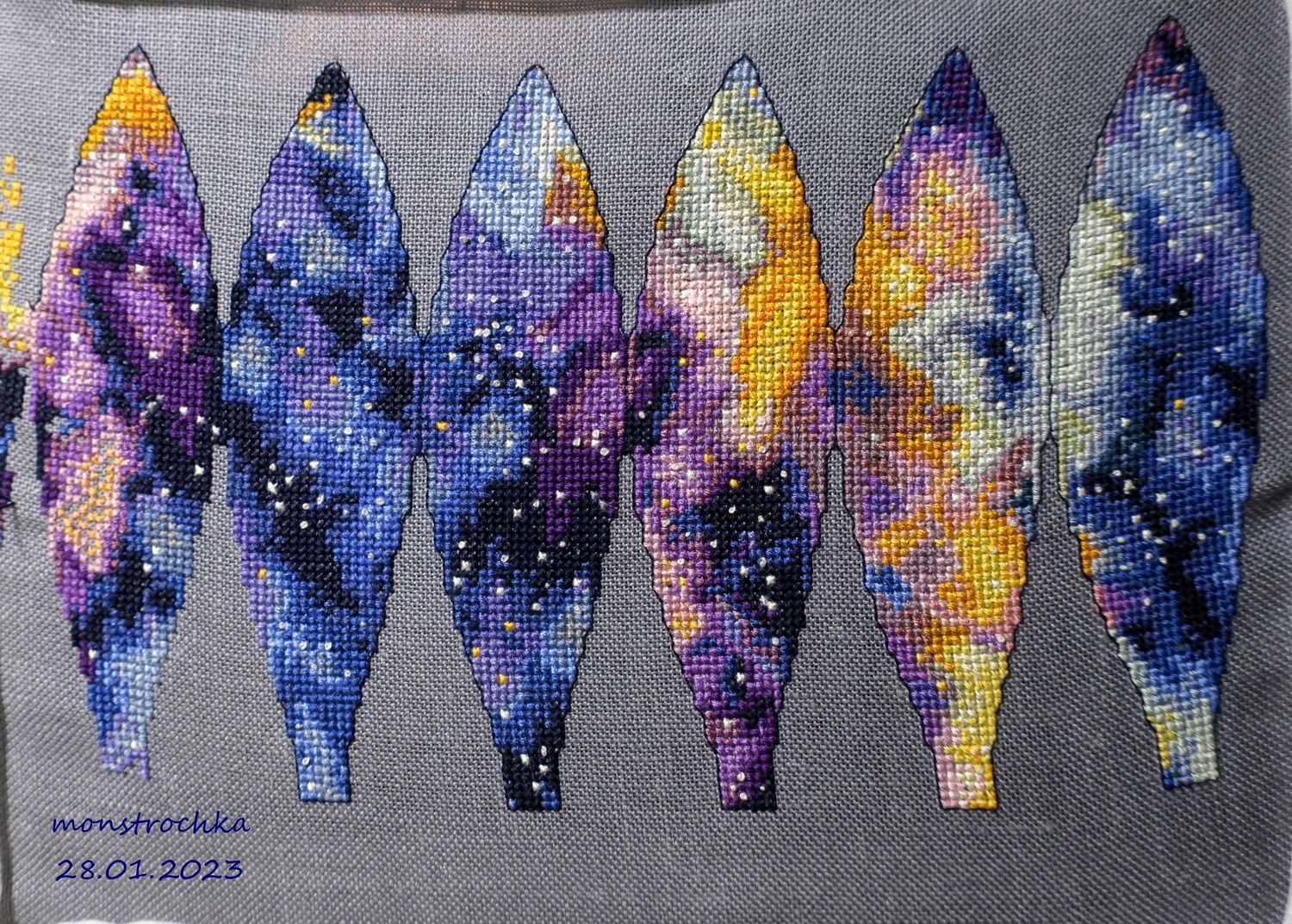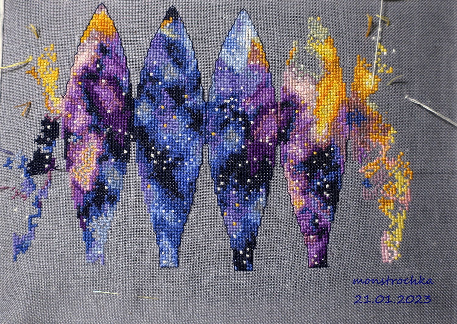 31 декабря 2022 Привет всем! Я как всегда, не нарушая уже трехлетней, по моему, традиции, пока большинство из нас готовится к встрече НГ, принесла отчет за декабрь под елку Декабрь выдался неплодотворный, ибо я 2 недели честно провалялась больная, из них ровно неделю с температурой, ни о какой вышивке речи естественно не шло, единственно, чего мне в эти две недели хотелось это закуклиться и не отсвечивать. Выполнила план с доблестью и 100% успехом, так что по продвижениям в вышивке вышло не так, как желалось) Тем не менее по итогу декабря мне есть, что показать вышивательного. 1. КосмоШар от Ксении Адоньевой - продолжен было: стало: Ну, хило, но в целом продвижение видимое... 2. Восток от Химеры - продолжен было: стало: Тут конечно немного получше продвижение, но тоже, могло быть и больше 3. Заколка "Розы и незабудки" от GoldenHands - начат и завершен Подарок от моей теплой компании дорогих сердцу людей, с которыми нас свел форум) Как можно видеть по датам на фото - процесс одного дня. Я бы даже сказала - половины дня. Вышито и собрано в день, когда подарили. Очень понравилось работать с кожей. Быстро и стильно по результату. Помучилась немного с пришивкой кружева, плотновато оно на мой вкус для такой небольшой вещицы, так что козлило на скривлениях формы, но и это преодолелось) 4. Конь от КК - завершен!!! Это был очень быстрый (как мне показалось) процесс (спасибо электронной схеме)... Теперь конь ждет решения свой хозяйки @mamatata, дабы отправиться на оформление) Ну и немного "беспроцессных" фигулинок))) На работе в обеды вышито в декабре еще три офигенских деревяшки от "У Аннушки" Так что моя армия "пикетчиков" на работе растет с угрожающей скоростью... то ли еще будет! Еще из невышивательного... я разжилась наконец то несколькими ветками хлопка, так что реализовала свое давнее желание о такой вот "икибане" на кухне) Ну а больше и всё, нечего особо. Погоды в Питере стоят гхм... негулятельные. Точнее погоды то может и ничего, но негулятельными улицу делают наши комунальщики... То есть ощущение, что ничего НЕ делают, в связи с чем по моему Питер то и дело попадает в новостные ленты во многих и многих регионах в сводке про то, как НЕ надо работать службам ЖКХ Но как бы то ни было, а жизнь продолжается, мы с опаской и оптимизмом (лично я) готовимся встретить Новый год))) Удачи нам всем на всех поприщах. Жизненных, творческих, личных и рабочих! Давайте будем счастливы? Ведь если человек действительно счастлив, это значит, что в его жизни всё-всё правильно. Не "хорошо", а именно "правильно", так как нужно и важно именно ему. Так что пусть всем нам будет ПРАВИЛЬНО в Новом году!!! Любушка1985, Surik, kreolka и 34 других сказали спасибо Поделиться сообщением Ссылка на сообщение