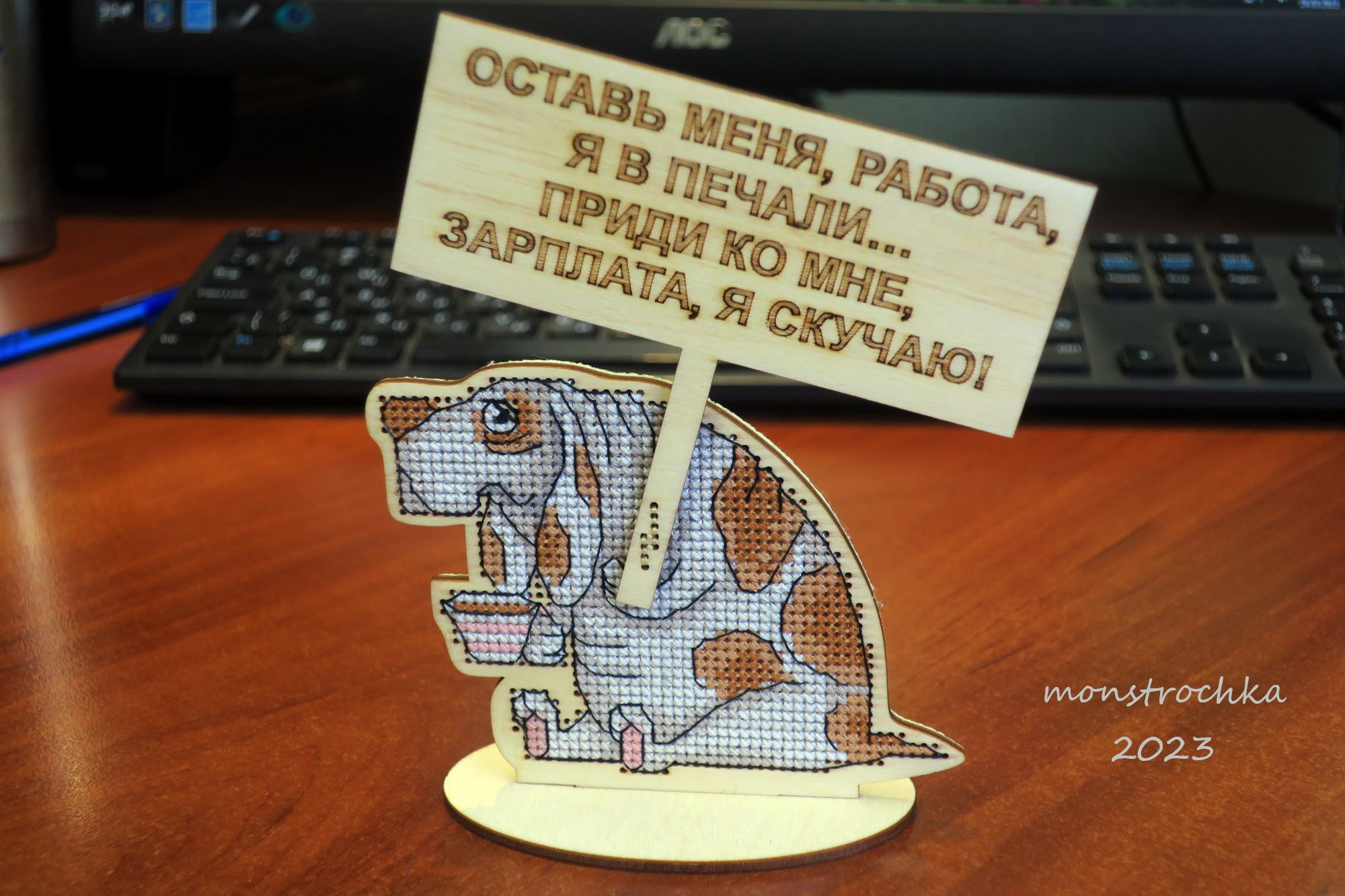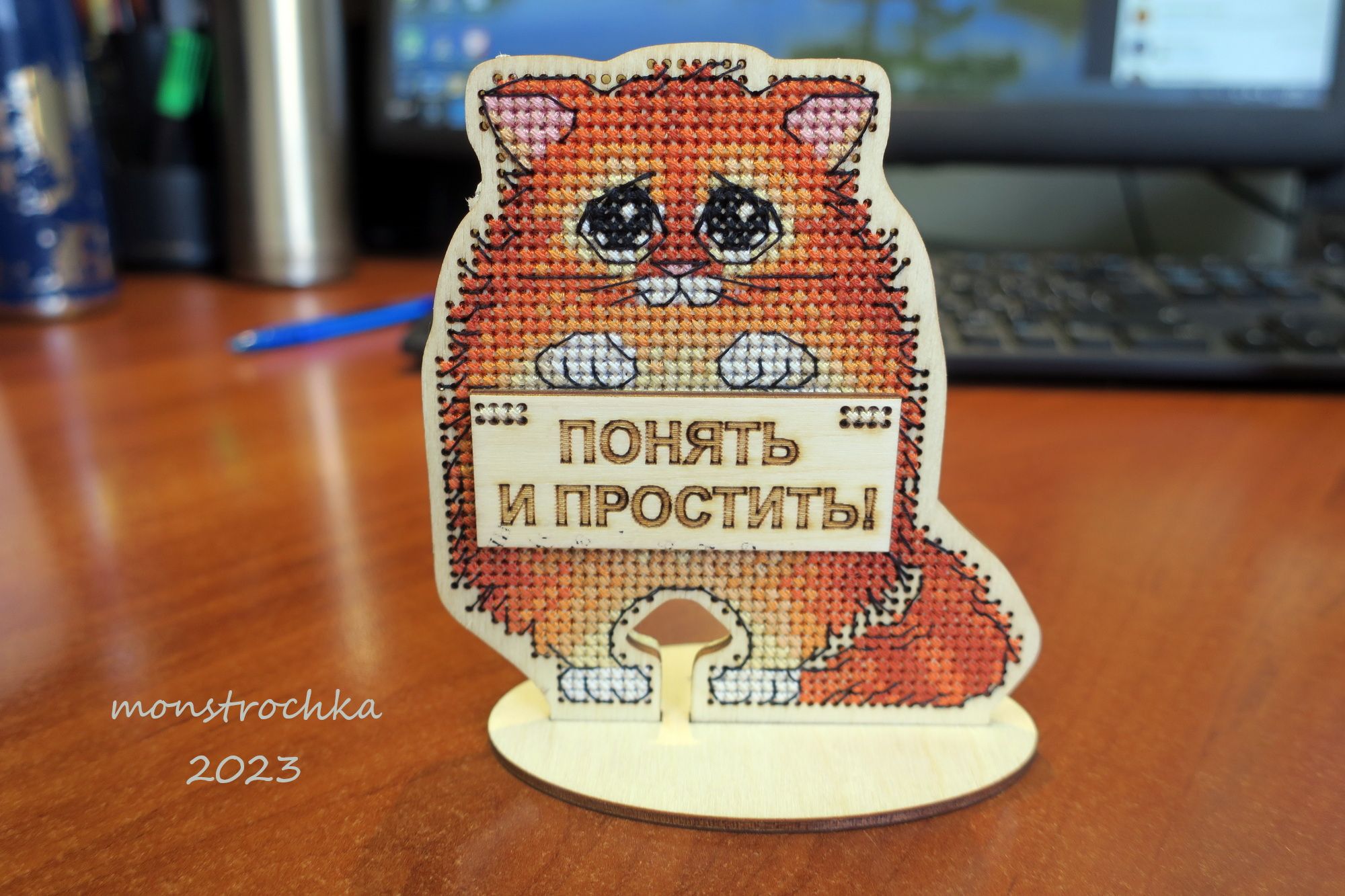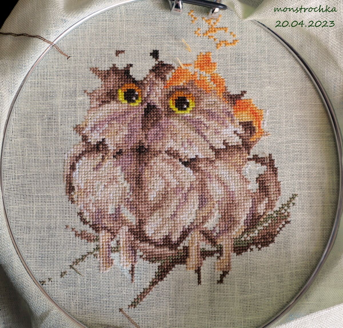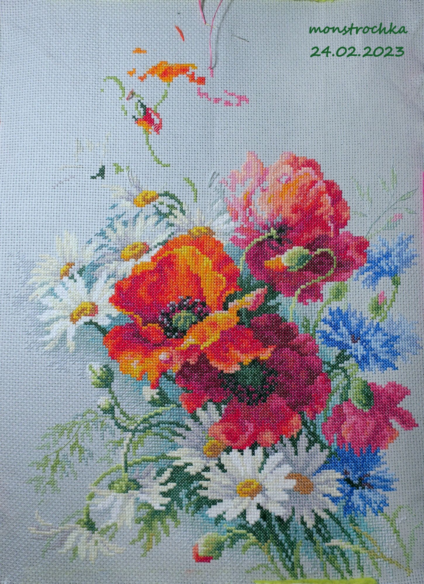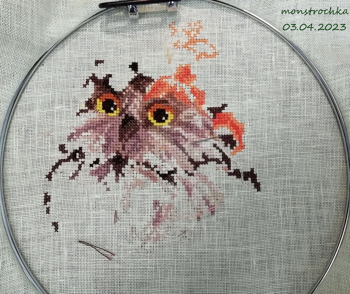 4 марта 2023 Привет, драгоценные! Ну что, проползли февраль? Я вот да ... именно, что проползла. Самый эмоционально поганый для меня месяц в году, по которому я обычно передвигаюсь, вцепляясь зубами в каждый день и протаскивая себя через него на силе воли, музыке, вышивке и (в этом году) еще и спорте . Ближе к марту правда начало темнеть позднее, светлеть пораньше и немножко добавили подзабытого за зиму солнца в атмосферу, так что я вроде приободрилась. Но как бы то ни было, вышивать на неделе (в связи спортом в основном) мне удавалось не так много, так что "что выросло, то выросло"... 1. КосмоШар Ксении Адоньевой - завершен В этот раз я даже сделала прям более менее правильные веревочные обвесы на шарик, мне очень нравится как оно вышло. Не идеально ровно, но всё равно симпатично. Шар поменьше первого цветочного, так как вышивался на 32 льне, против первого, который был на Линде 27. Благополучно передан новой хозяйке. 2. Маки от ЧИ - продолжены. было: стало: Ну тут без особых рывков, сами видите. Нравится дизайн бесконечно, активно думаю, кому бы его пристроить по окончании, чтобы не залеживался долго без оформления 3. Восток от Химеры - продолжен Иии... нет, снова не покажу. Сравнила фото последнего, чего я сюда приносила, и фото с последнего моего подхода к этому батальному полотну и решила, что оно по прежнему не интересно стороннему зрителю. Куча кляксочек по полотну, фи 4. Митинг "У Аннушки" (всё по прежнему не процессное) Февраль достаточно продуктивно обозначился тремя новыми лозунгами... На самом деле четырьмя, но четвертый (дубль рыжего кота с лозунгом "Работа, перейди на Федота") без фотографии был сразу в день окончания передан в руки подруге, переходящей на новую работу Не белочка Зинаида, конечно, по степени позитивной офигенности, но тоже очень неплохо))) Итого, в закромах у меня осталось всего две заготовки и можно будет вручать коллекцию коллегам. Хотя, возможно дотяну до 1 апреля все таки . А, еще немного дополнила прошлый Цветочный шар, упаковав в корзинку букет из искуственных цветочков, что некоторое время назад вручила мне моя чудесная крестница. Мне кажется, что они очень удачно вписались) И всё, прикиньте... Прогулочного невышивательного и показать нечего своего... и даже КотоБатон Серого я в феврале не фотала (как я могла! ). Ладно, у меня есть другая довольная жизнью котоморда от старшего брата))) В общем на этой ноте, а также присланной всё тем же старшим братом из Калифорнии фото цветущей тюльпановой магнолии (хоть где-то тепло и вообще весна ) , я завершу свой отчет за февраль... Пока-пока! *с гиканьем умчалась в март* Alina1989, lamina-65, Миссис Мыштон и 44 других сказали спасибо Поделиться сообщением Ссылка на сообщение