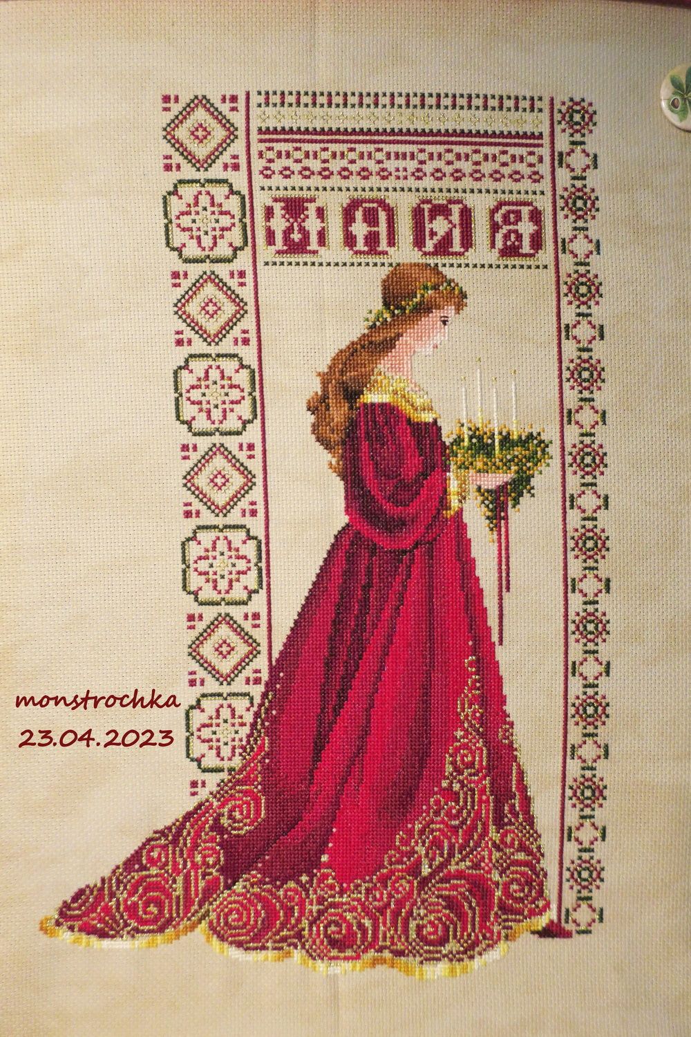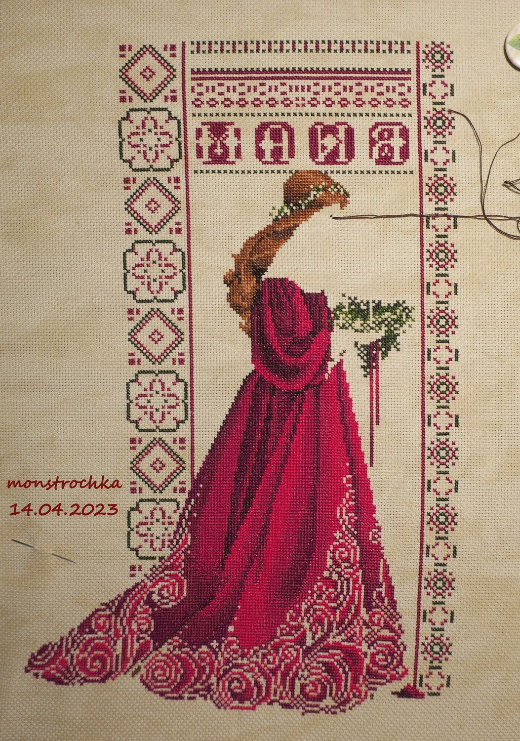 30 апреля 2023 Ну шта, драгоценные... *разминает шшупальцы, отвыкшие от написания долгих отчетов* Ща все будут страдать, ибо у меня за март-апрель накопилось очень многофото, многобукф и все их я сейчас на вас вывалю *злодейский смех* Итак, в марте, как возможно многие помнят, у меня отвалился от компа жесткий диск, так что пришлось его срочно менять, потому мартовский отчет у нас пролетел... Но случилось чудо! друг спас жизнь друга... все мартовские фоточки мне с диска спасти таки удалось, так что у нас сегодня двойная порция всего! Ну, поехали... *оспадя, ещеб упомнить, на чем я остановилась то*... Вышивательное! 1. Восток (Химера) - продолжен. Ну, то есть как "продолжен"... я за него, если честно в апреле не бралась вовсе (другими шалостями рукодельными занималась) и должна была показать его в марте... так что первый мартовский долг отдаю))) было: стало: 2. Маки (ЧИ) - закончены Эта разработка мне запала в душу с момента как я ее увидела. Тем не менее купить я ее сподобилась лишь несколько лет спустя. Вышивать взялась совершенно спонтанно, просто вот засунула руку в шкаф с наборами и что достала, то и взяла))) Великолепная разработка. Яркая, в целом несложная (хотя при наличии электронных схем понятие "сложности" схем в моем арсенале немного потерялось), очень красивая композиция. Только что немного крупновата (14 ct). Можно было поменять основу на 16, было бы не хуже, но мне было лень чего то искать, покупать. Так что просто достала, открыла, запялила и вперед). Теперь надо придумать кому подарить и станет совсем отлично))) Дальше пошли с начинаниями марта-апреля))) 3. Михайловский сад (Золотое Руно ГМ-020) - начат Расквитавшись с Маками и не имея дальнейших планов на жизнь (мне в пару к дзену обычно нужен какой нить не дзен процесс для полноты ощущений), я запустила руку в шкаф с наборами и достала оттуда Прекрасную мою Решетку Михайловского сада . Ну и тут же начала ее... Удобно, 10тыс крестиков черным цветом... нитки заправлены в иглы на органайзере и только бери одну за другой. Но счастье длилось недолго, ибо мне в голову стукнула Она... Мысль!!! (см. п.4 отчета ) 4. НГ сапожок (на основе схемы "Celtic Christmas" от L&L) - начат Мне стукнуло в голову, что у меня в семье же есть еще одно не осчастливленное мной дитя восьми лет, которому фея-крестная (то есть я) еще не задарила никакой из своих фирменных НГ сапожков))) Маме то ее перепал еще до ее рождения фетровый , а ребенок чет как то не у дел... Ну я взялась срочно это исправлять))) Исходник схемы: Моя переделка: Ну и процесс: Итог со всеми украшалками бисерными. @Татуся, дорогая, закрывать гайку будем, готовым изделием, когда я его сошью (как и с Димовским)... *в сторону* и когда я его только сошью то... Вышивалось не просто, а очень просто, схема элементарная. Бисер мной подбирался на глаз по тому, что предлагалось схемой, ибо натуральный или стоит каких то нереальных денег, или стоит нереальных денег Золотой сапожок бы вышел) Основа какая то винтажная 18 Аида цвета кофе с молоком, ну на фото вроде правильно цвет взялся. А вот металлик с бисером традиционно нифига не взялись, так что верьте мне нАслово, смотрится итоге офигенно круто!!! Всё сдержано благородно переливается и поблескивает 5. Солнечный рай (Абрис Арт АН-074) - начат начало Взяла вышивать на работу, в период, когда у меня закончились Зинаиды деревяшки от "У Аннушки" и я ждала следующую партию))) Поработа