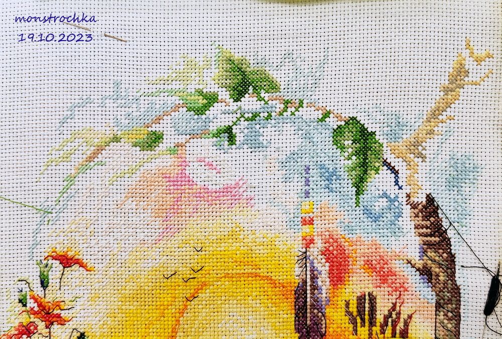 29 октября 2023 А вот и конец октября наступил и с вами как всегда ежемесячник "В гостях у монстрочки"))) Я сейчас как обычно наобещаю, что в этот раз я коротенько, а в итоге простыня, но мне всегда и правда кажется, что и показывать то нечего, а оно вононокак Ладно, раз уж собралась, поехали что ли?) Вышивательное 1. Решетка от ЗР - продолжена было: стало: Летит, буквально летит без приукрашивания. Офигенный процесс, затягивает с головой и не дает вырваться, затянув. Дайте два, епт! 2. Закат от Абрис Арт - закончен было: процесс: Итог: Ну, тут что скажешь. Вышит легко и непринужденно, люблю перенаборы ever! Яркий, позитивный, красивый. Кому и куда его теперь я без понятия, я хотела его вышить, я его вышила, глядишь лет через -дцать и найдется хозяин. Или нет 3. "Свет на воде" (Овен 1430) - начат Ну и начало процесса: За счет обилия полукреста процесс прет как локомотив в счастливое будущее. Да и вообще крайне логичная схема, ну и небольшая, что вносит свою долю в скорость. То, что схема еще и электронная вообще процесс делает сказочно быстрым и удобным). Ассоциируется этот пейзаж у меня с моей поездкой этого года в Сочи в апреле, так что шью с весьма приятными мыслями). Также оформлены у Айвара Пожарского две работы, вышитые в 2021 и 2022 годах. Осень от ЧМ и один из 12 мостиков РТО. Их себе попросила уходящая от нас с работы коллега (я ей ранее когда то дарила Элексир весны от Золотых ручек). Осень чистая классика, мостик без стекла, просто типа открыточки на мольберте). Хотели совсем без рамы, чисто натяжку сделать, но там или некрасивый горб из завернутой канвы получался на заднике, или канву надо было резать очень сильно, мы решили не рисковать. За мостик решила не цепляться, поскольку уже поняла, что вряд ли дозрею до полного оформления всей серии, как когда то думала, просто некуда их вешать, а так глядишь и разойдутся по добрым рукам). Ну, в общем то как всегда с вышивкой всё, пошли гулять в осень?! Я всё-таки выхватила себе краткосрочный миг золотой осени этого года... Признаться с нынешними погодными реалиями, я искренне думала, что золотая осень нам кукиш скрутит в этом году, но нет, дней пять таки продержалась и даже немного попозировала на камеру и возле дома, И на Елагином острове А дома продолжается лето и даже немного тропики) На горизонтальных поверхностях у подруги продолжается батон серого) В магазинах то и дело появляются вот такие смешные наборы разнокалиберных тыковок А в целом продолжается жизнь и немножко осень, переходящая в зиму (последние две я бы прикрутила на весну досрочно, но кто ж меня спрашивает? ). Так что надо идти переживать ноябрь, а дальше уже должно быть чуть проще, потому что зима новый год, а там и снова весна)) lamina-65, pellbell, Миссис Мыштон и 36 других сказали спасибо Поделиться сообщением Ссылка на сообщение
