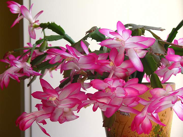 15 ноября 2012 Наташ, дык надо понять, что енто? декабрист или таки зигокактус. Как уже писала выше, декабристов цветущих я видела живьем ооочень мало, в чем секрет, понятия не имею, а вот зигокактусы при довольно умеренном поливе достаточно поставить недели на 2-3 в прохладное место (15-17 градусов) и набирает цвет как миленький. Мой сейчас просто развернут цветущей стороной в комнату. Так как в квартире после включения отопления до неприличия тепло, набирал он цвет в той части, которая была прислонена к холодному оконному стеклу, рядом с форточкой открытой на "зимнее проветривание" сутками. На той половине цветка, которая стояла обращенной в комнату ни одного бутона не завязалось. Ну, по твоей классификации он как раз зигокактус, стоит под форточкой, и вообще там окно не заделано, дует. В кухне жарко, да, но на подоконнике зимой вполне холодно - один цветочек максимум бывает. Поделиться сообщением Ссылка на сообщение