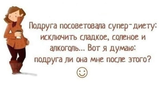 31 марта 2014 я завязала с таким разговорами/убеждениями когда поняла что люди чаще всего: а) любят разговаривать о проблеме,обсуждать диеты и виды спорта и пр. но никогда дальше этого не идут. как будто разговоры их вес снижают. б) не любят чувствовать себя проигравшими дураками. и поэтому начинают доказывать, что "все делаешь не так. спорт - это вредно, шоколад и сало полезно" и пр. а если одна "похудевшая" попадает в компанию толстушек..туши свет, сливай воду, заводи танки. Тошно ведь когда рядом кто-то правильный. Девочки, дорогие! Никого не слушайте, "доброжелателей" вокруг море и часто это даже близкие люди. У меня часто такими диверсиями промышляет мама и бабушка)). Отношусь философски, благо живем все отдельно. Слушайте только свой организм, себя и будьте благоразумны. Ведь красота неотделима от здоровья. Rina и Yulia_YUKKA сказали спасибо Поделиться сообщением Ссылка на сообщение
