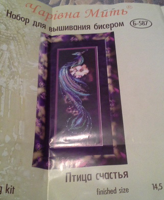 30 сентября 2013 tatusja (Татьяна), Каори (Ася), Nat717 (Наташа), Pugovka (Татьяна), спасибо большое! А сегодня я на работу притащила бисерную работу) Ставлю эксперимент, что у меня из этого получится. Итак, по порядку) Фотки опять планшетные, аккумуляторы заряжаются, позже нормальные фотографии будут) Наборчик Чаривна мить (Волшебное мгновение) Б-587Синяя птица, 14,5х43. Это такая пташка будет) А вот с другой стороны схема, номера цветов, описание как вышивать. Ну конечно же, я так вышивать не стала)) В наборе две иголочки, одна для бисера, другая для ниточек. Как только я захотела сфотографировать ткань с рисунком, пришла моя Алиска, и получилось вот такое половинчатое чудо: Ну когда все-таки она ушла, я постаралась сфоткать: Это общий план А это кусочек поближе Планшет не так передает цвета. Первые бисеринки пришиты Ну бисер немного косячный, где-то толще, где-то тоньше, по наблюдению за девчонками на работе, которые бисером вышивали, он весь такой кривоватый. Зеленый вообще должен быть блестящий, переливчатый такой, но там попадается такой, как будто все покрытие слезло... Ну посмотрю, что получится, думаю что этот эксперимент будет первым и последним Проблема с тем, что не могу сделать все ровно, напрягает. Tanya_RTK, ЛАДОМИРА, M@rgarita и 7 других сказали спасибо Поделиться сообщением Ссылка на сообщение