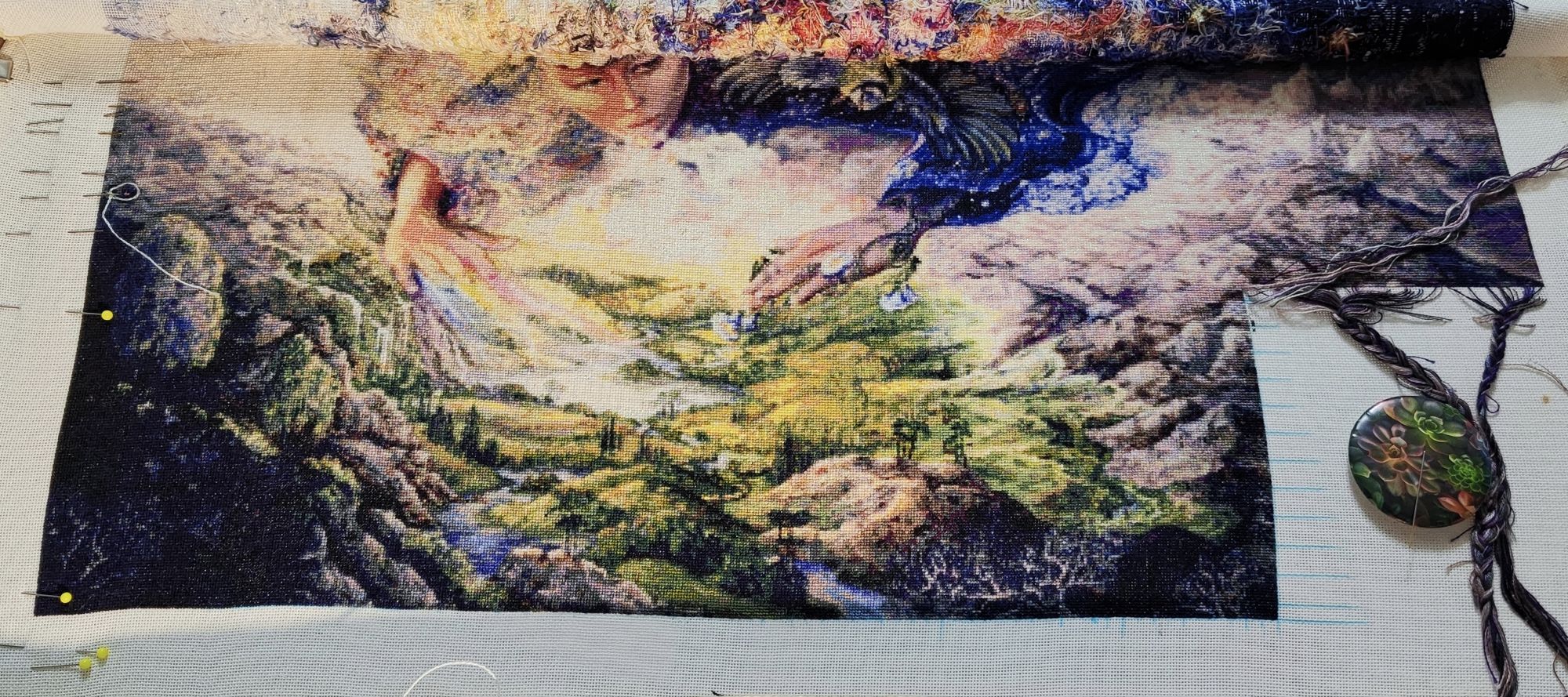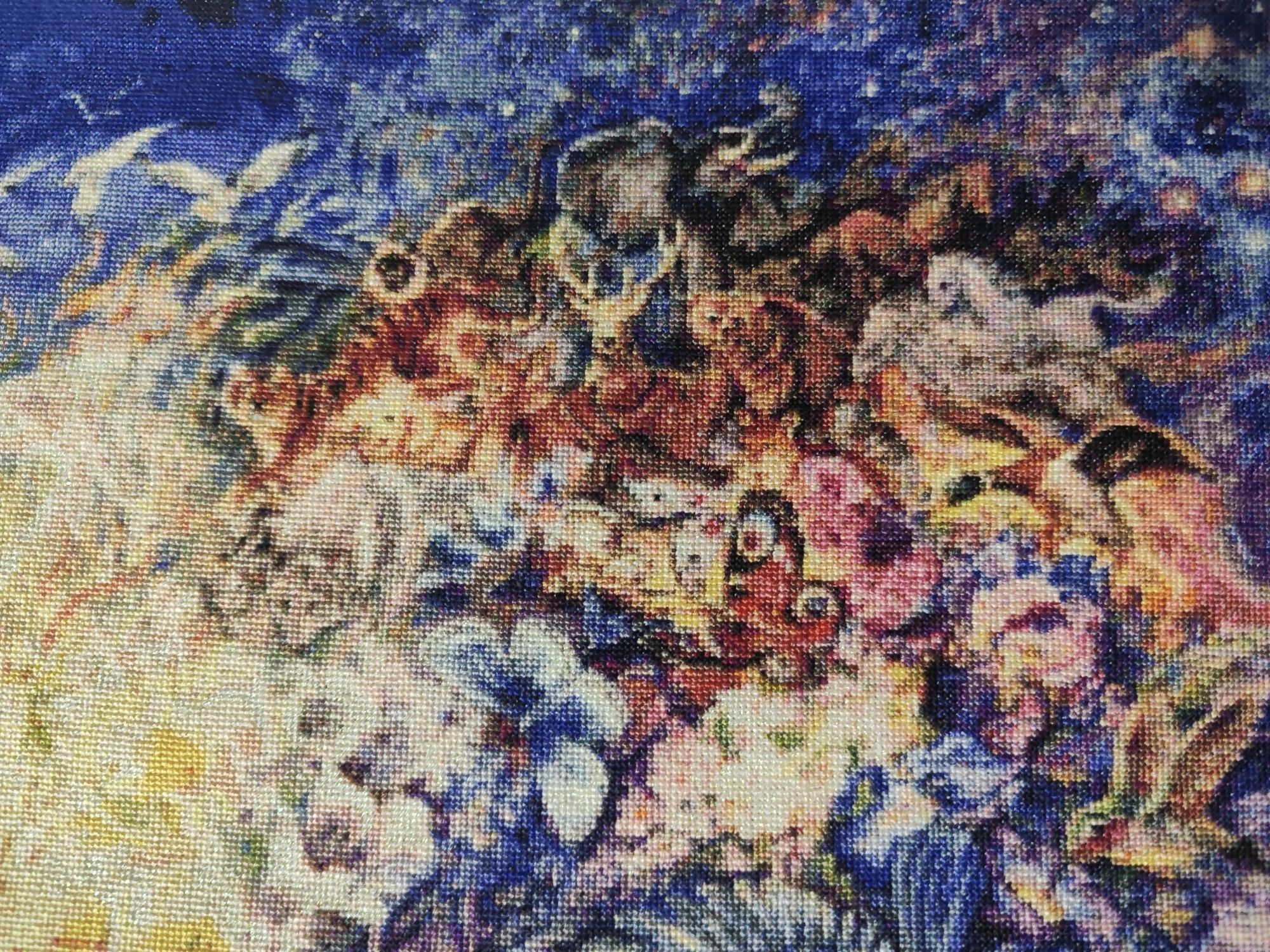 31 октября Все! Чумазая, только с рамы. Свет ужасный, цвета и краски съел. Ну ничего)) Это был очень долгий путь! Годами лежала без дела, то дочку родила, то проблемы с шеей, когда час вышивки превращался в недельную мигрень, потом работа. Эта вышивка уникальная) Первые отшитые листы ещё мама видела в 2012 году. В ней я топила боль, когда мамы внезапно не стало. Её вышивала беременная, пока живот позволял под раму залезть. Вышивала урывками в дневной сон дочки. Потом долгий перерыв в несколько лет из-за переезда (потерялись чемоданы с нитками) вот решилась наконец её закончить) а ещё в неё, как обереги, зашита шерсть двух котовмоего первого мальчика, ушедшего на радугу много лет назад. И моего "маленького" И очень шерстяного нынешнего хулигана)) Leutnant Ripley, Betta, Robinka и 4 других сказали спасибо Поделиться сообщением Ссылка на сообщение