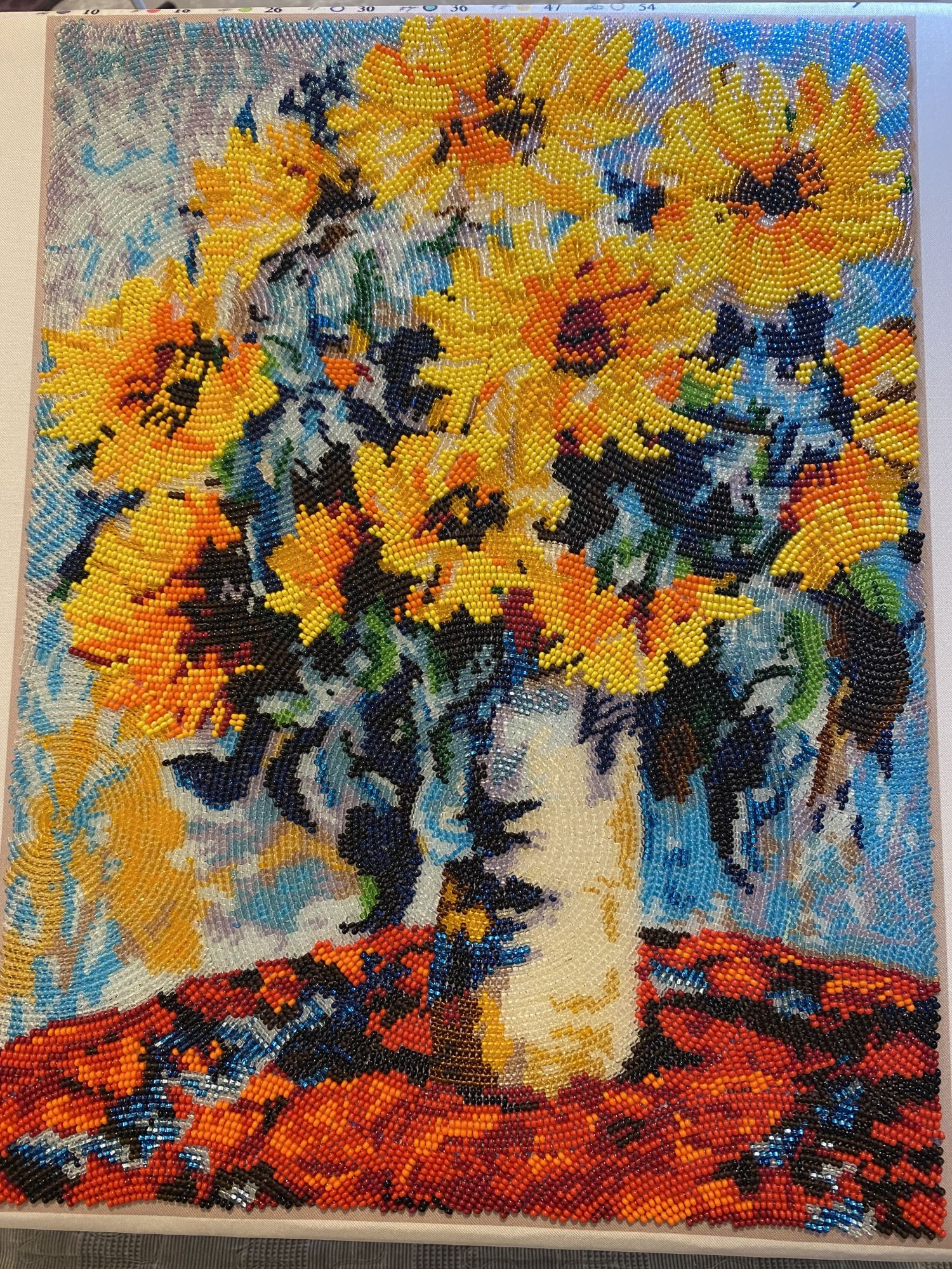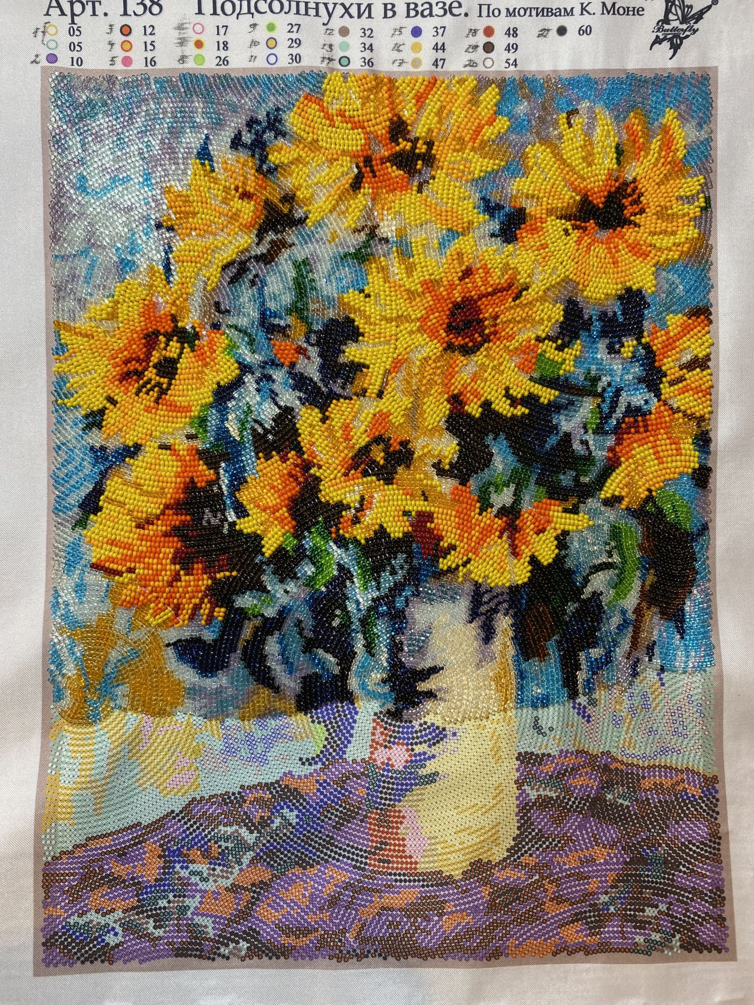 20 ноября 2025 Всем привет И новый проект в работе, девочки этот набор моя очень давняя мечта, которая осуществилась, я его купила и с огромным удовольствием приступила к отшиву. ТМ Butterfly, арт. 138, « Подсолнухи в вазе» по мотивам Клода Моне. 21 цвет бисера, размер работы 35 х27 см, ткань плотная, но не похожа на атлас, нет характерного блеска. Значки хорошо читаемые, бисер разнообразной структуры - начиная от прозрачного и заканчивая керамикой, очень красивый и калиброванный. letka, rramil, Fiona2025 и 13 других сказали спасибо Поделиться сообщением Ссылка на сообщение