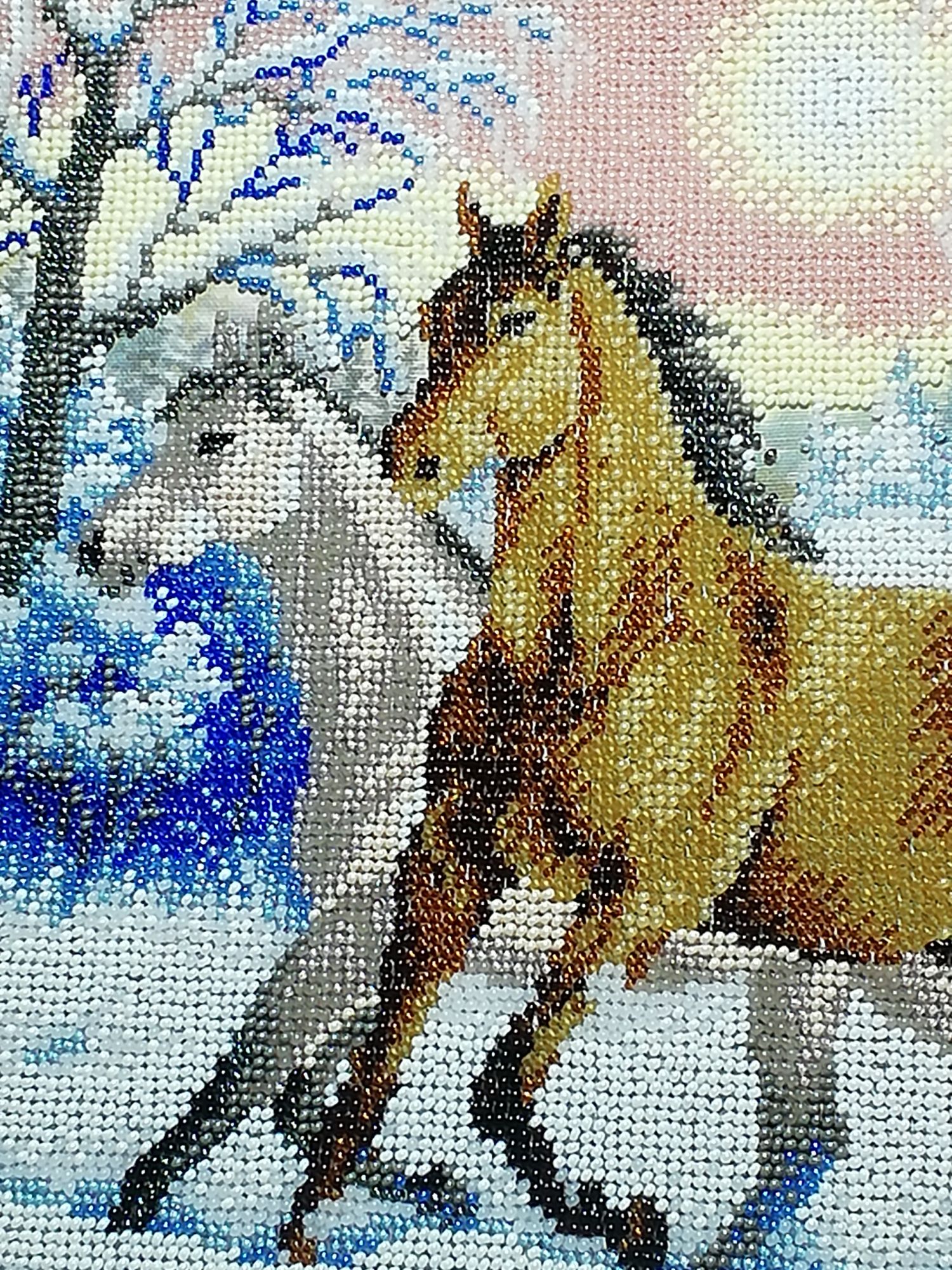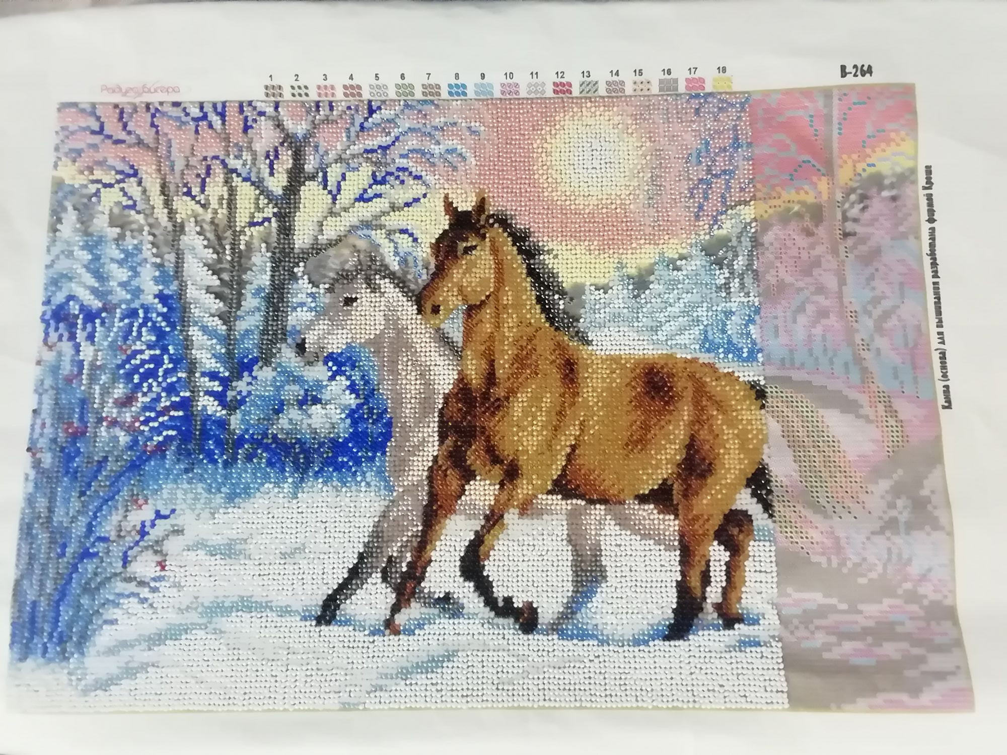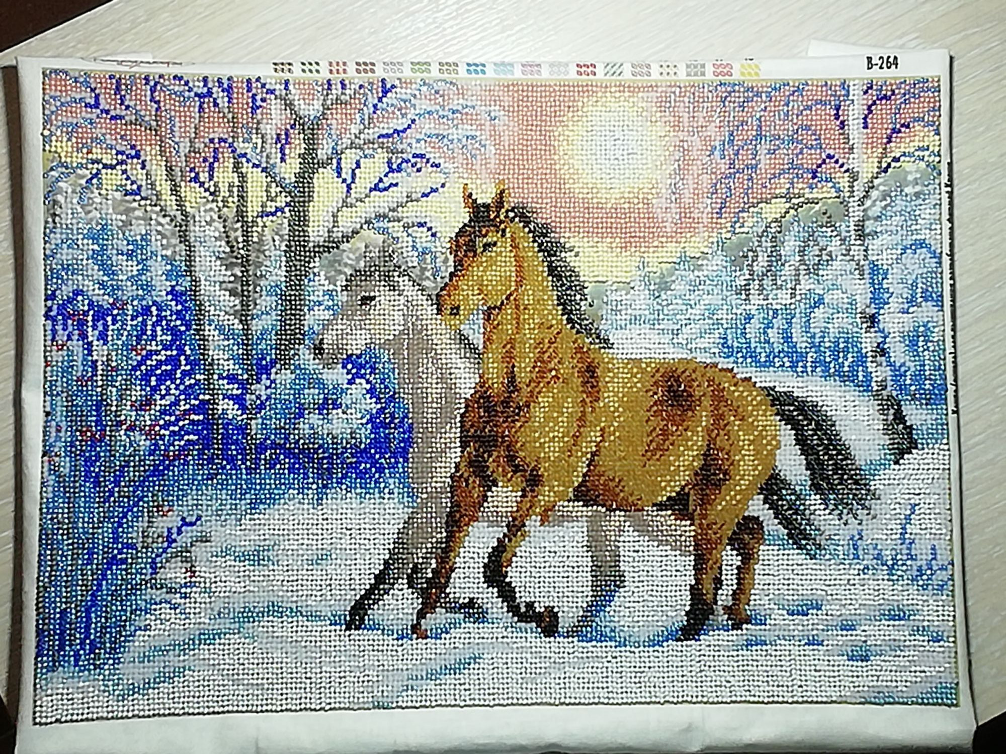 24 декабря 2025 Доброго времени суток, девочки. Я принесла финиш. Девять месяцев заняла у меня эта работа. Сначала я её долго собиралась купить. Дети подарили на 8 марта. Потом я её шила неспеша, растягивая удовольствие. А потом решила, что надо дошить до нового года и стала каждый день по 5 рядов делать. Канва плотная, хлопковая, бисер ровный, брака мало. Вышивка получилась тяжеленькая. Одного цвета бисера хватило тютелька в тютелька, понервничала,потому что это окрас тёмной лошадки был, т. е. непросто заменить на другой цвет. Когда поняла, что хватит, выдохнула. Фотографировала при свете лампы, солнца нет, на улице тускло. На самом деле цвета ярче. Светлана Юрьевна, lovingberry, sakineva и 7 других сказали спасибо Поделиться сообщением Ссылка на сообщение