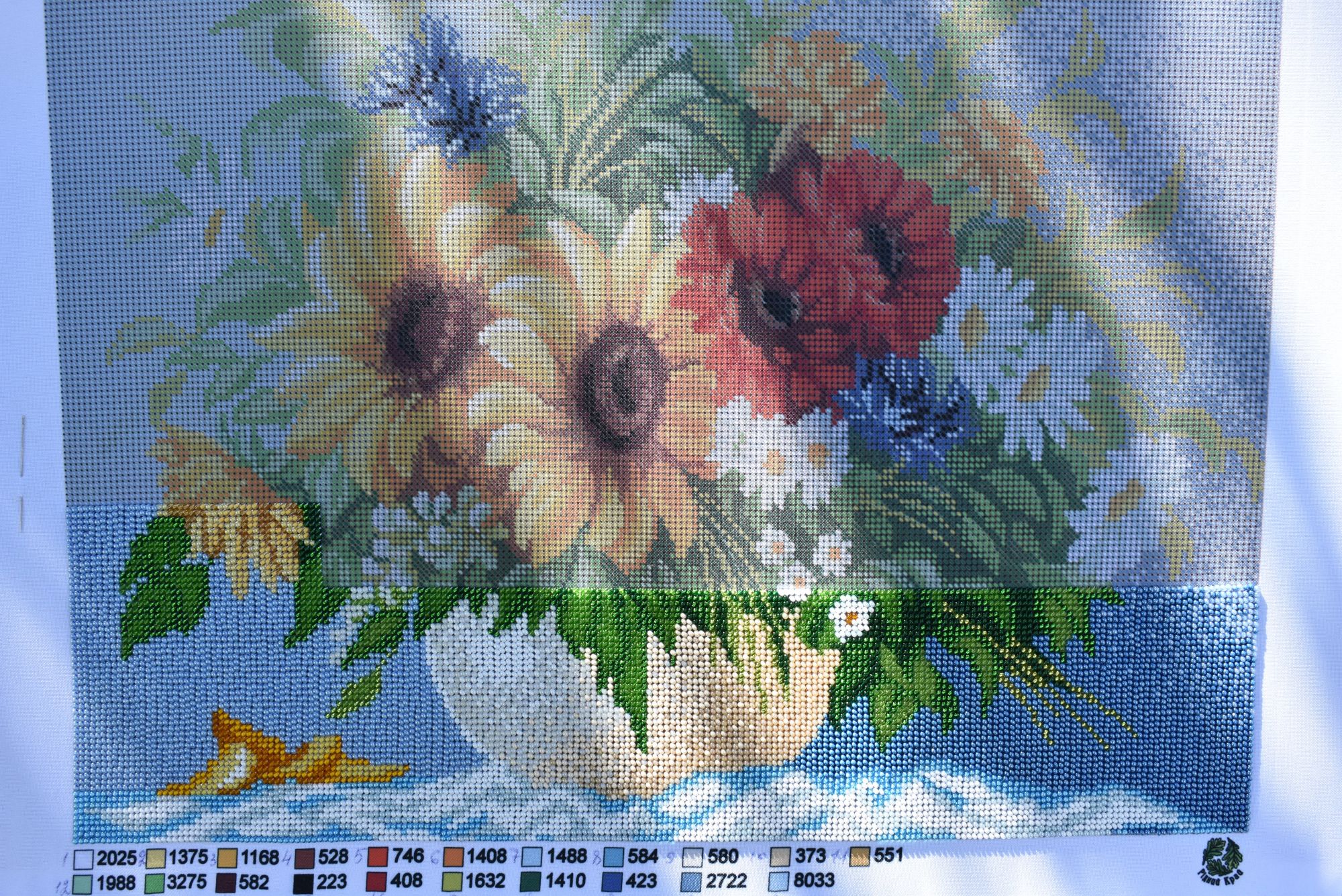 8 августа 2017 3 часа назад, Светлана Юрьевна сказал: все ли символьные значки хорошо различимы друг от друга или есть такие, которые сливаются по цвету и слишком похожи друг на друга? В основном все цвета хорошо различимы. Только при вышивке вазы пришлось поднапрячь зрение (оттенки близкие), ромашки слева и васильков вверху (там используется голубой цвет, который сливается с фоном, пришлось самой додумывать где какой цвет). Светлана Юрьевна и lovingberry сказали спасибо Поделиться сообщением Ссылка на сообщение