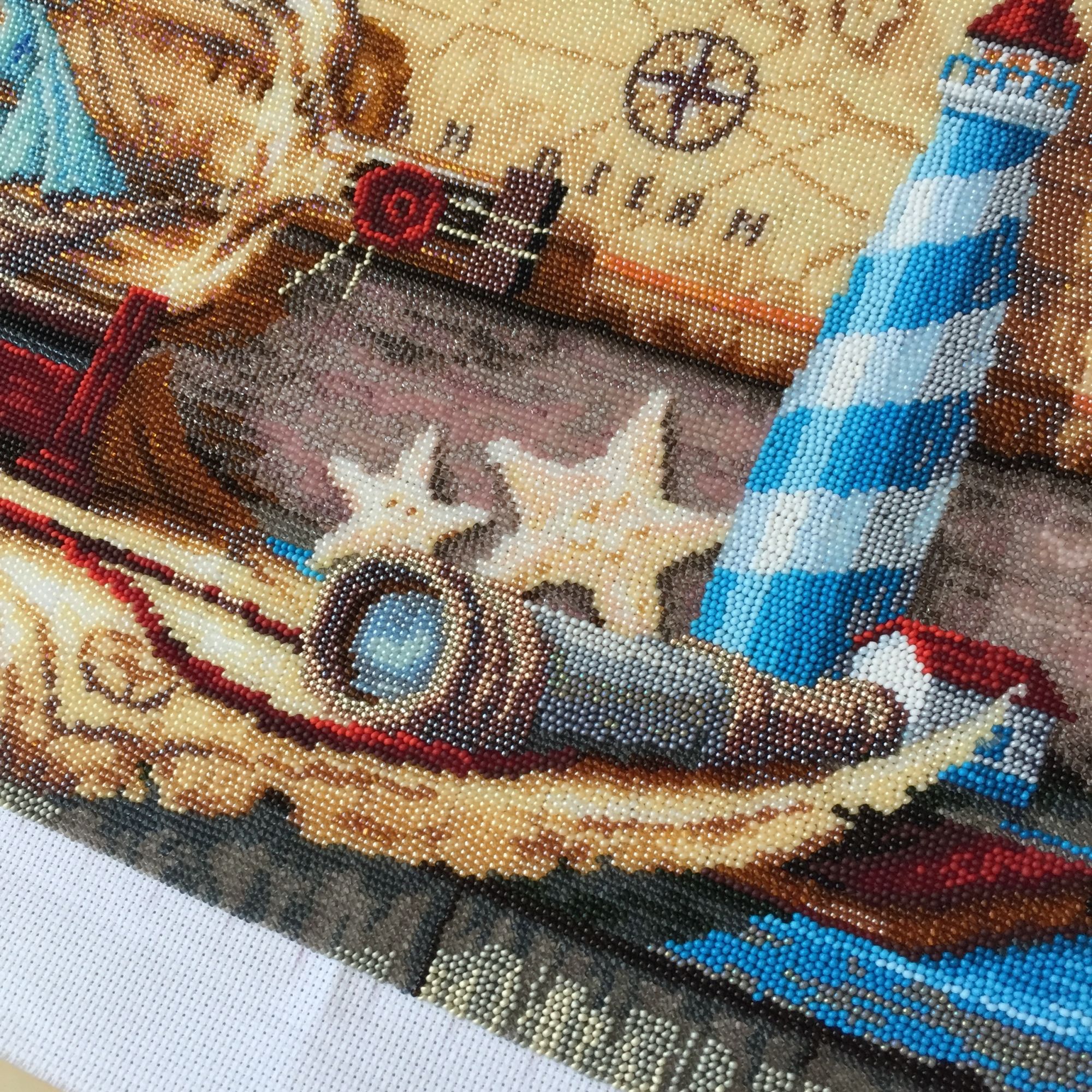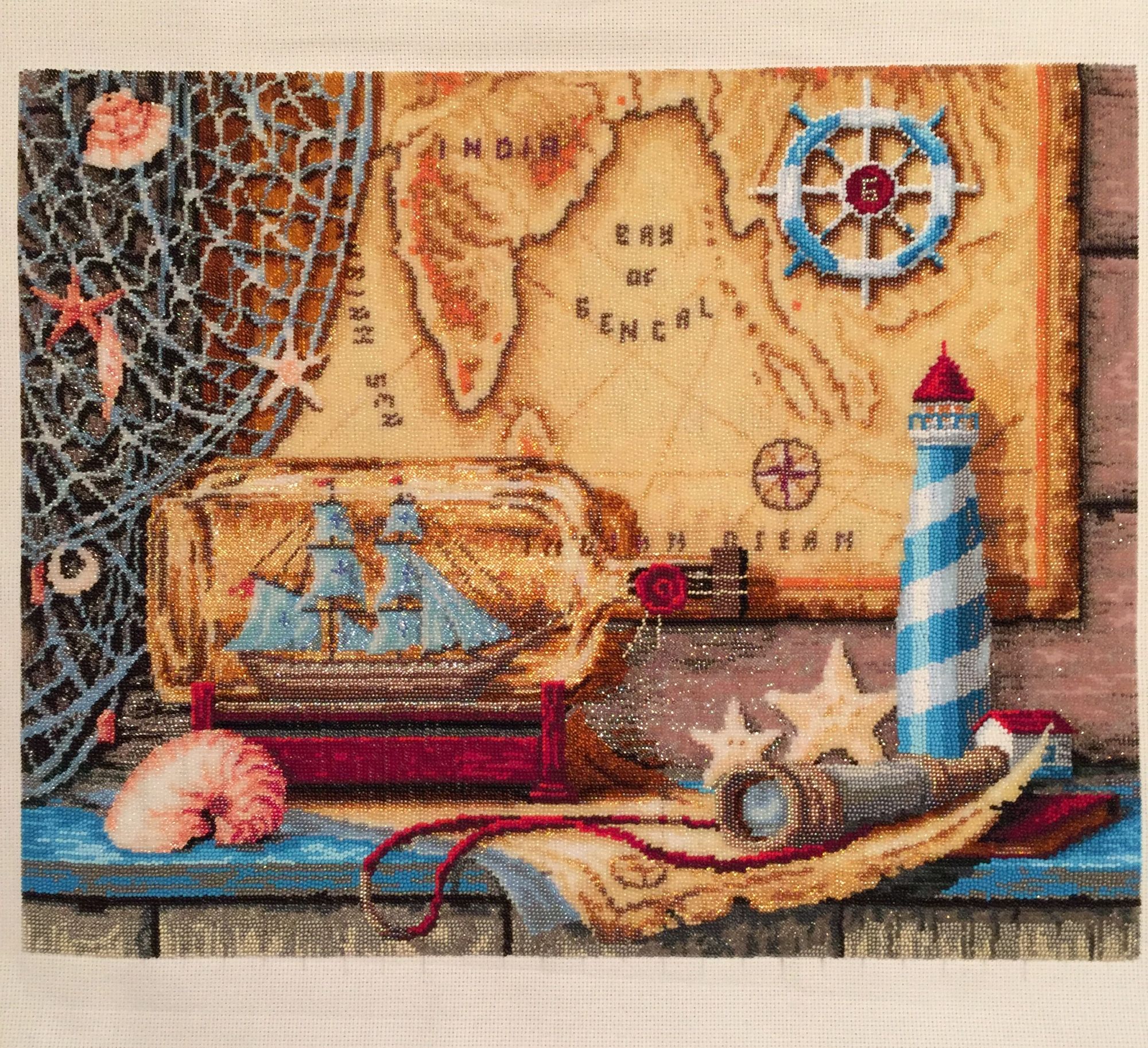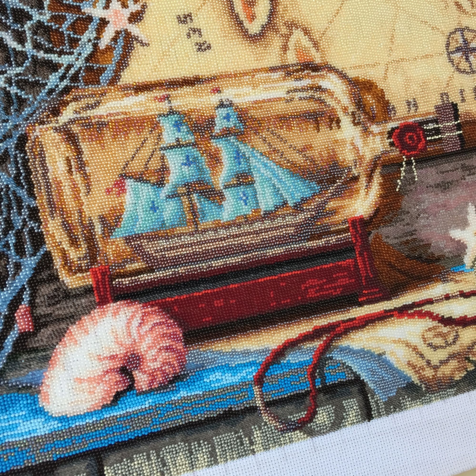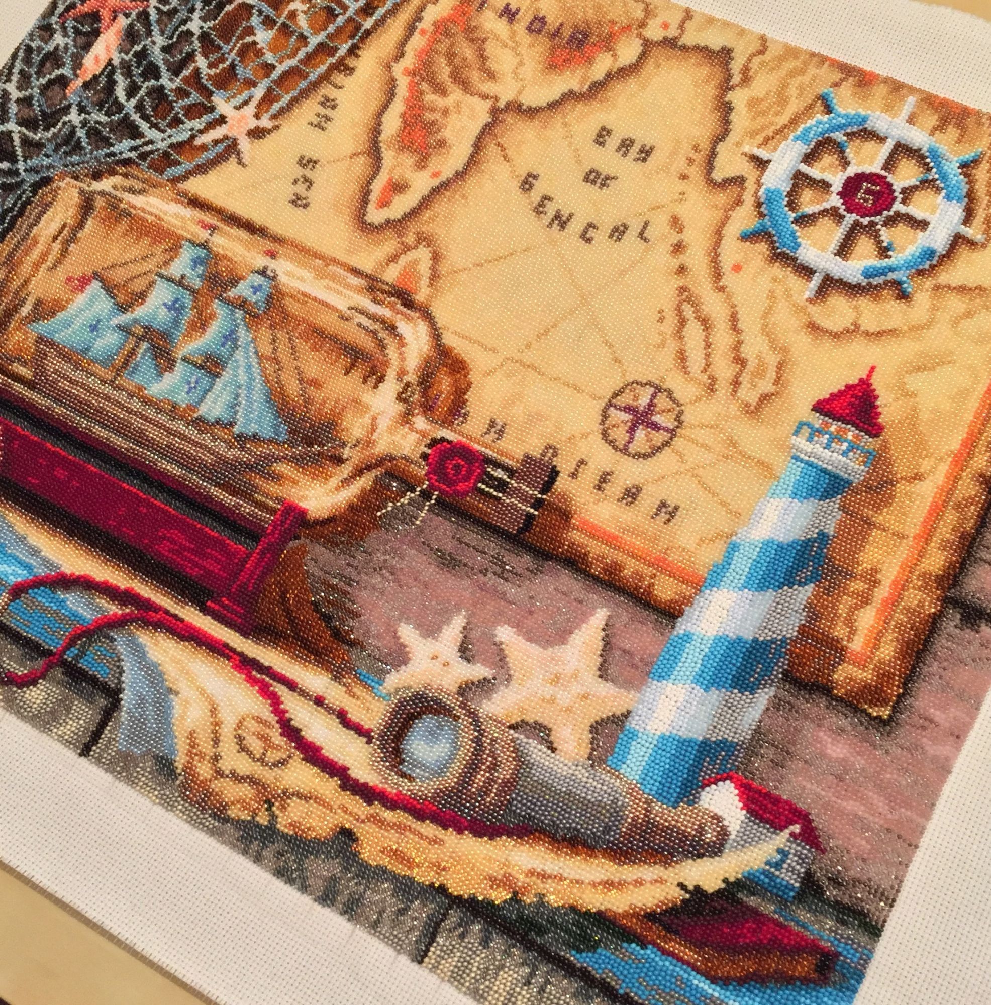 12 марта 2018 Девушки, какие же красивые работы-картины у Вас!!! В 04.03.2018 в 01:38, Совунья сказал: Девочки, здравствуйте! Наконец, спустя целых 61 494 бисеринки и 2,5 месяца работы закончила свои «Морские приключения». Смотрю и не верю, что сама смогла вышить такую красотищу Размер - 41*51 см, всех цветов бисера хватило, набор укомплектовали с хорошим запасом. Вся картина состоит из множества интересных деталей, на которые взгляд может сначала и не упасть - подзорная труба с необычайно красивыми переливами, книга с золотыми страницами, а кусок карты на столе, с неровными краями, тенями - совсем же как настоящий! Под кораблем должна была быть надпись «Gloria», но я ее делать не стала, не люблю надписи на вышивках (карта, само собой, не в счёт), а на штурвале букву «G» заменила на нашу русскую «Б» (первая буква в имени сына), подумала, что это будет символично, так как оформленную работу хочу повесить в его комнате, да и этот процесс - последний в декретном отпуске. Напоследок хочу сказать тем, у кого наборы от «Золотых Ручек» лежат и никак не дождутся своего часам, а также тем, кто пока только смотрит и никак не может решиться вышить их картины из-за размера, предстоящего объёма работы - вышивайте, вышивайте и ещё раз вышивайте! Результат превзойдёт все ваши ожидания! После таких работ, с полной зашивкой бисером, частичную воспринимаешь совсем иначе. «Золотые Ручки», однозначно, покорили мое сердце P.S. Фотографии сделаны при дневном и искусственном (последние две) освещении Снежана, какая дивная картина - литера "Б" меня покорила. Поздравляю с окончанием такой масштабной работы. В 11.03.2018 в 12:49, Солоха Дражайшая сказал: Ура-ура! Я закончила отшив набережной! Завтра в багетку. Очень довольна результатом. Маяк и зонтик смотрятся оптически-выпукло. Прямо жалко под стекло убирать. Татьяна, набережная чудо, с таким вечерне-туманным цветовым решением.. Поздравляю с удачным отшивом! Солоха Дражайшая и AngelN сказали спасибо Поделиться сообщением Ссылка на сообщение