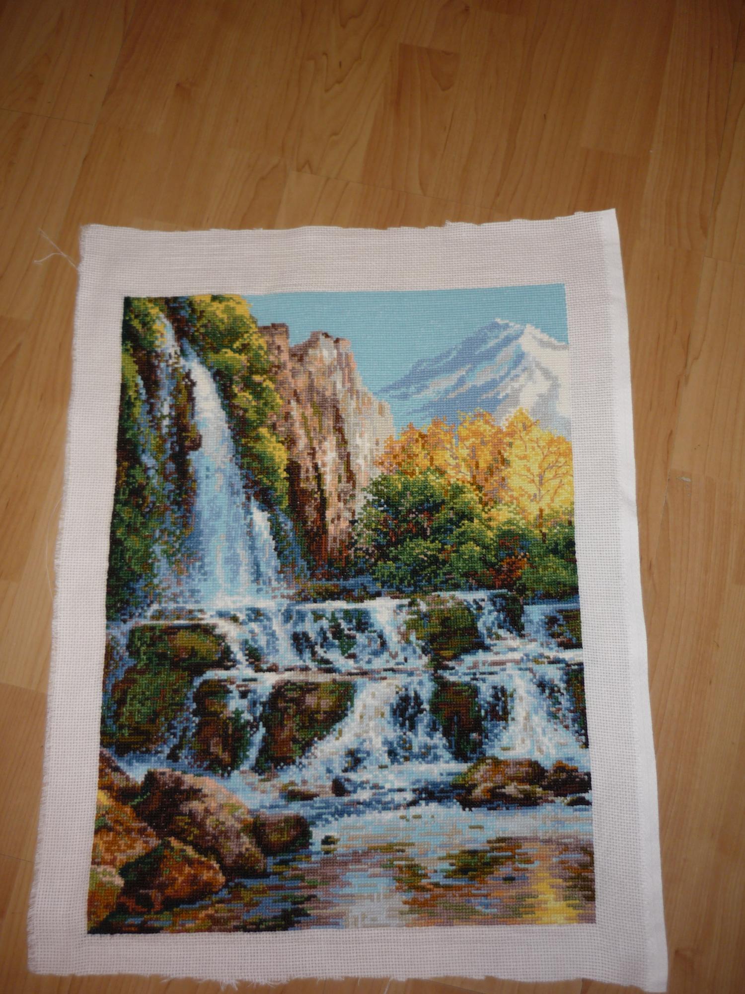 19 июля 2014 Ура!Закончила свой водопад! Очень рада, как-то он меня утомил, куча одиночек, большой размер... Дошивала его уже на морально-волевых качествах, а небо вообще вышила полукрестом в 4 нитки, нормально получилось, даже не перекосило. Конечно, оформленный водопадик очень даже ничего, такой внушительный... Багет деревянный, довольно широкий и плоский Стеклышко обычное, тоненькое. Потихоньку начала новый процессик, на днях выложу начало. ЛАДОМИРА, Nat717, zoarka и 4 других сказали спасибо Поделиться сообщением Ссылка на сообщение
