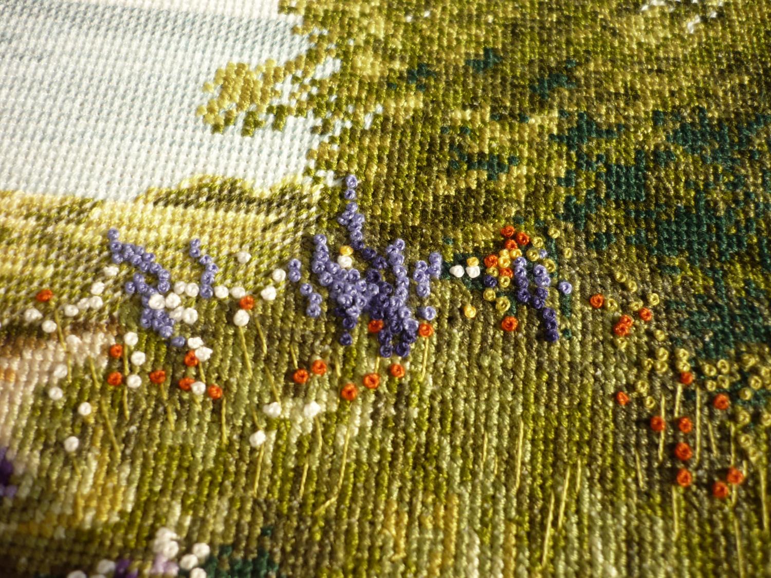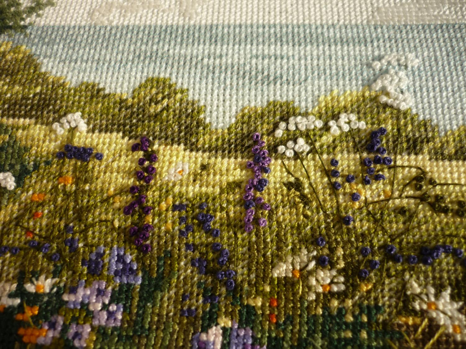 9 ноября 2014 Что-то давно не отчитывалась,исправляюсь... Вот, что навышивалось за это время Когда вышила нижнюю часть- само поле - испытала облегчение, так как, наверно, это самая трудоёмкая работа в этой вышивке, потом пошли кустики справа и слева - здесь просто каша из зеленых оттенков. А теперь самое легкое- полукрестик в одну и в две нитки - это немного поля, море вдали, небо... Поближе Бэк стараюсь делать сразу, иначе потом не пробраться сквозь зелень, а впереди ещё необъятное количество французских узелков... Каори, Pugovka, Irinaki и 7 других сказали спасибо Поделиться сообщением Ссылка на сообщение